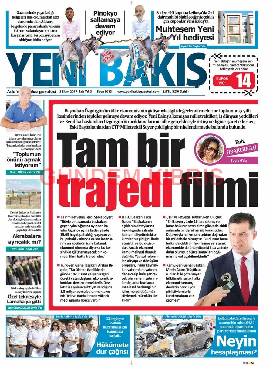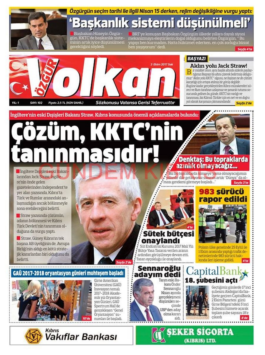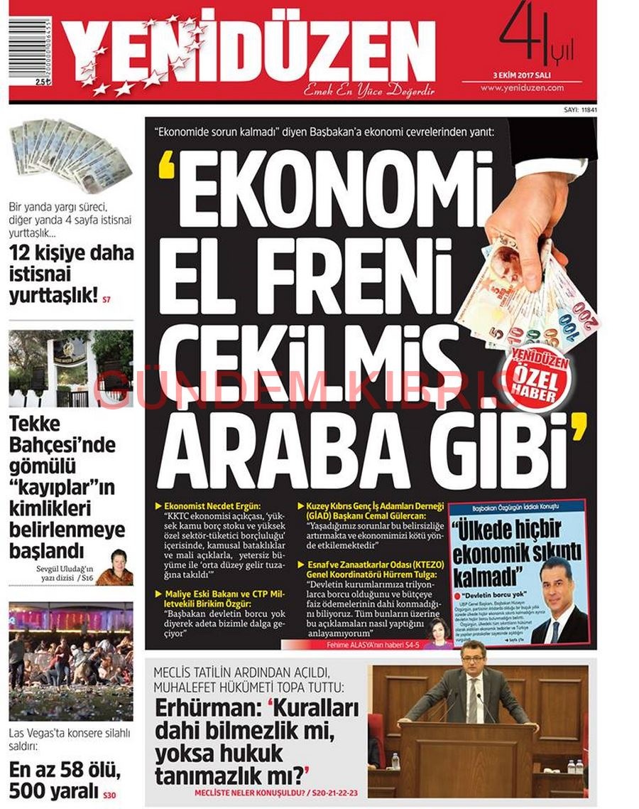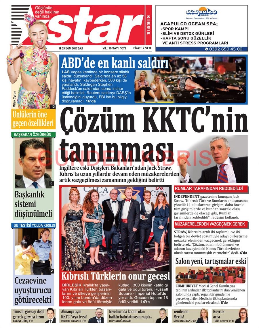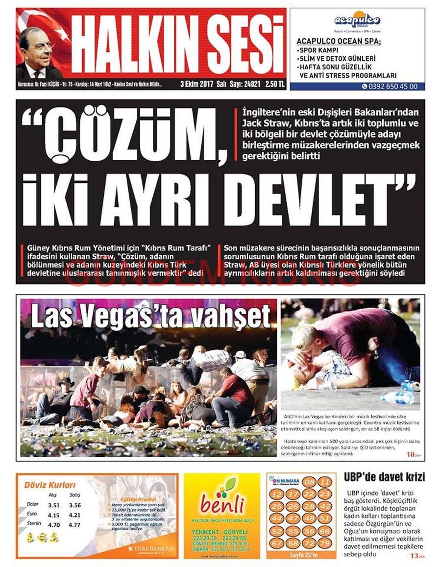 KKTC Gazete Manşetleri 3 Ekim 2017