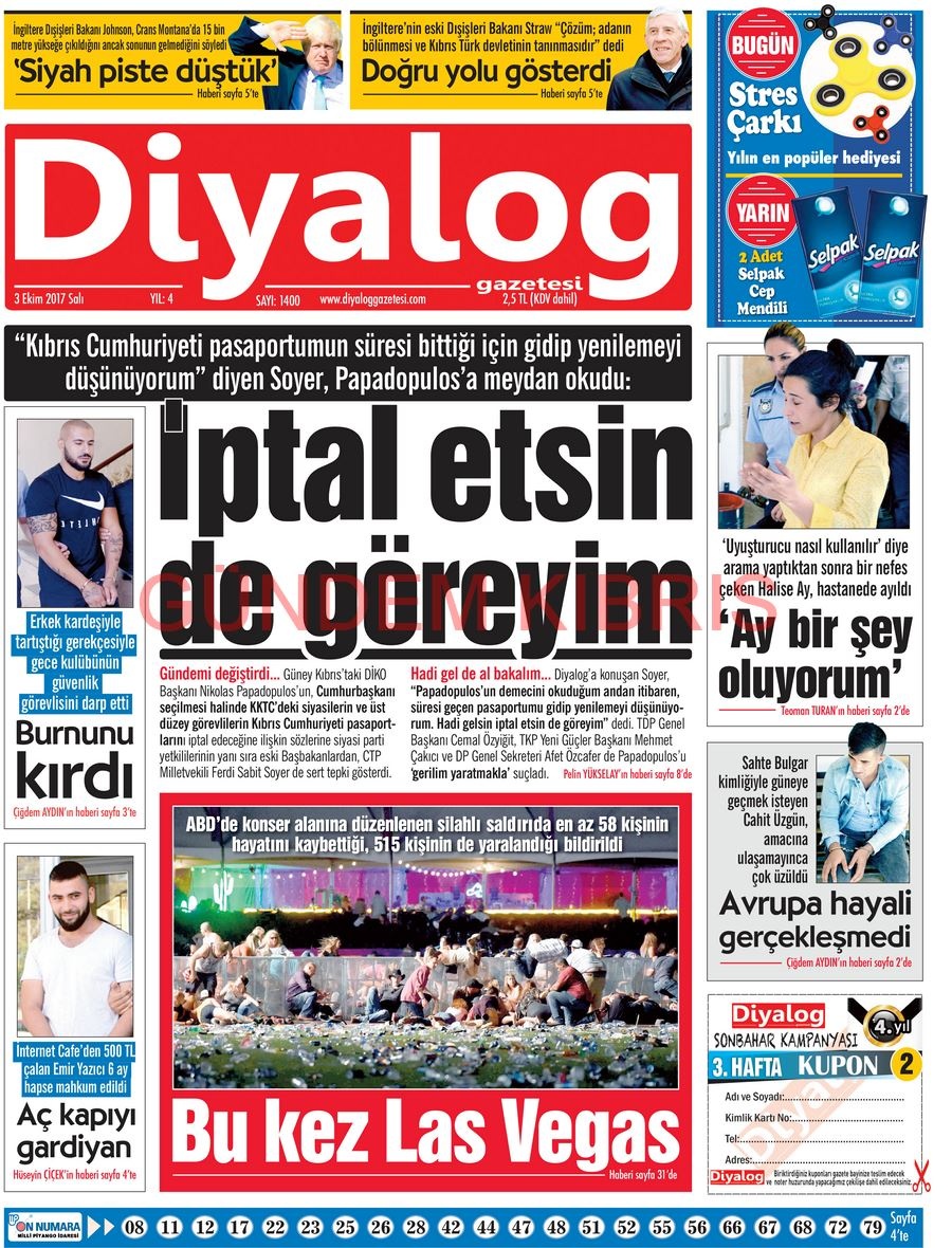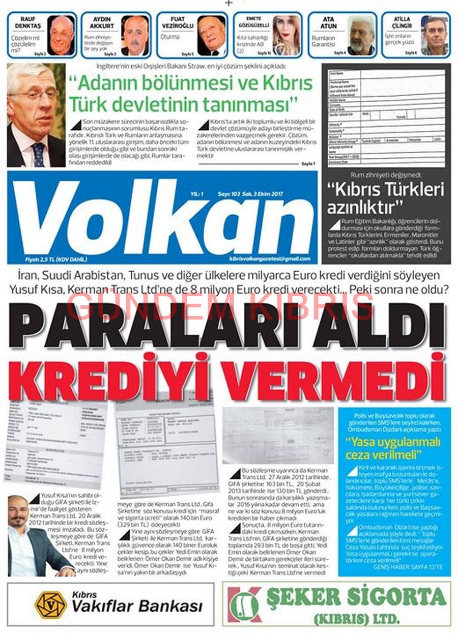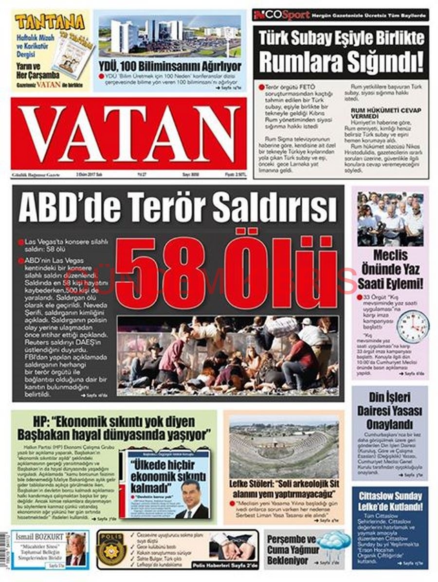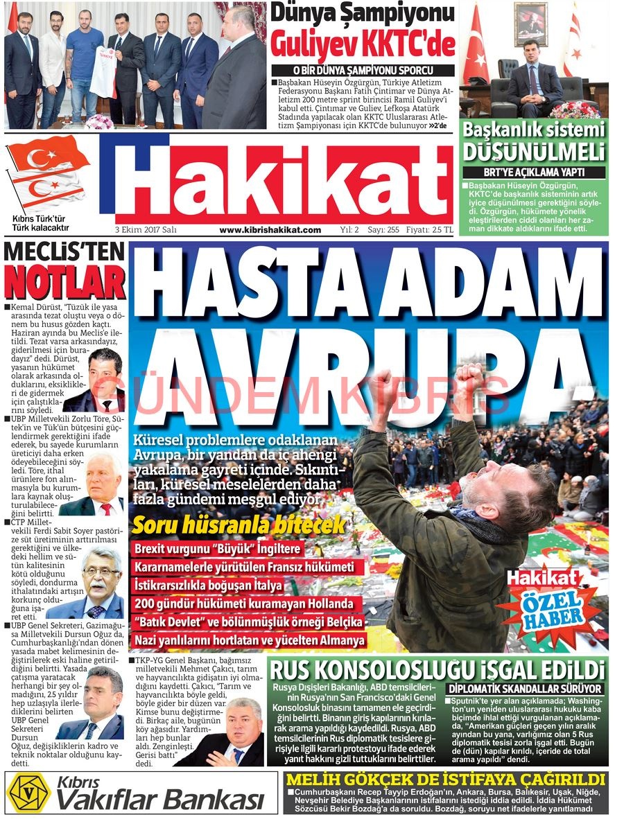 KKTC Gazete Manşetleri 3 Ekim 2017