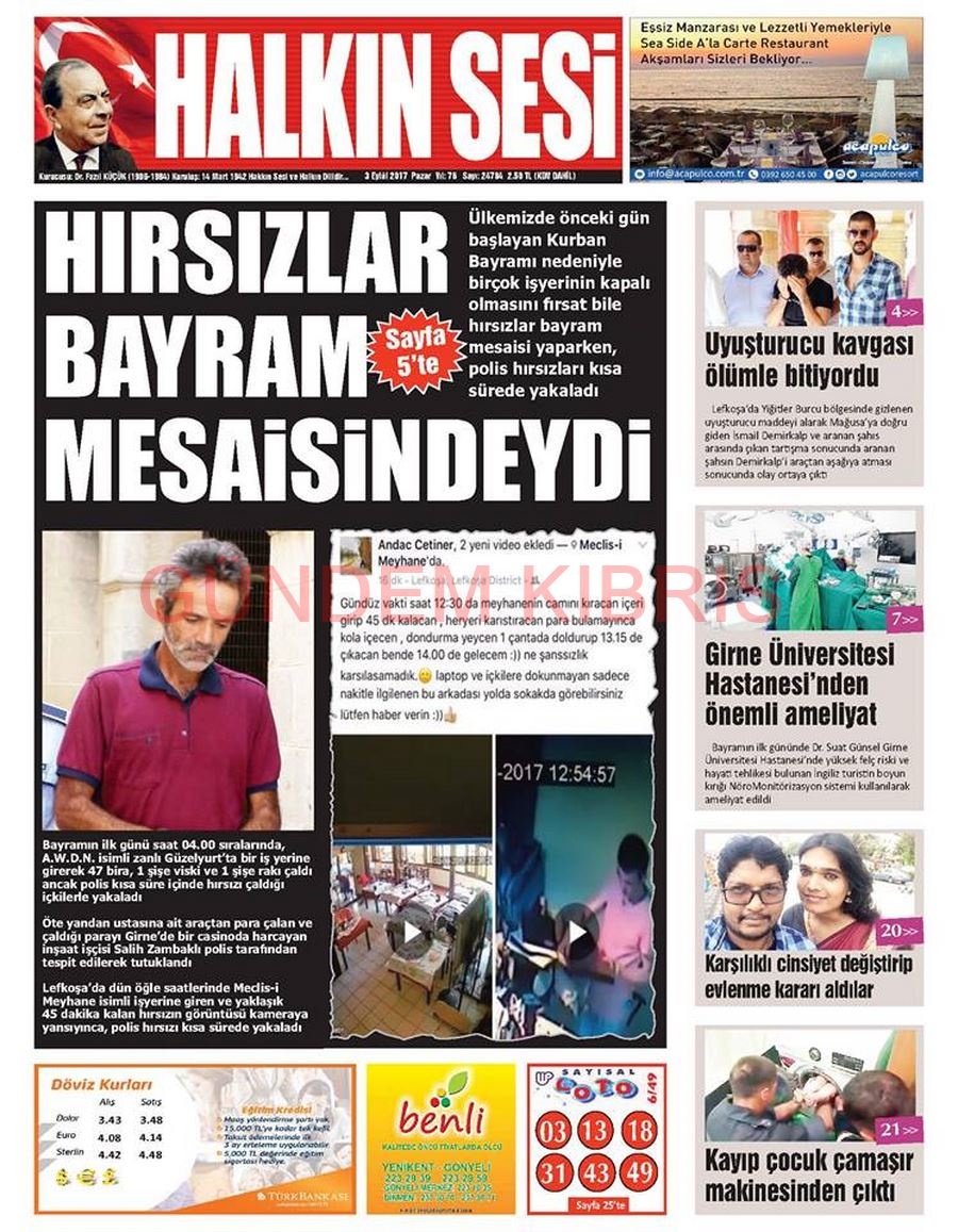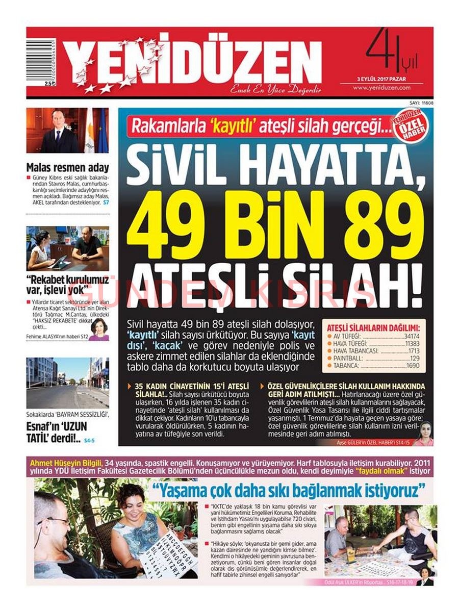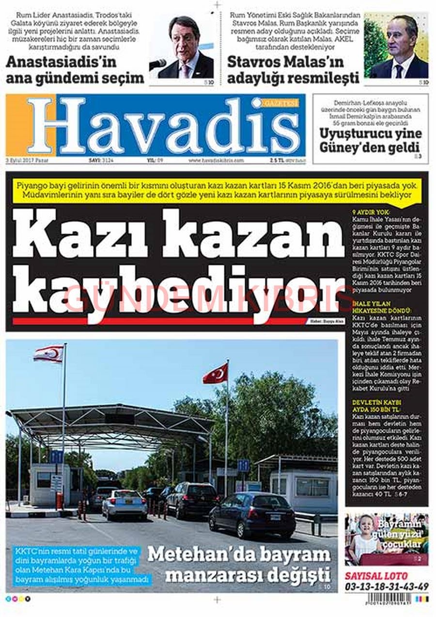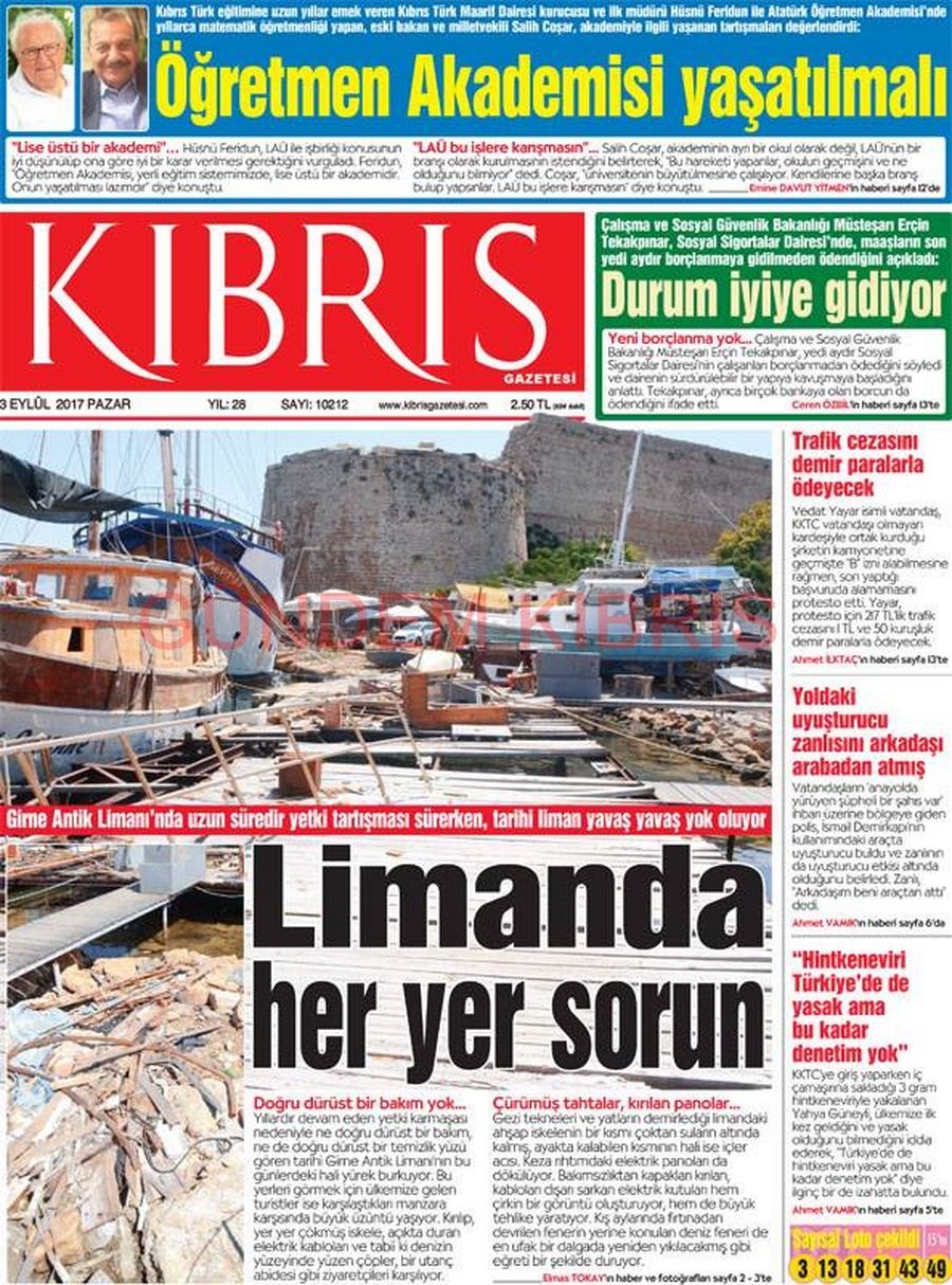 KKTC Gazete Manşetleri 3 Eylül 2017