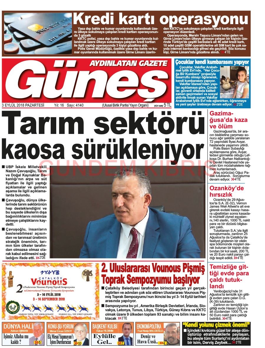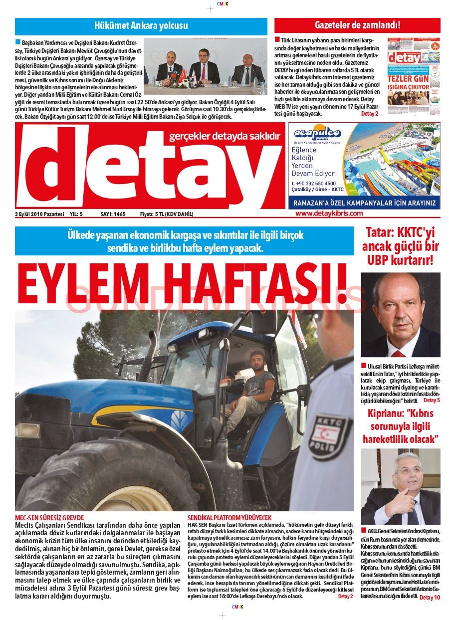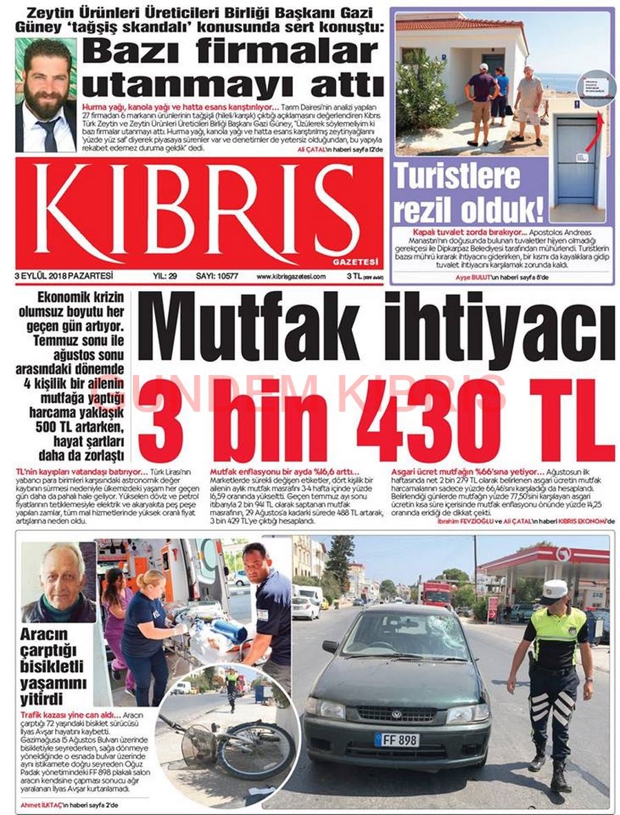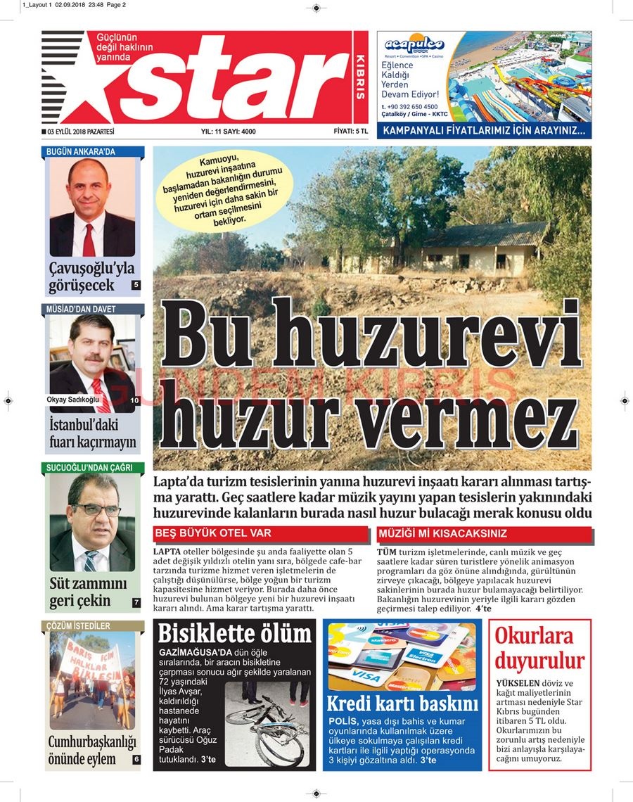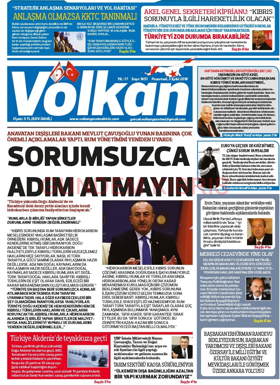 KKTC Gazete Manşetleri 3 Eylül 2018