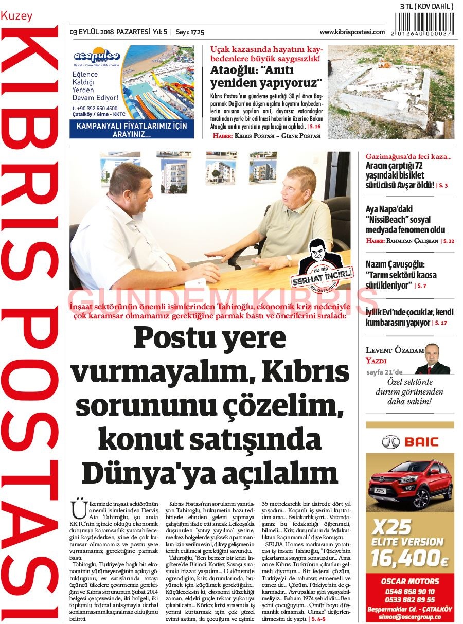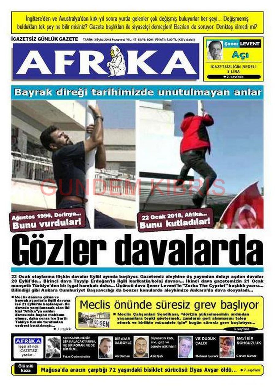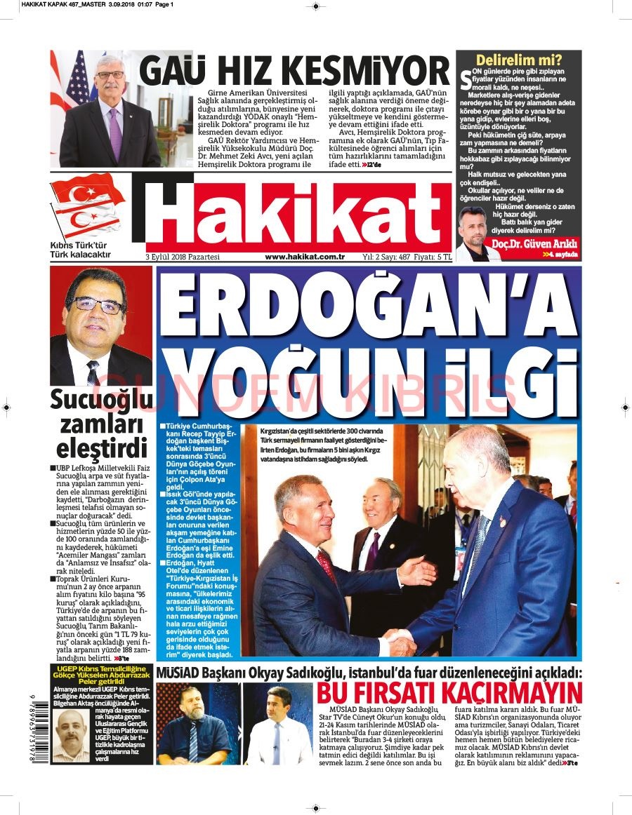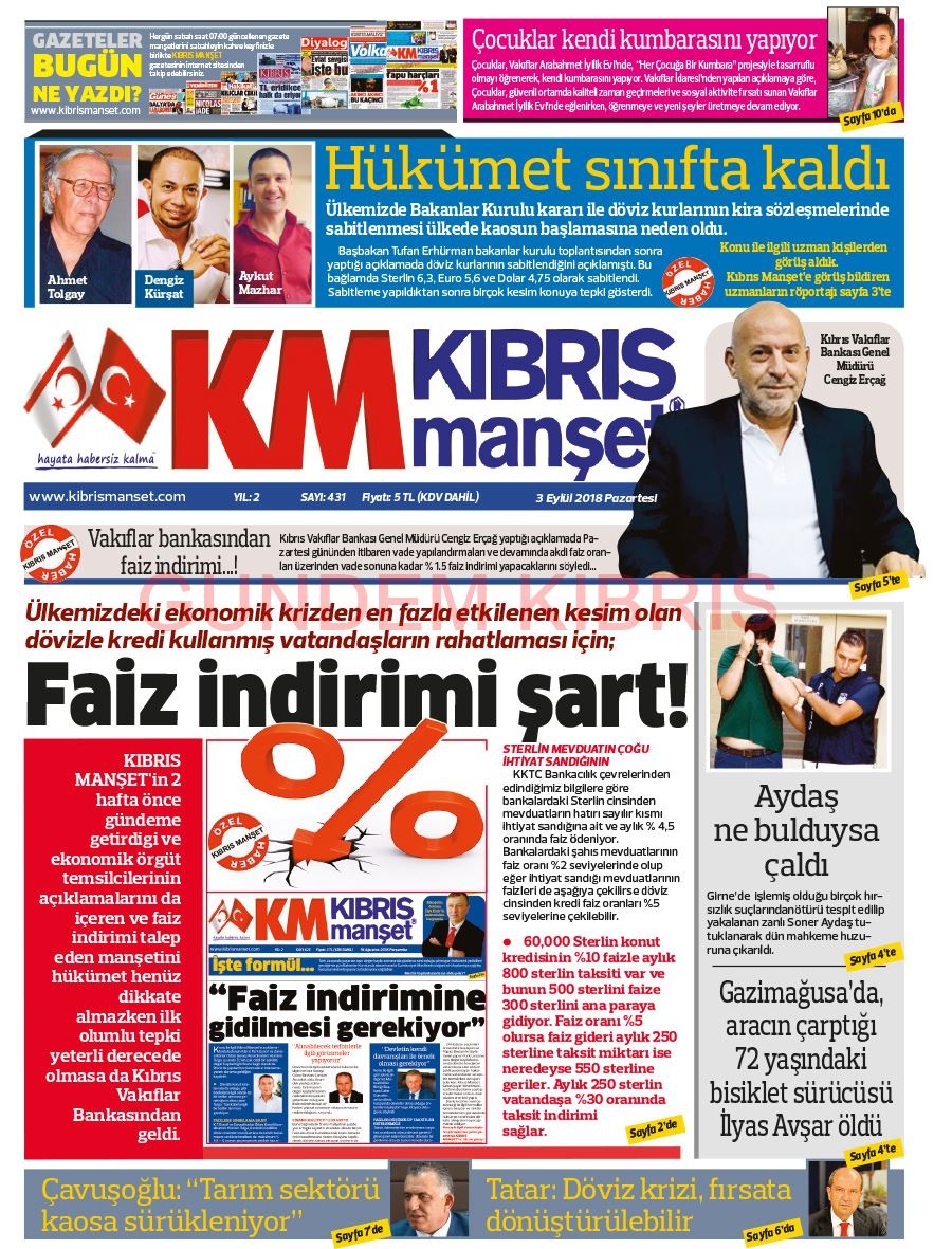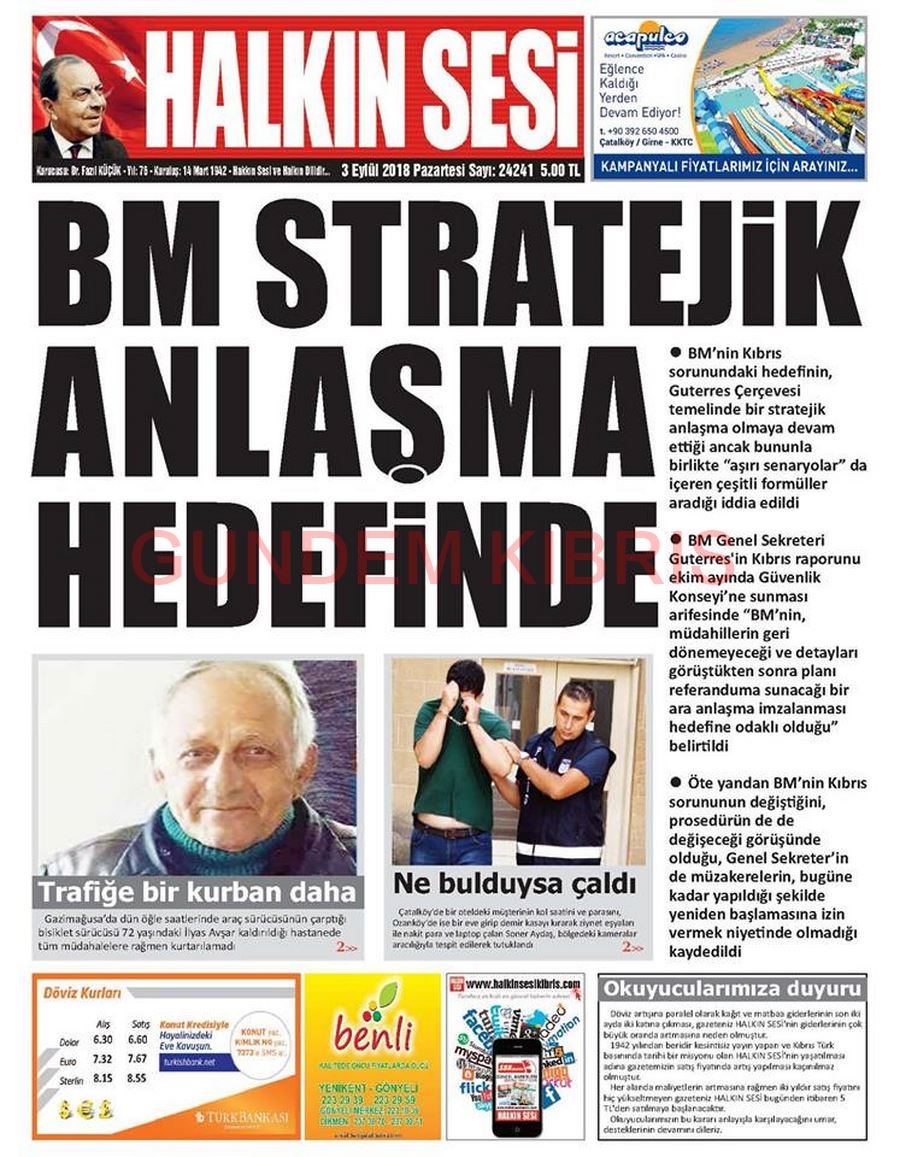 KKTC Gazete Manşetleri 3 Eylül 2018