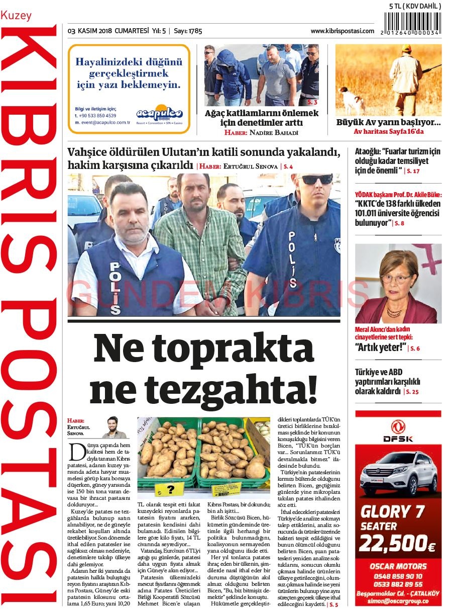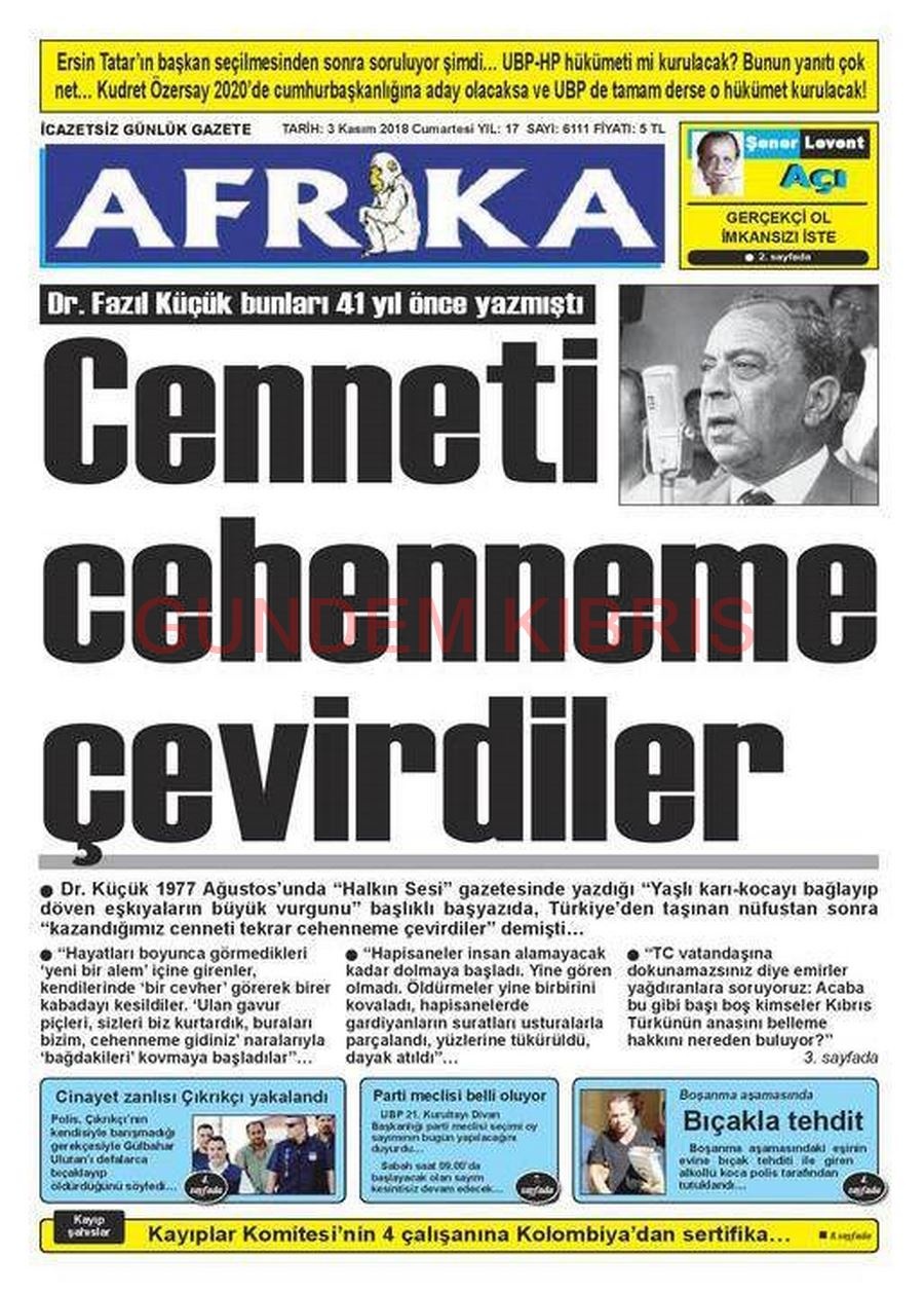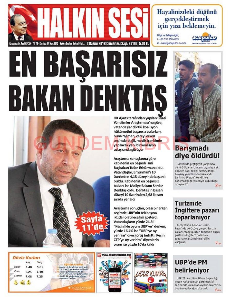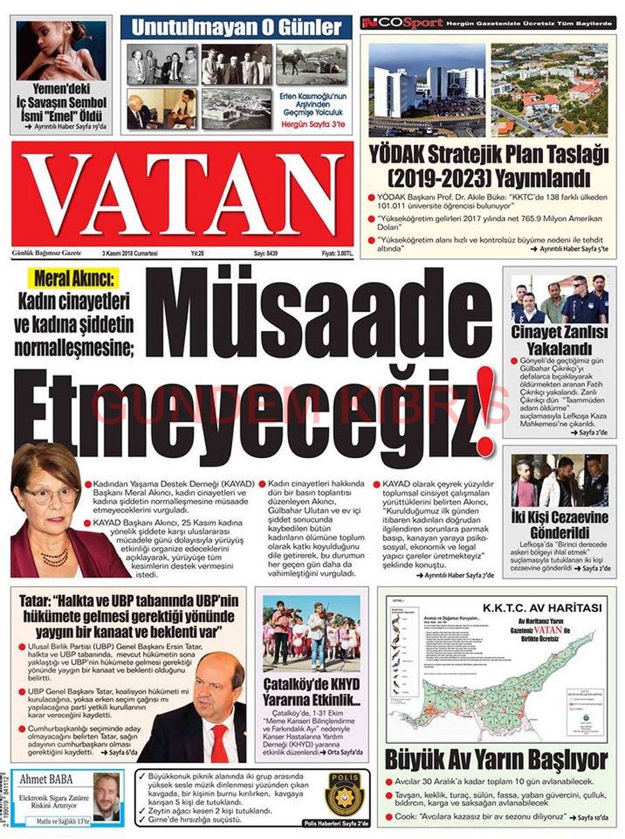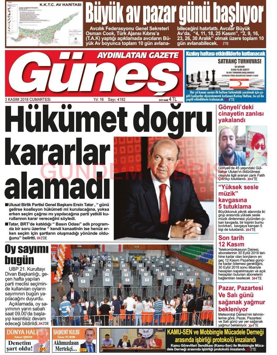 KKTC Gazete Manşetleri 3 Kasım 2018