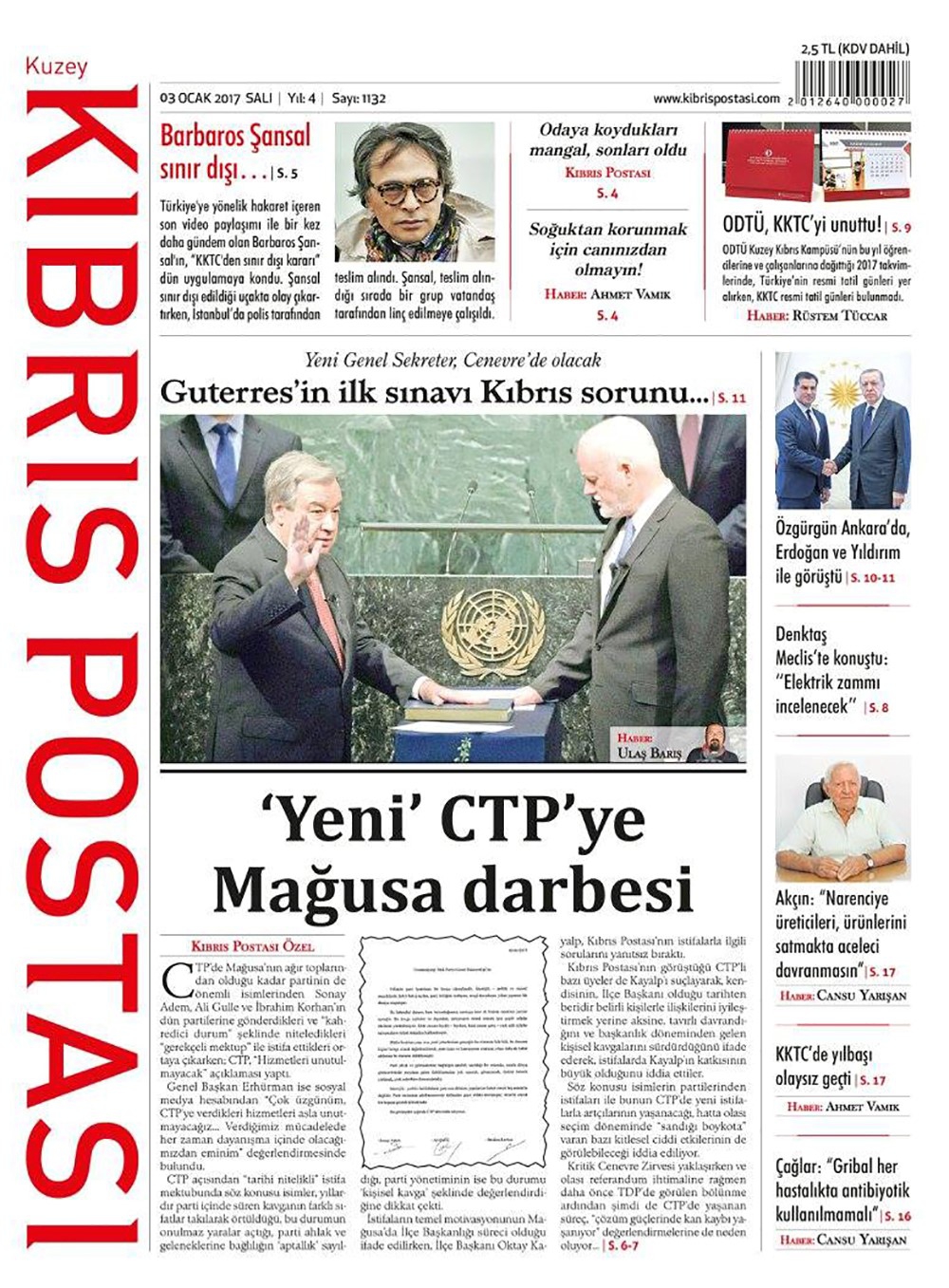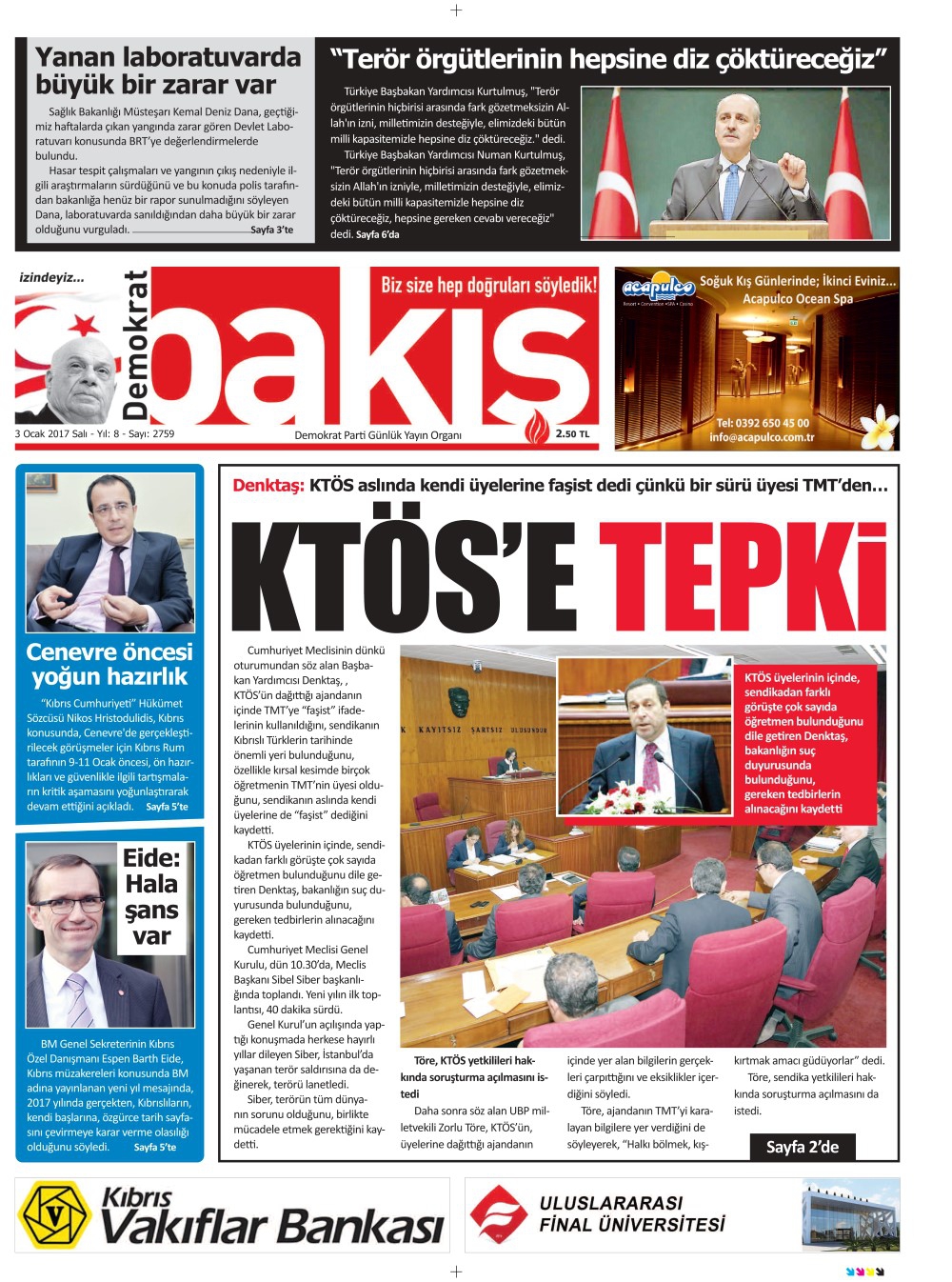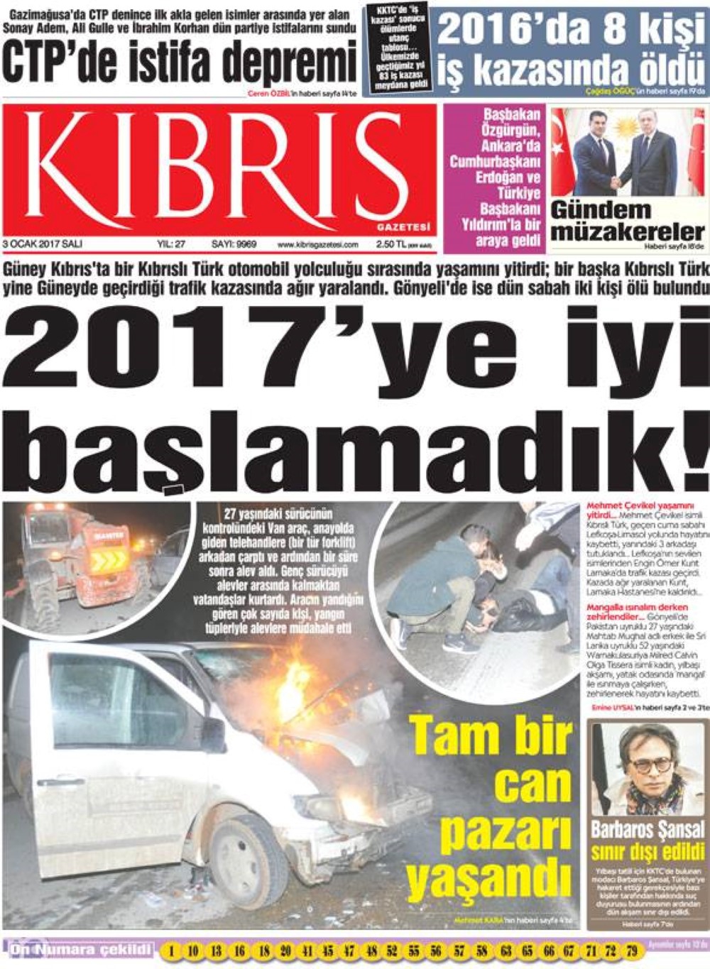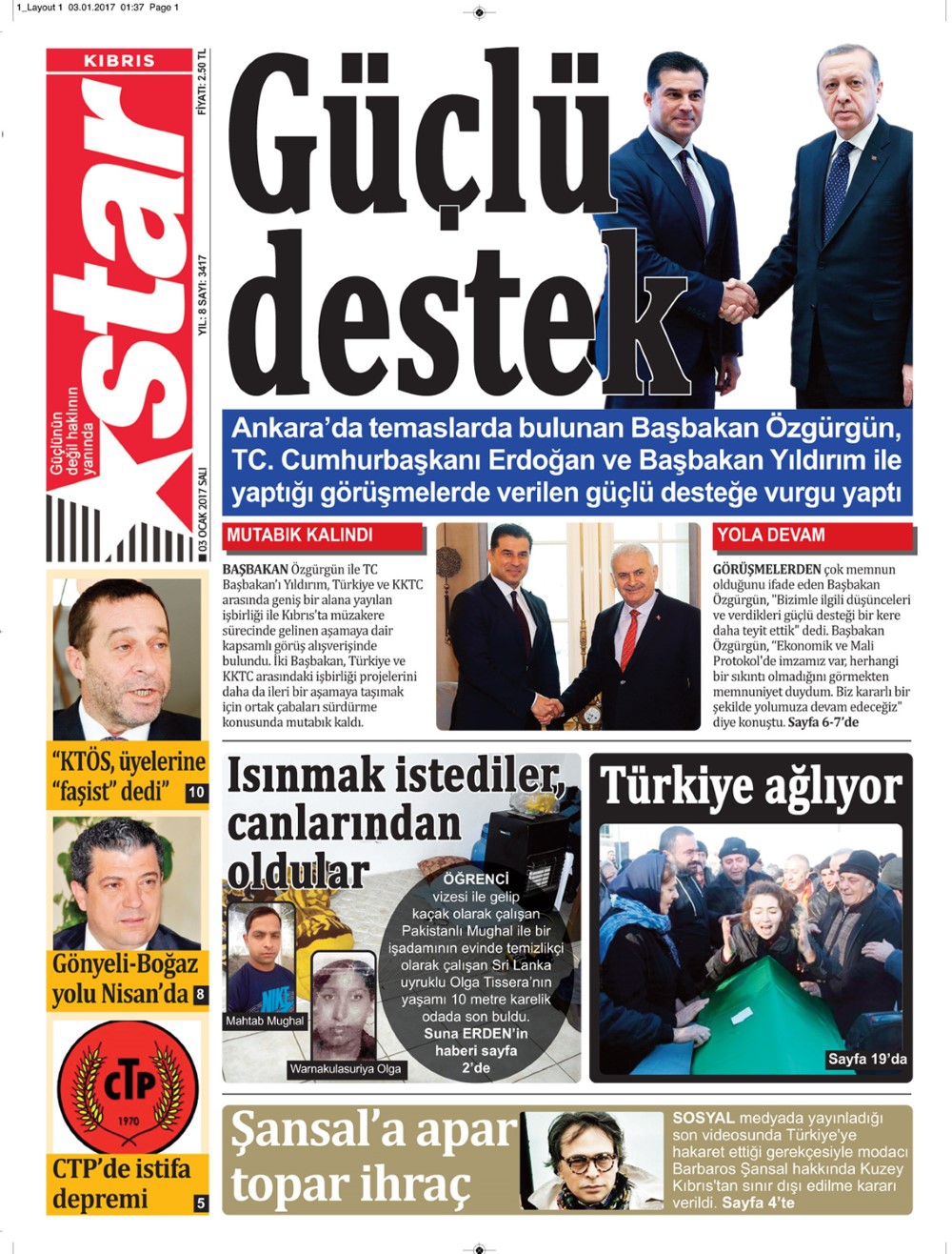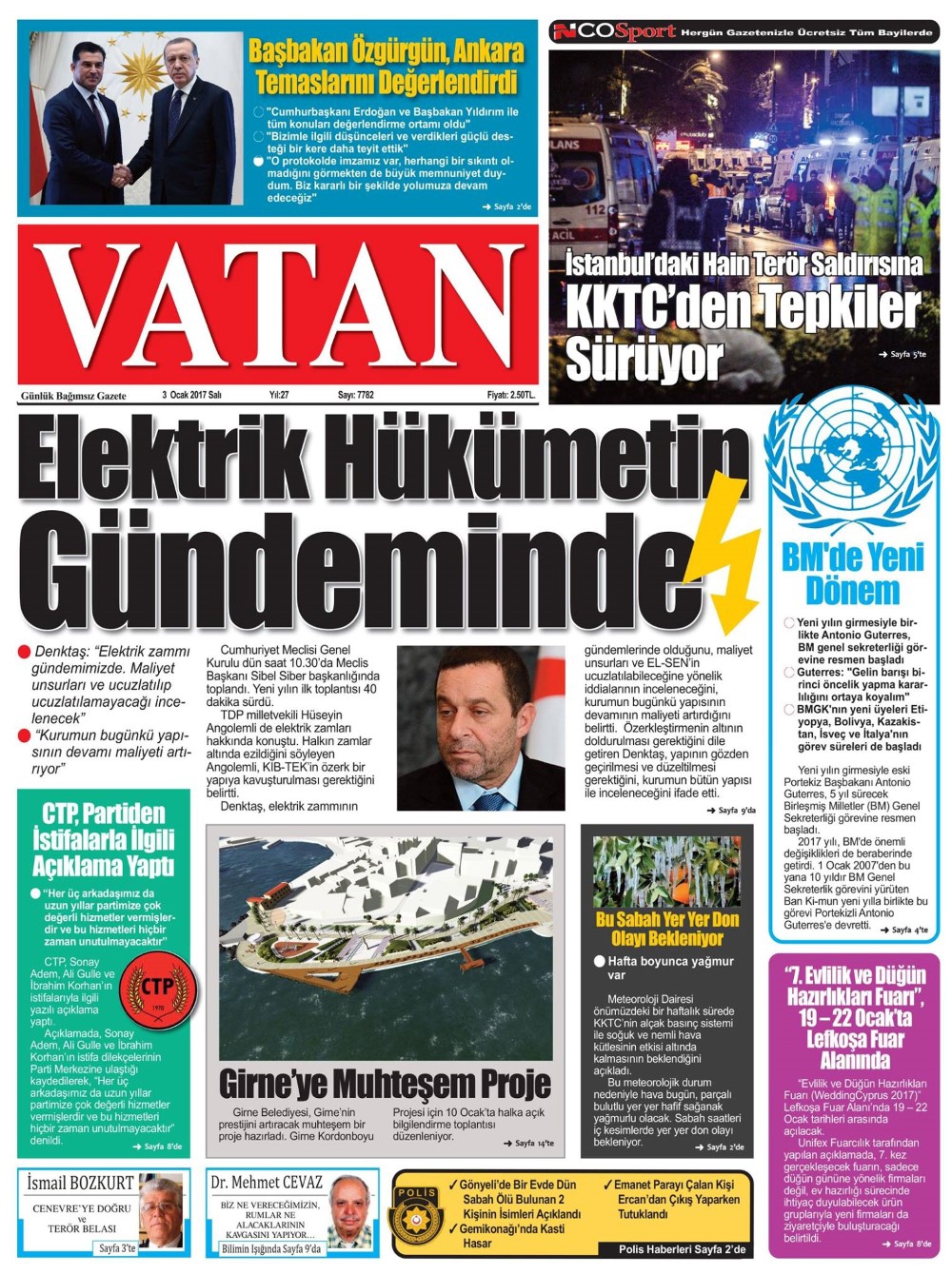 KKTC Gazete Manşetleri 3 Ocak 2017