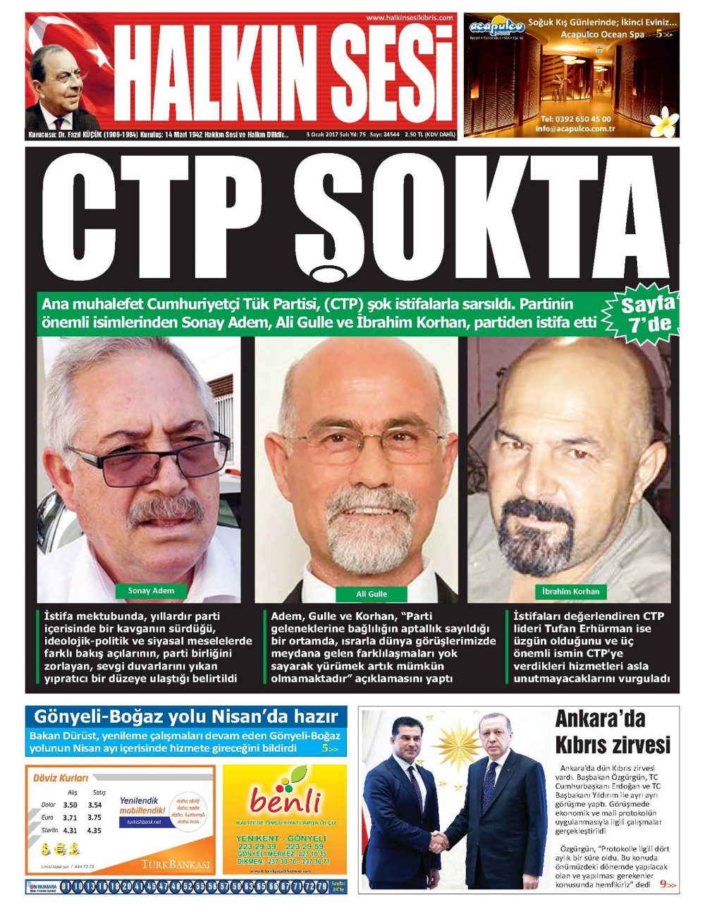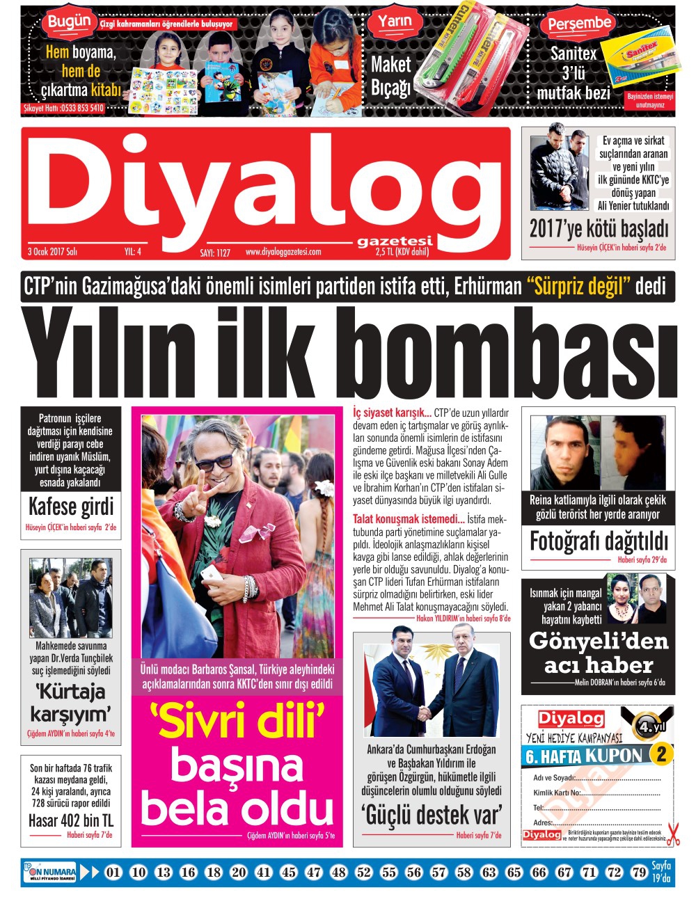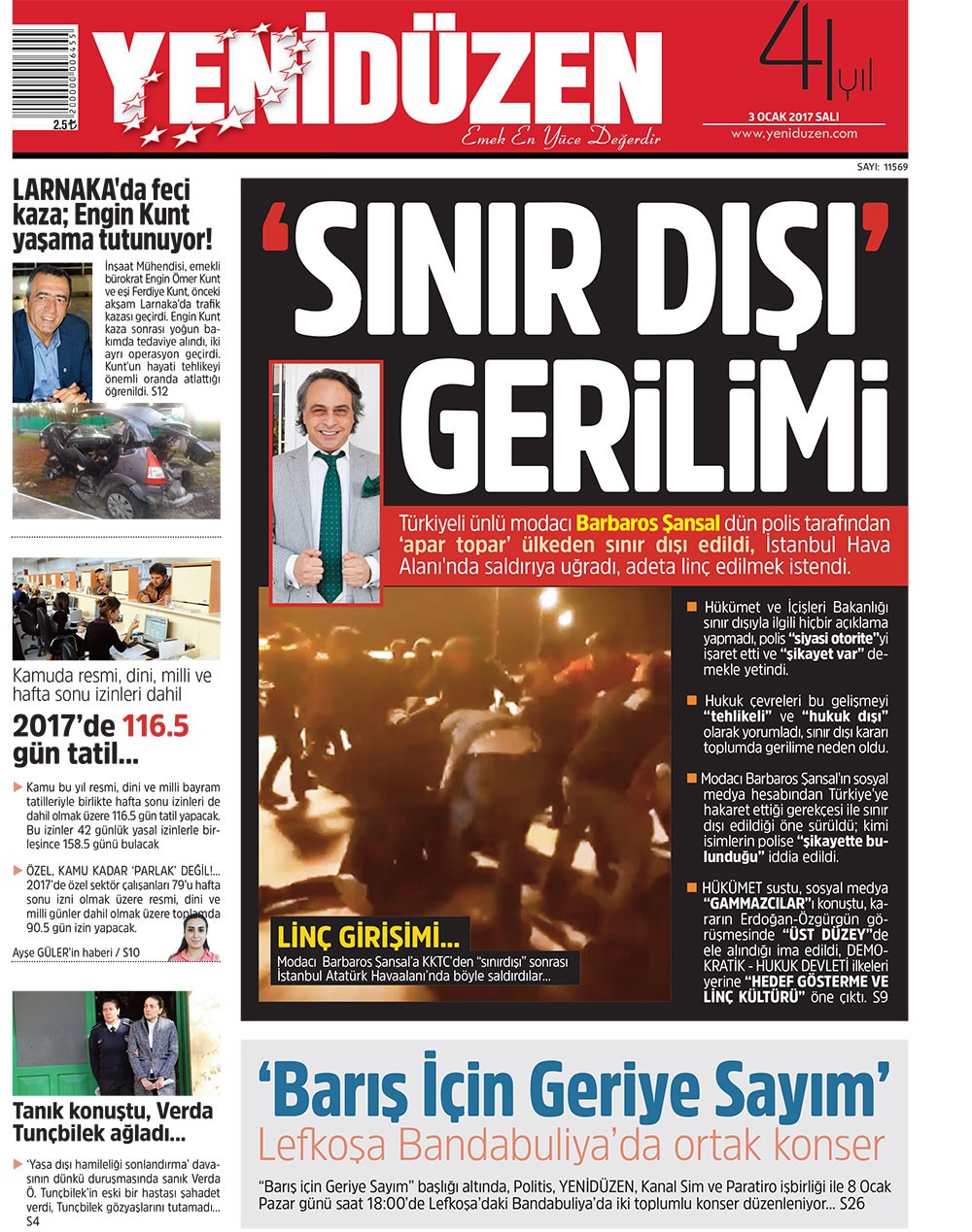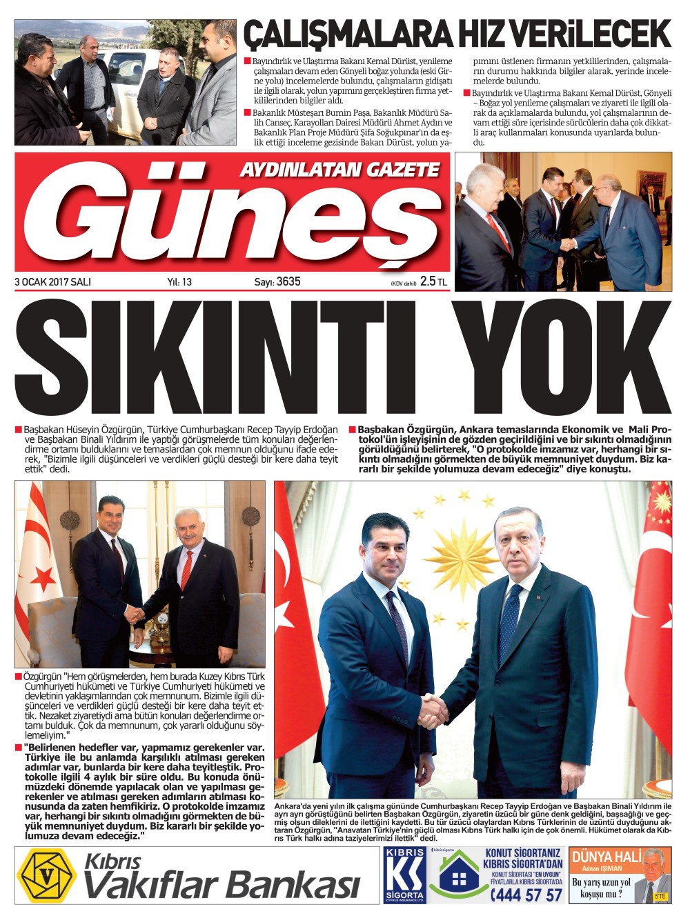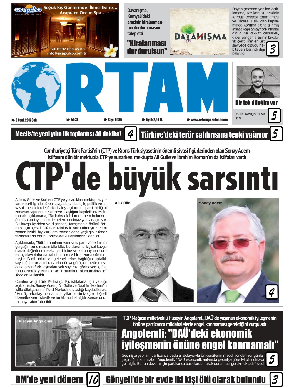 KKTC Gazete Manşetleri 3 Ocak 2017