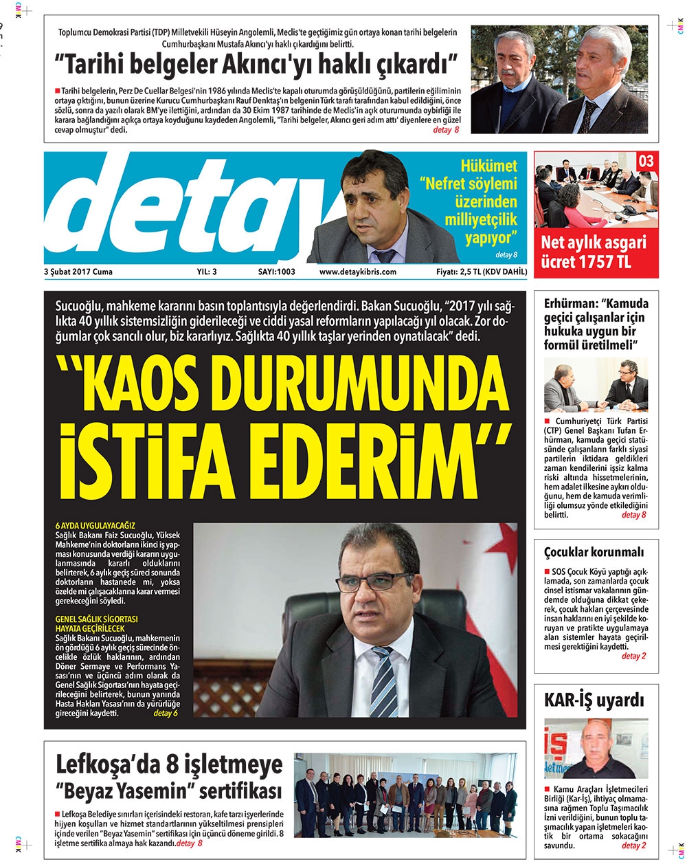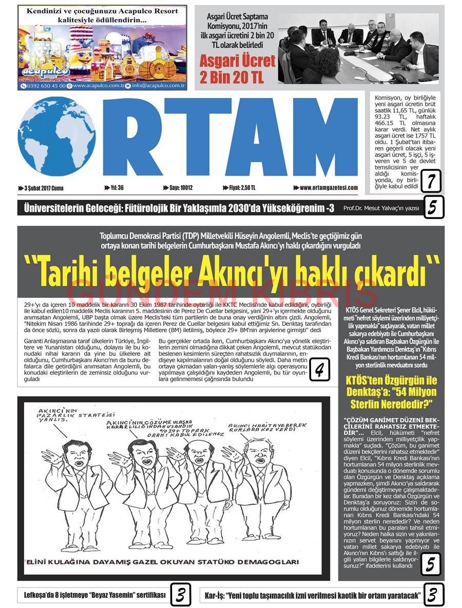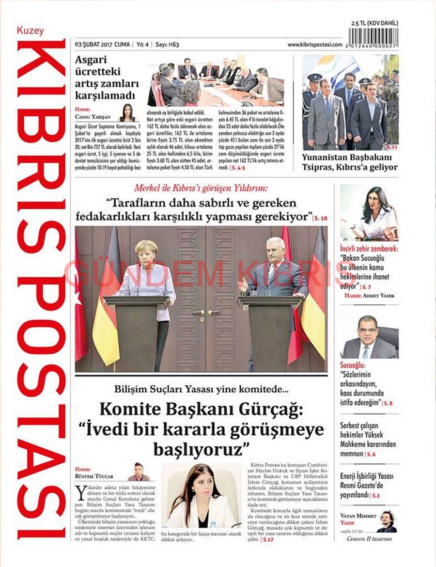 KKTC Gazete Manşetleri 3 Şubat 2017