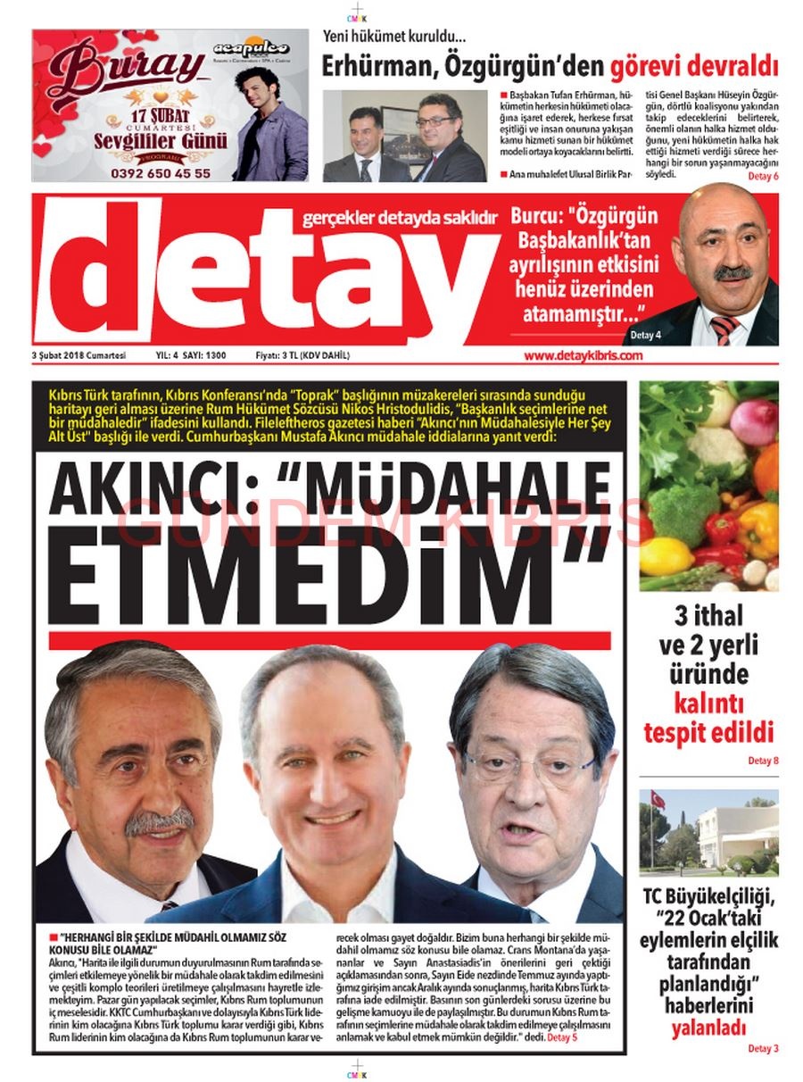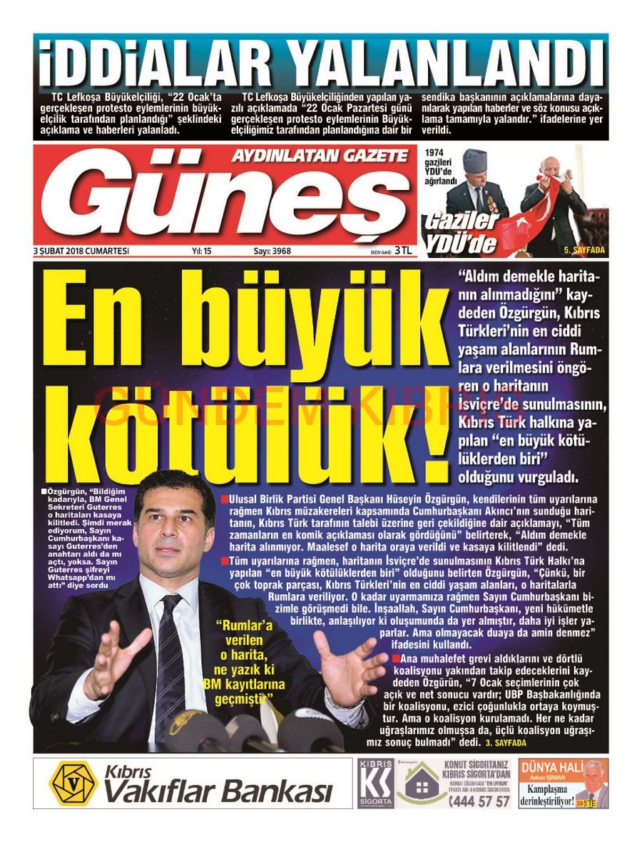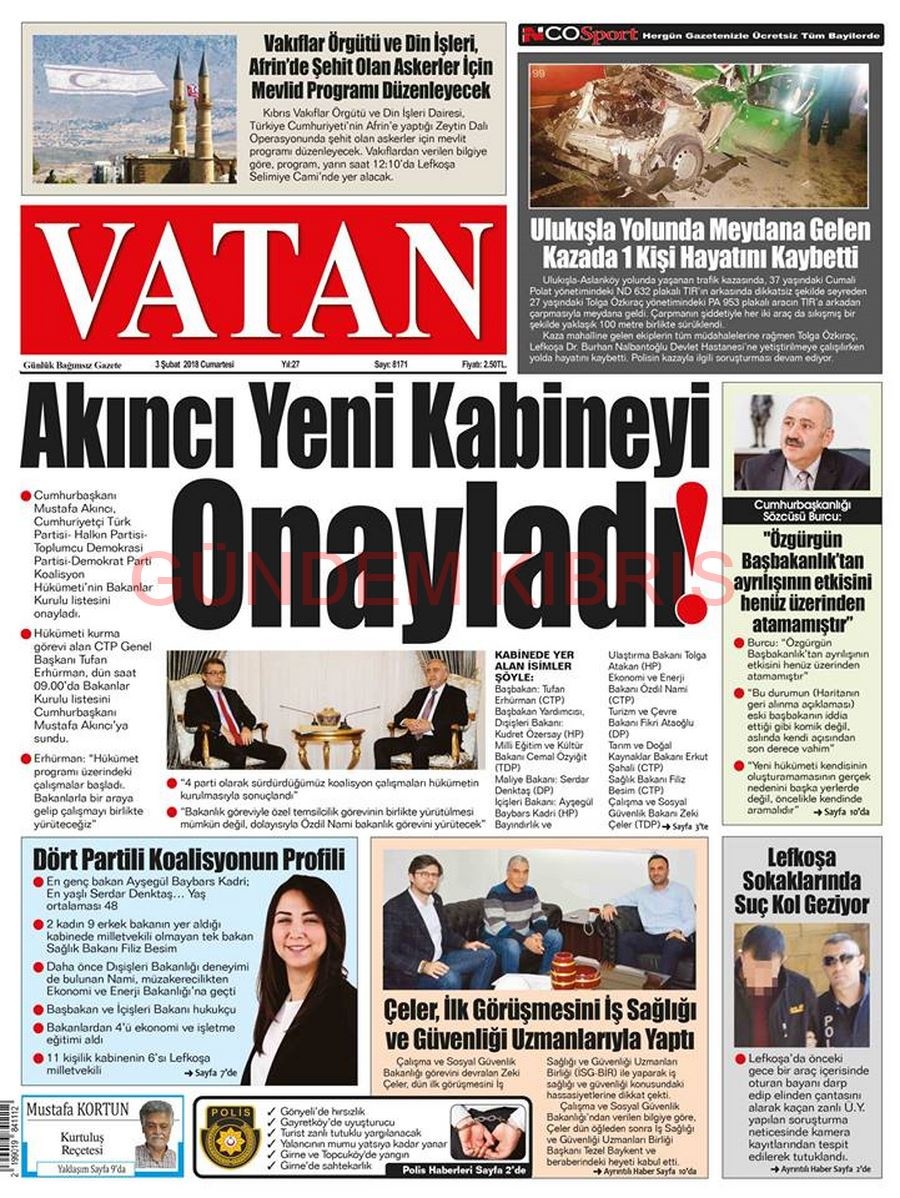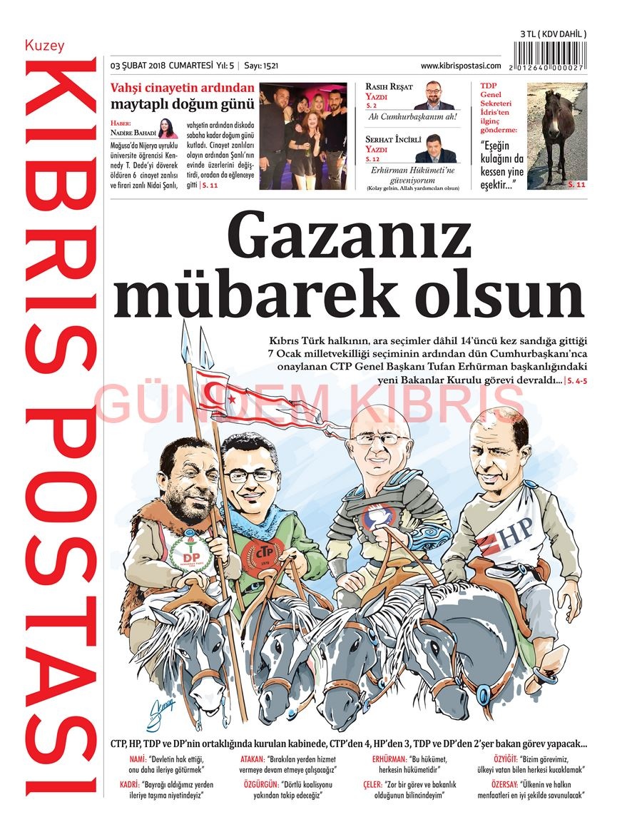 KKTC Gazete Manşetleri 3 Şubat 2018