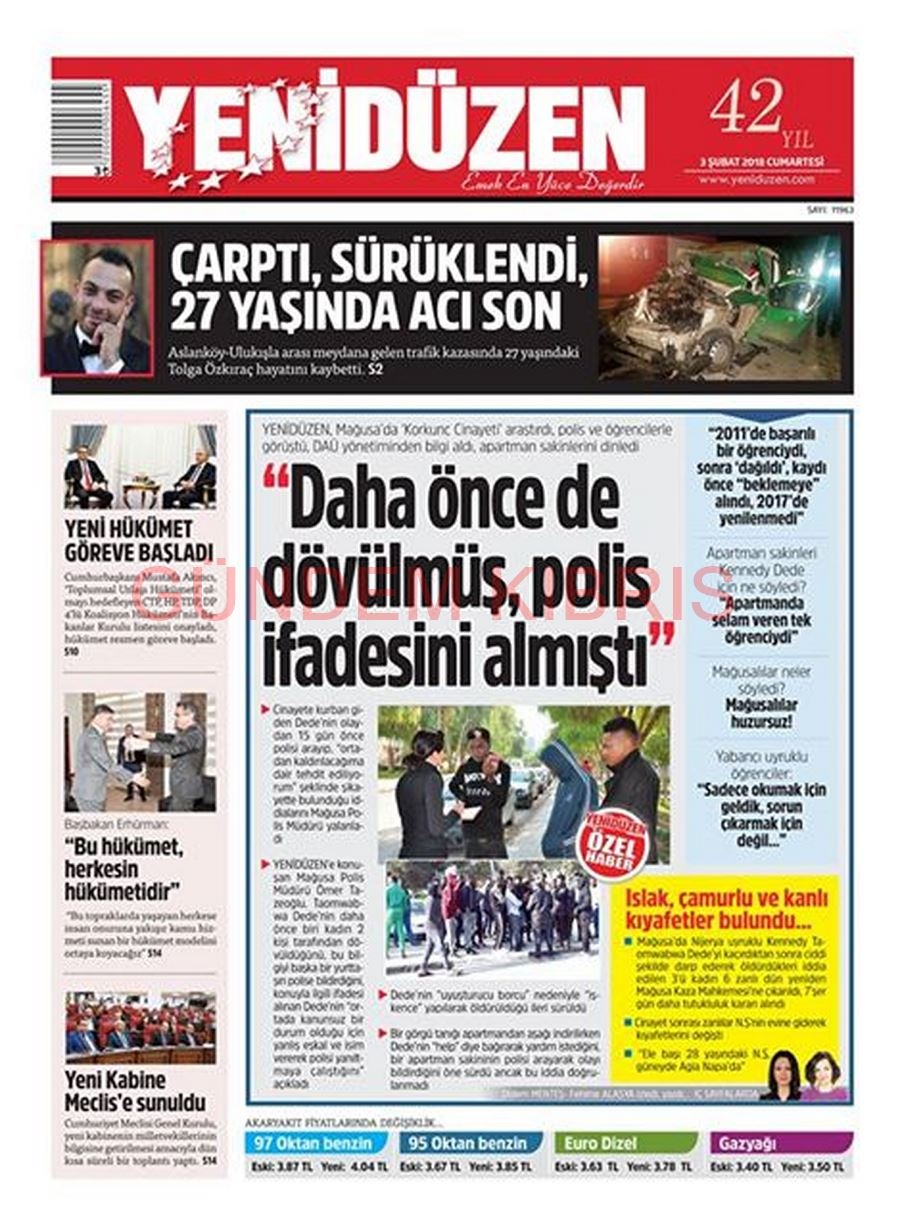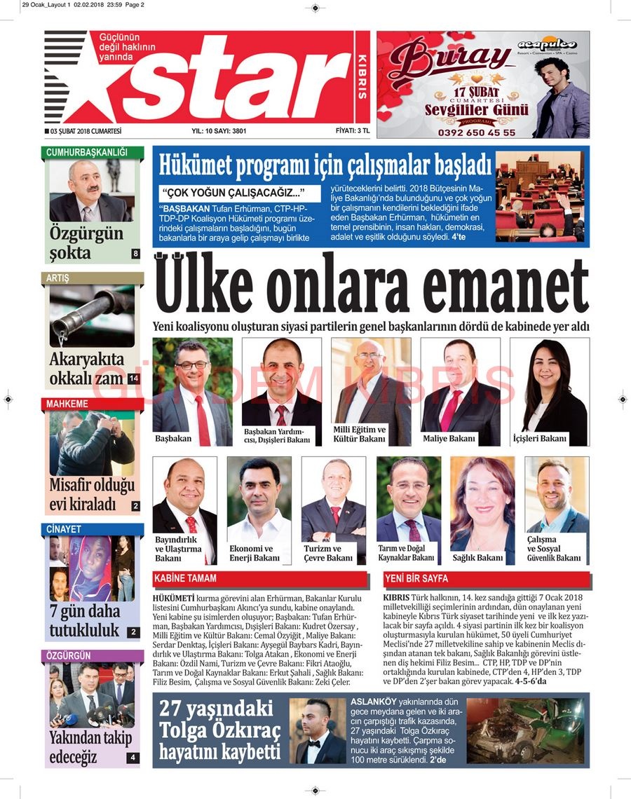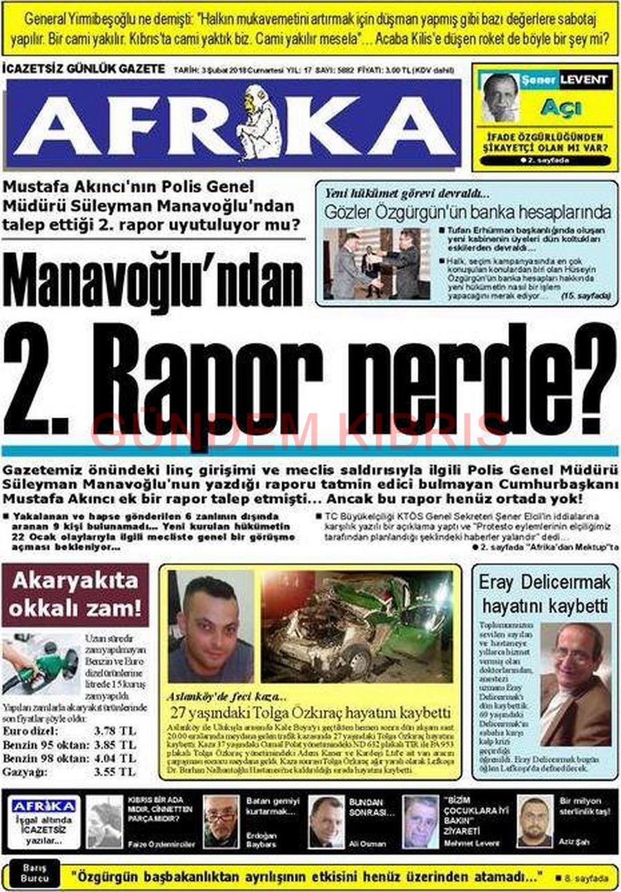 KKTC Gazete Manşetleri 3 Şubat 2018