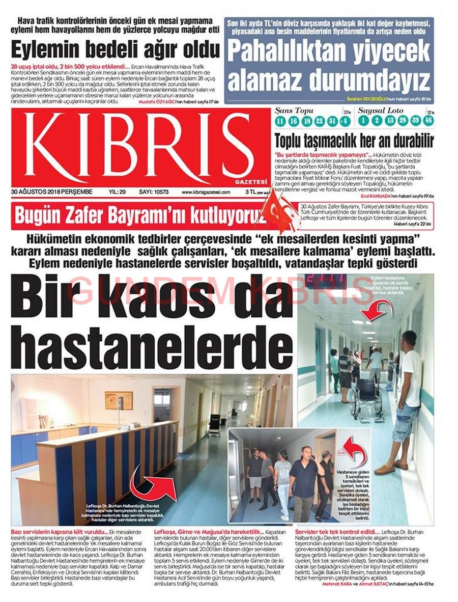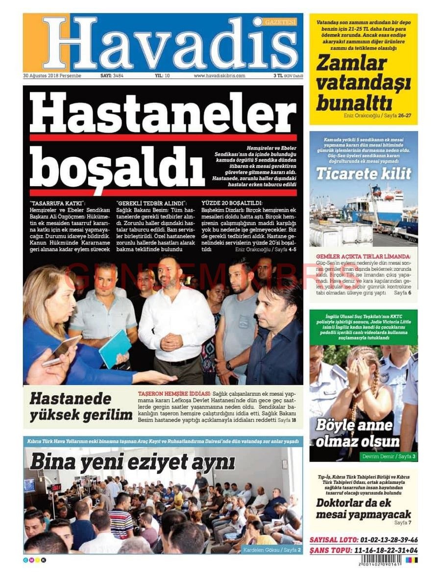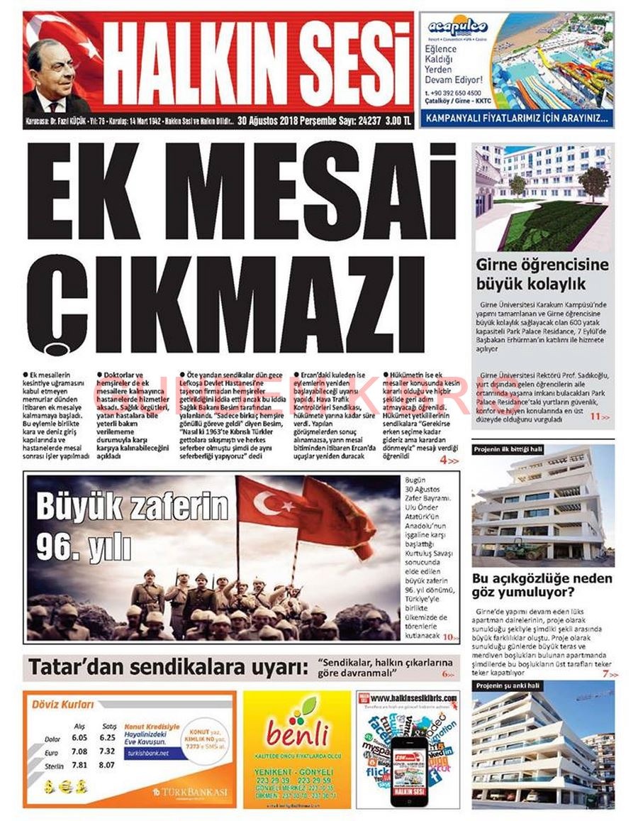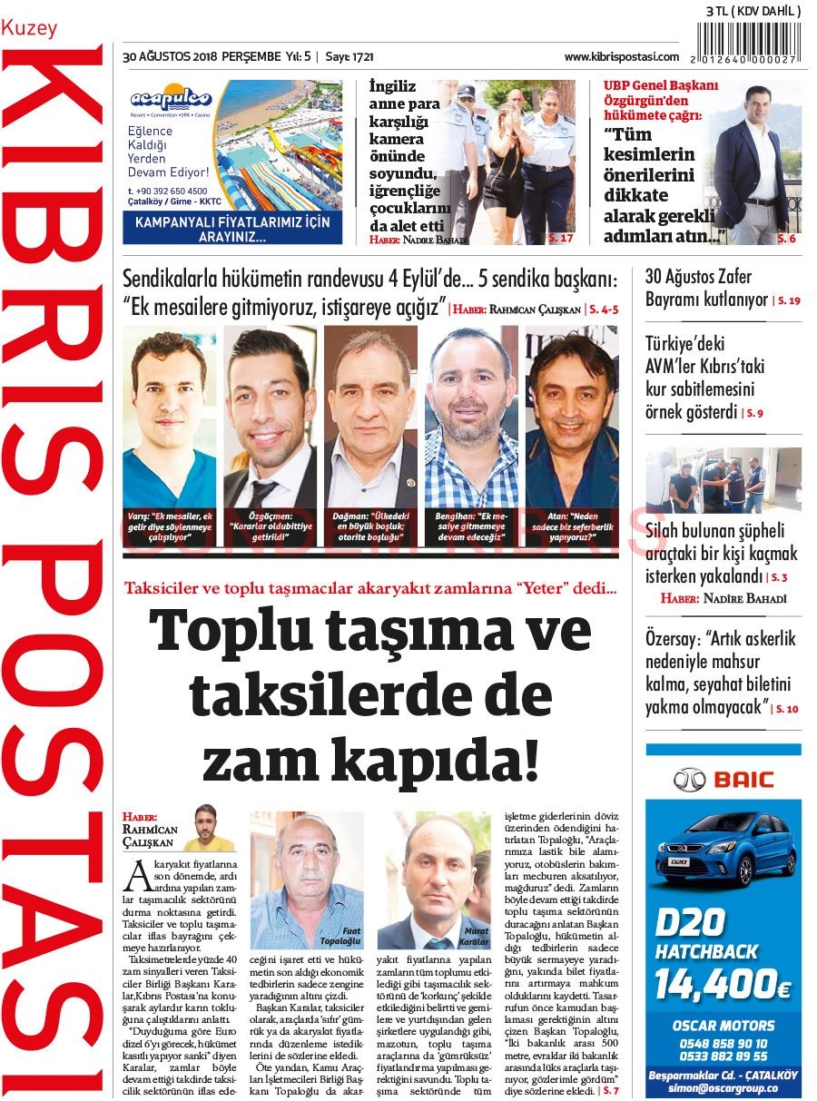 KKTC Gazete Manşetleri 30 Ağustos 2018