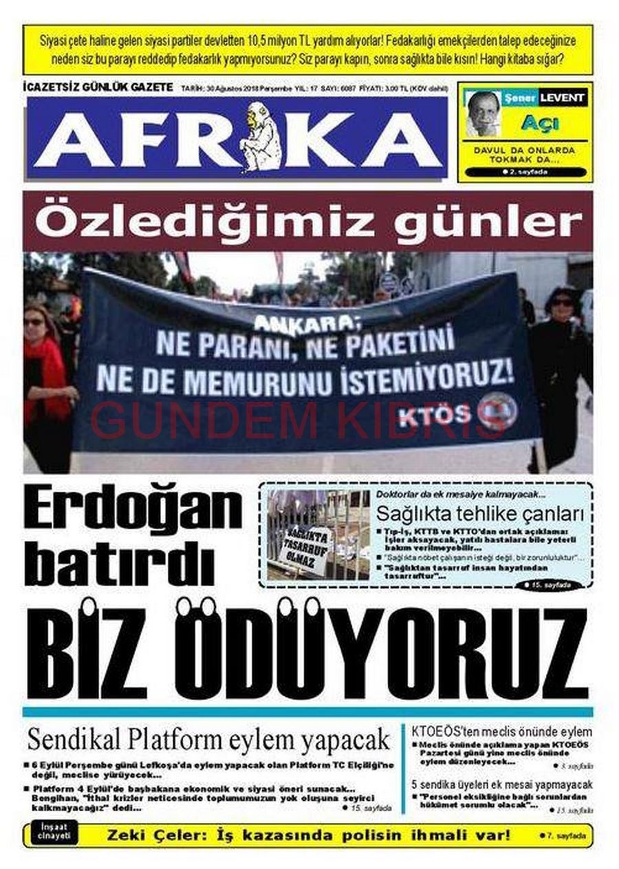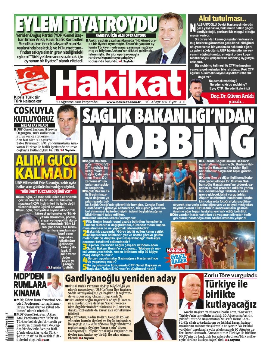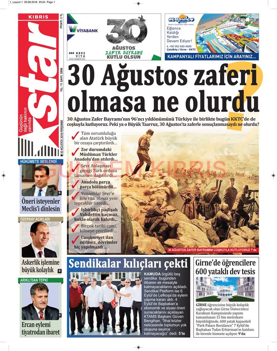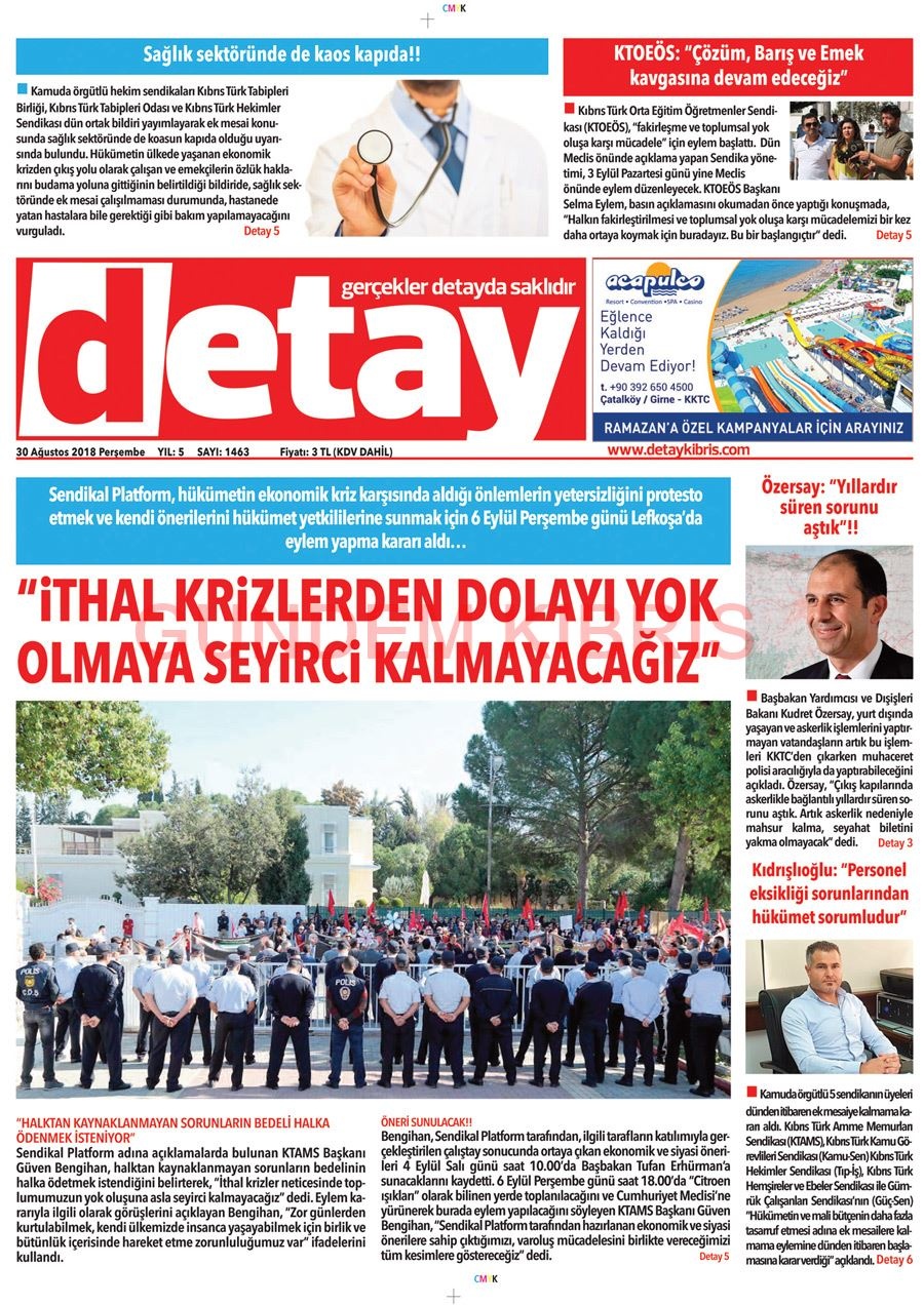 KKTC Gazete Manşetleri 30 Ağustos 2018