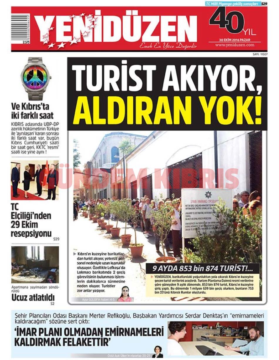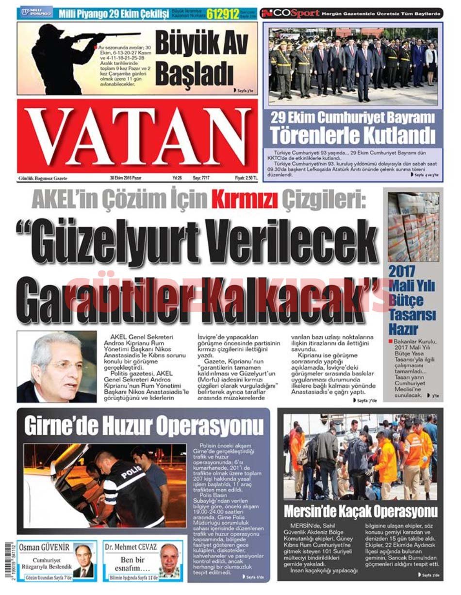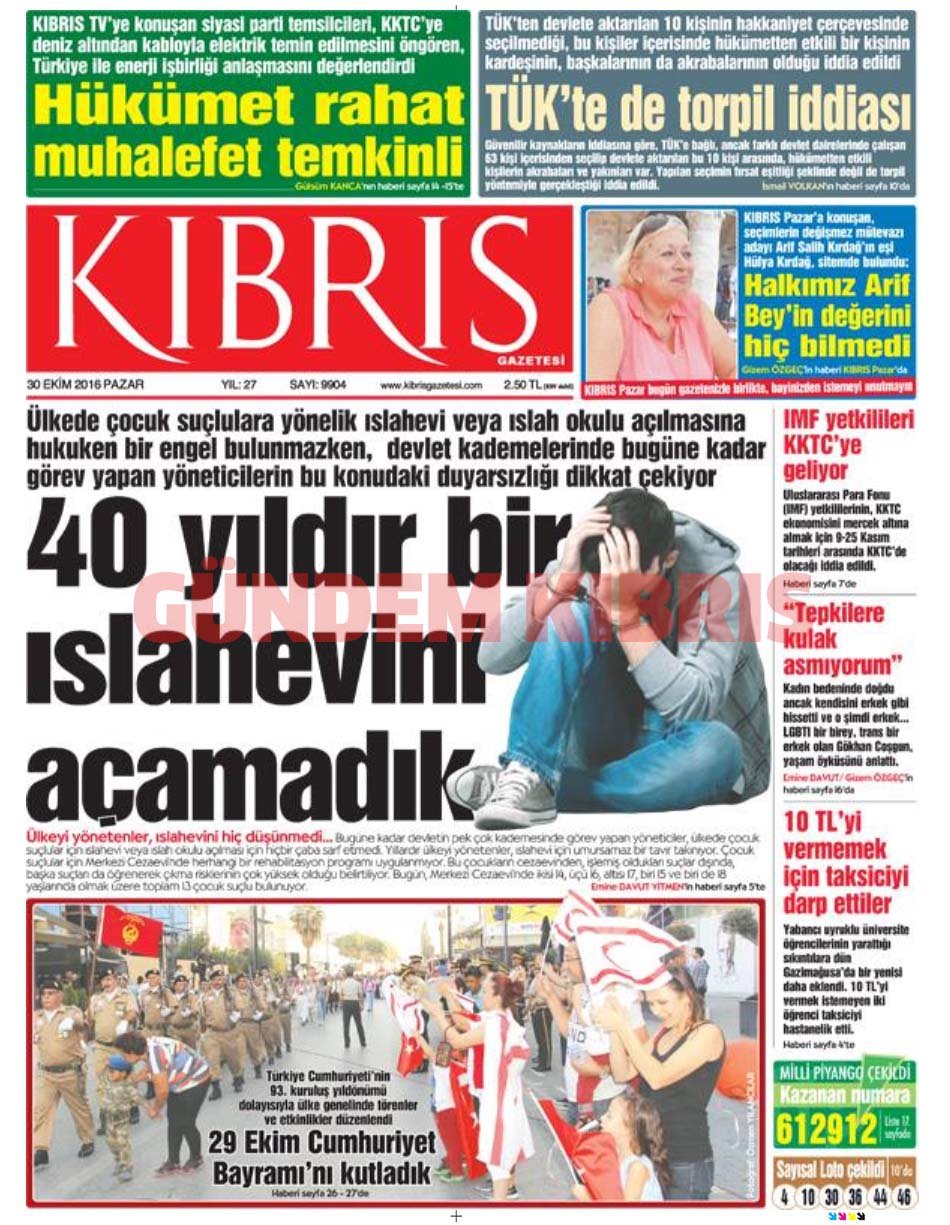 KKTC Gazete Manşetleri 30 Ekim 2016
