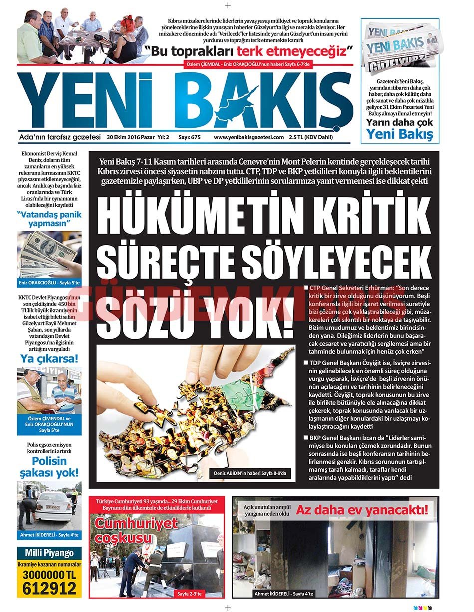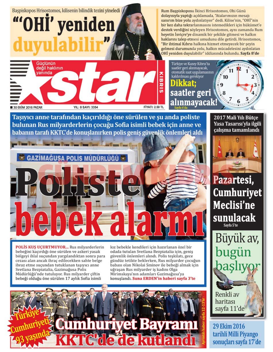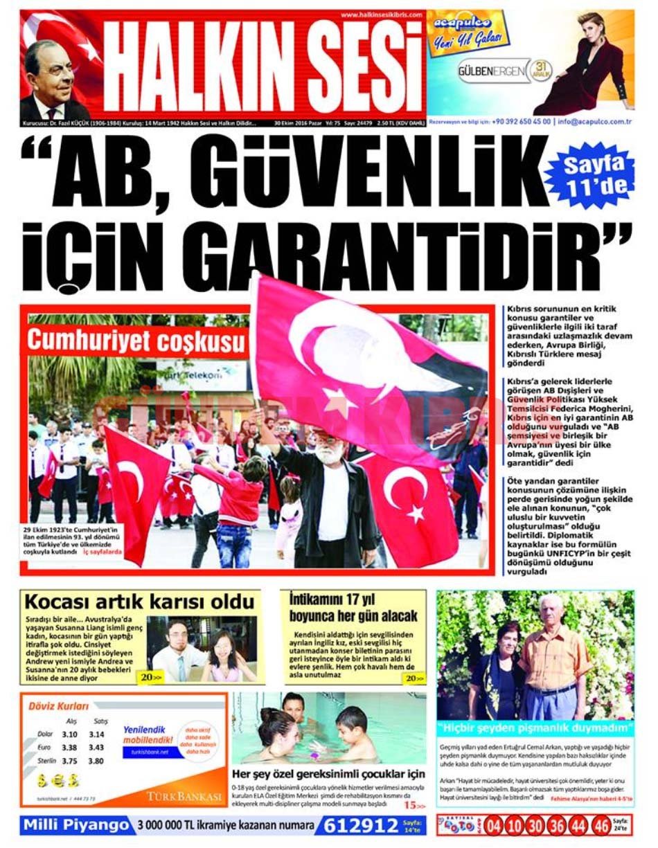 KKTC Gazete Manşetleri 30 Ekim 2016