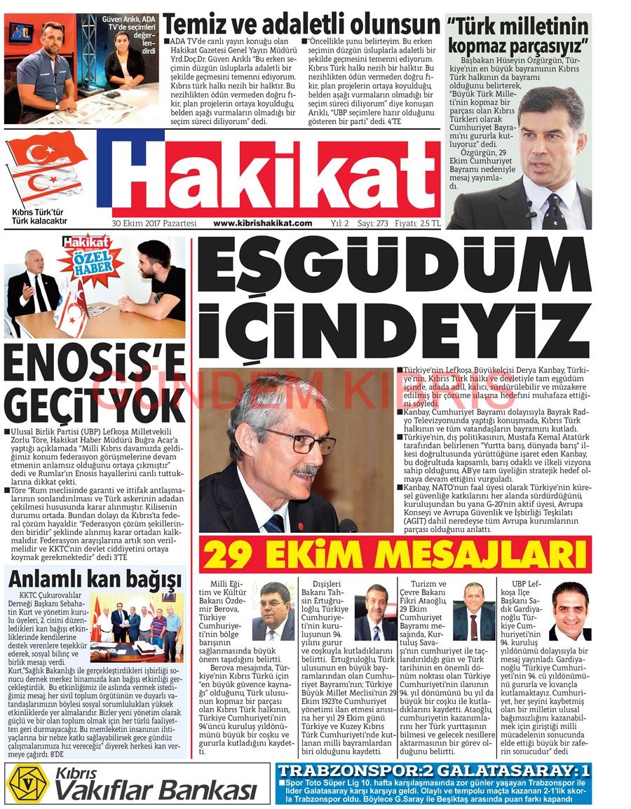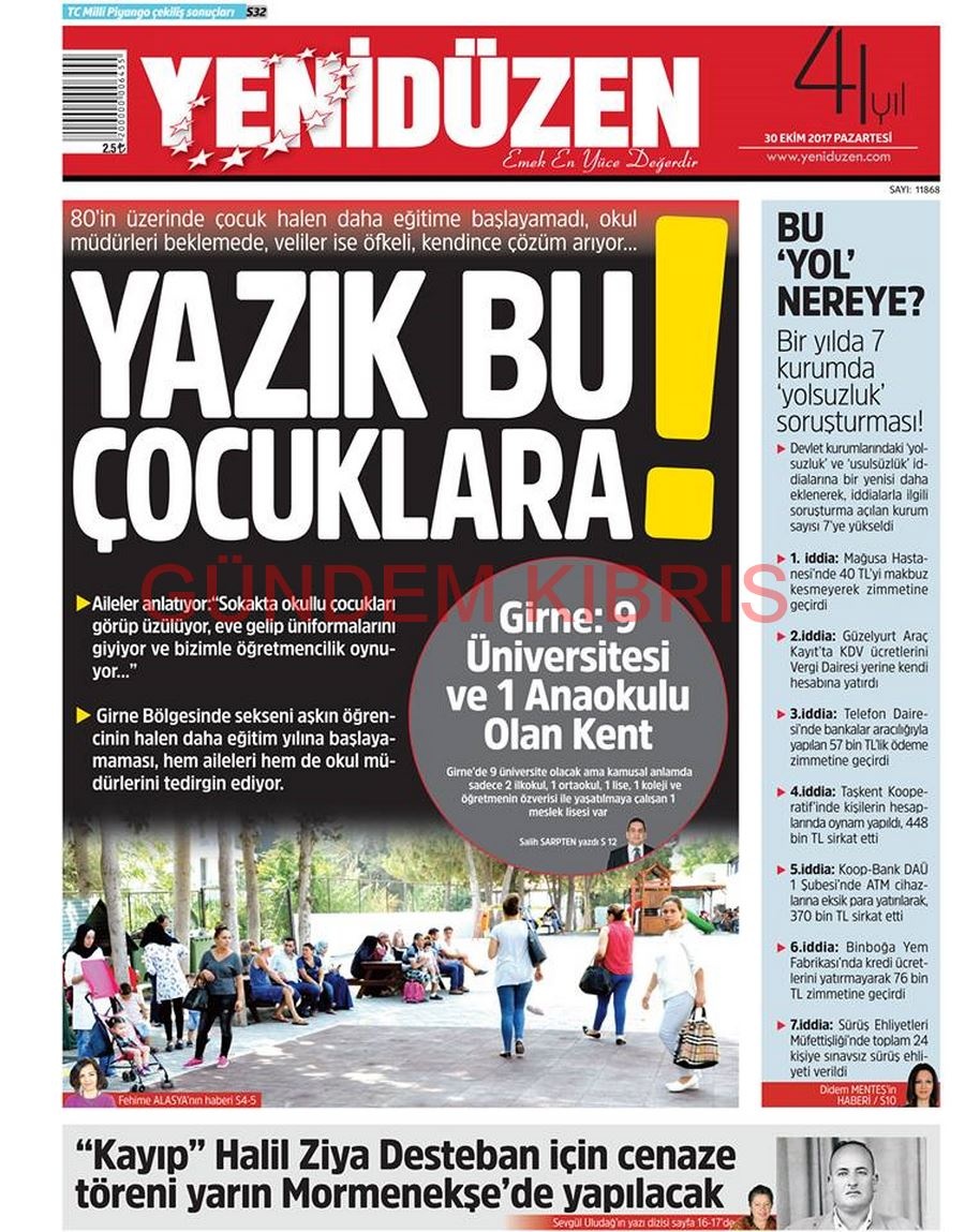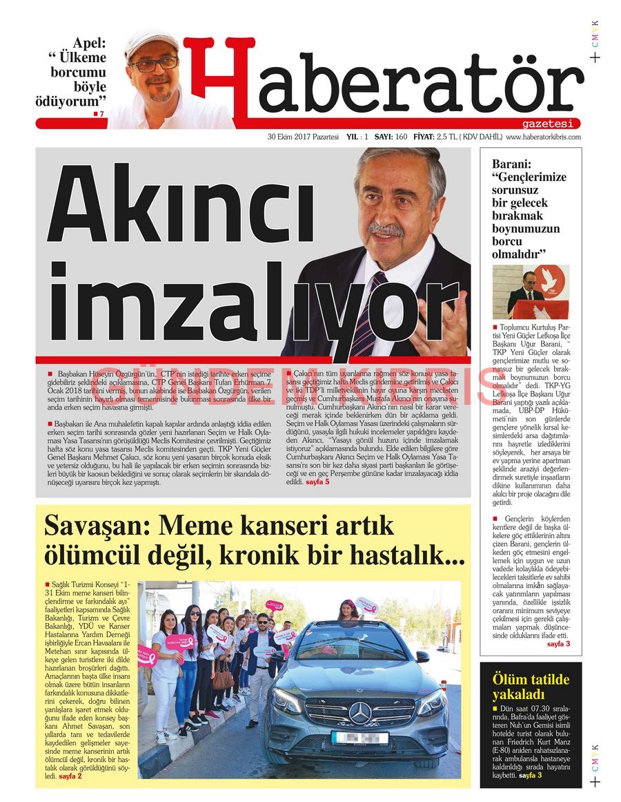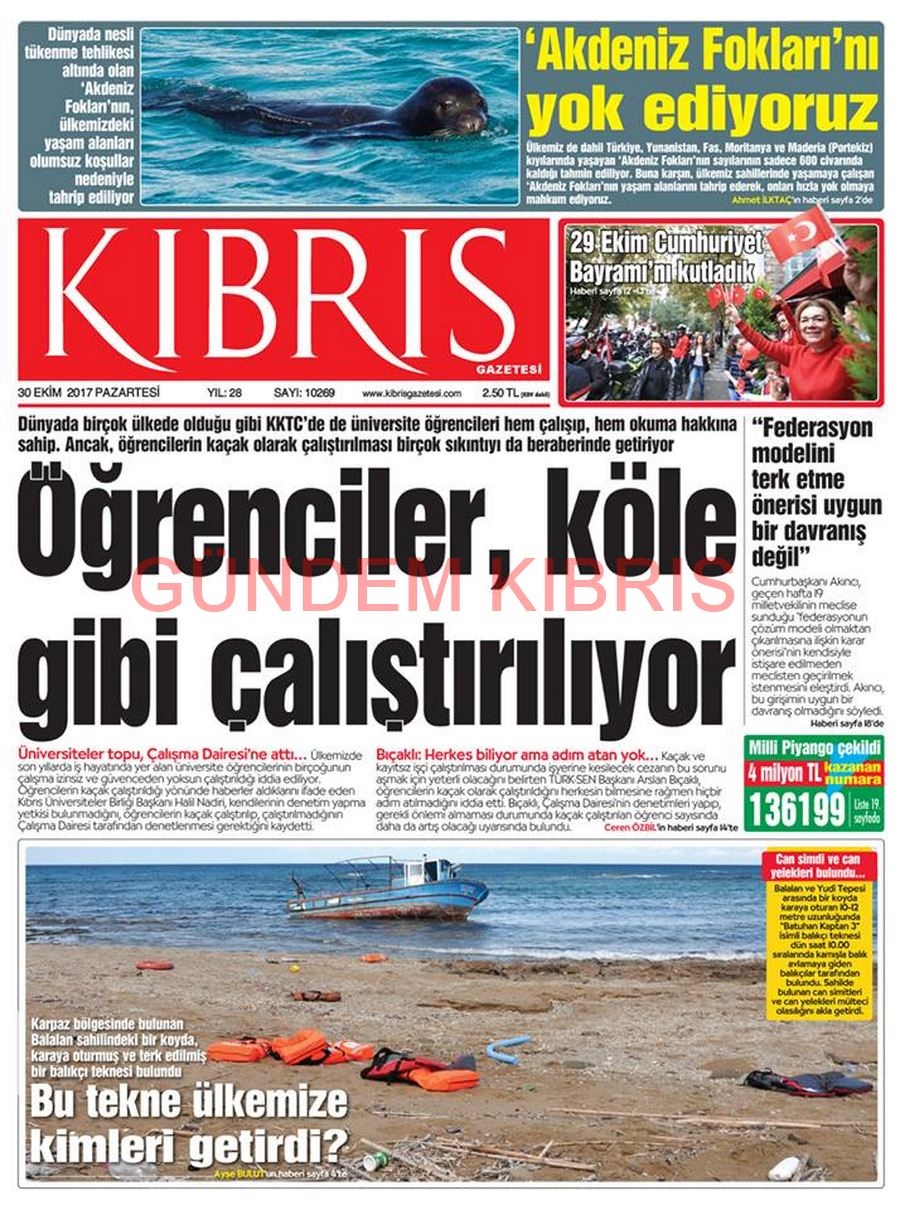 KKTC Gazete Manşetleri 30 Ekim 2017