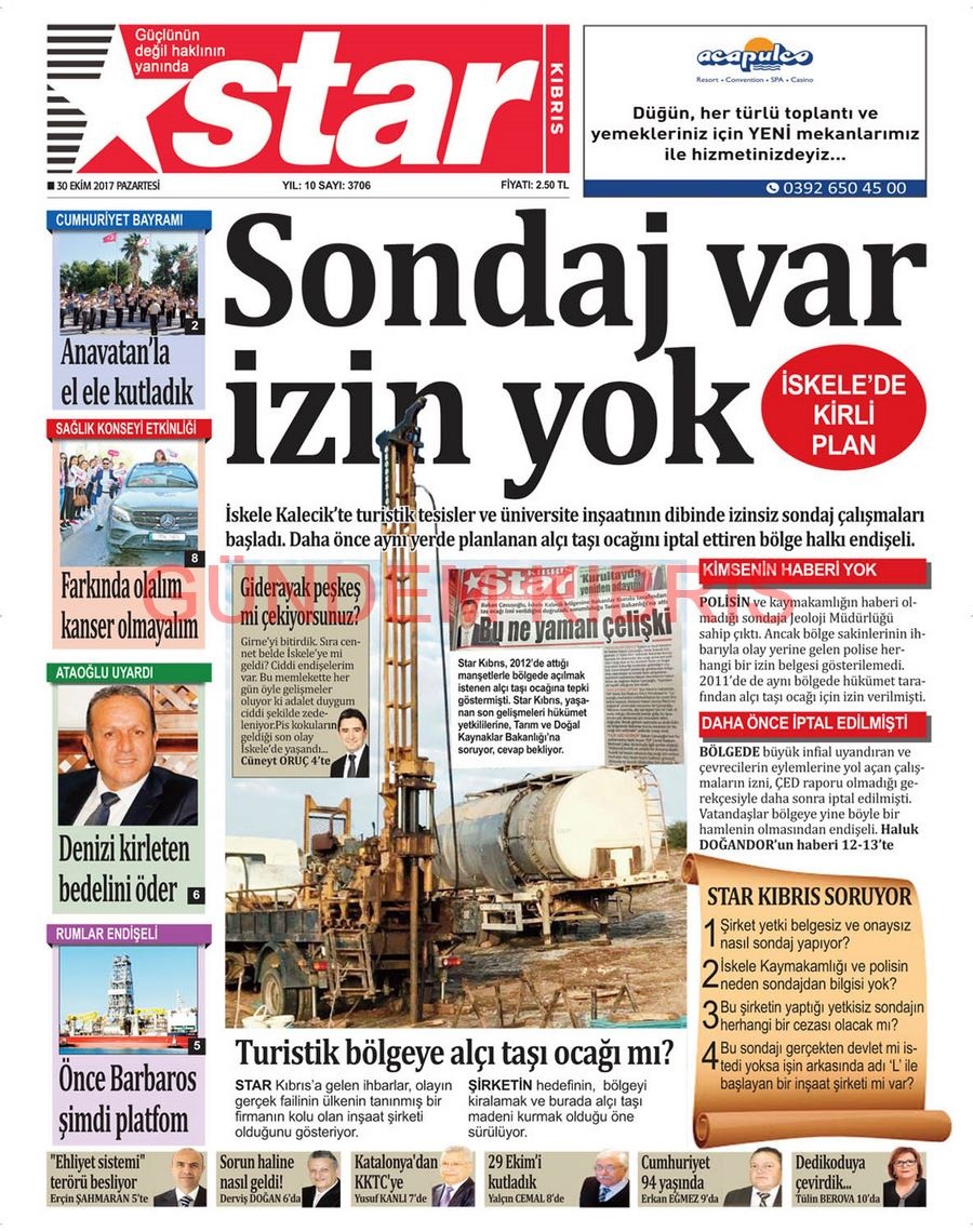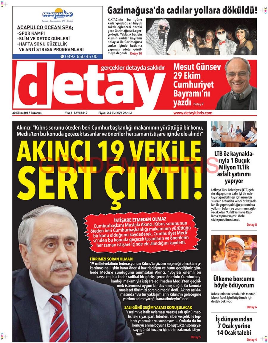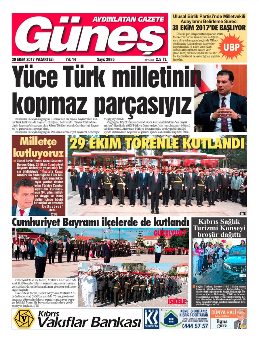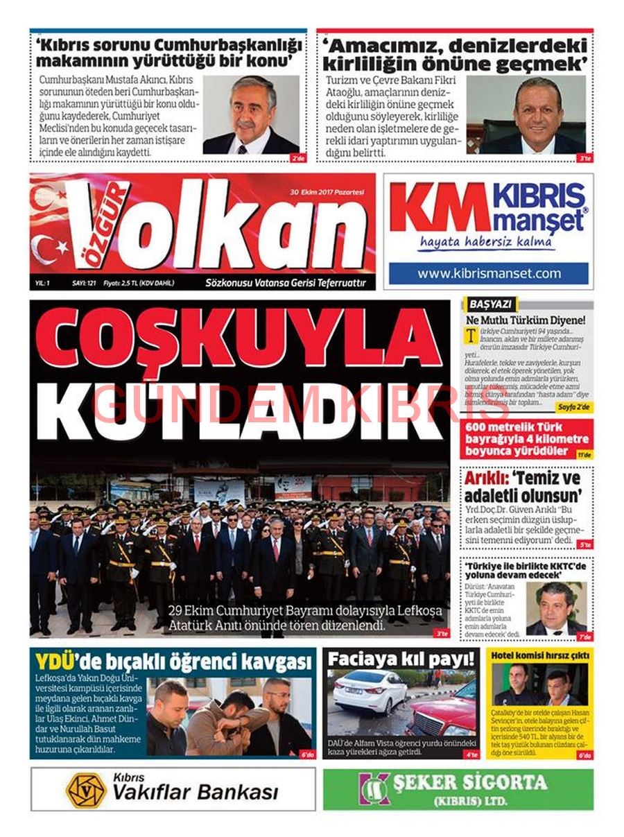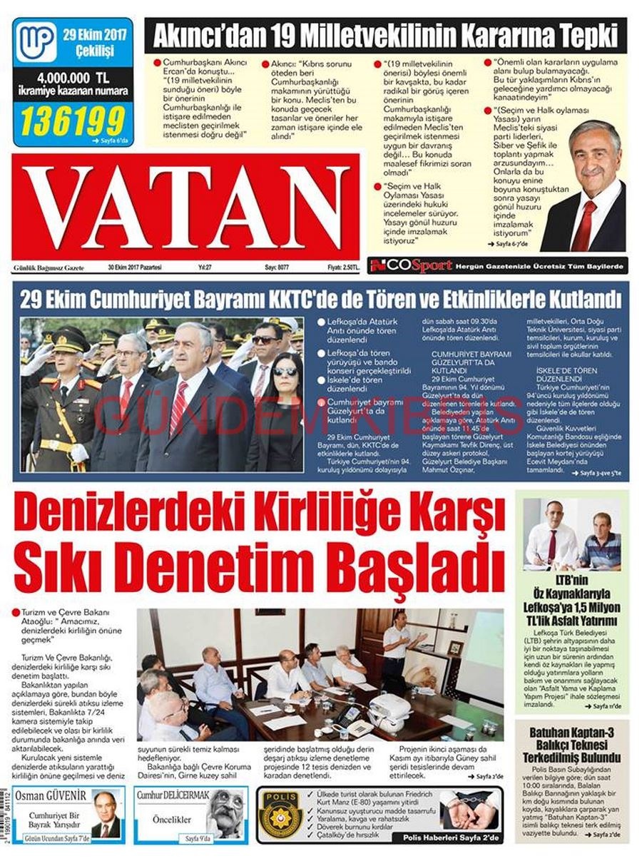 KKTC Gazete Manşetleri 30 Ekim 2017