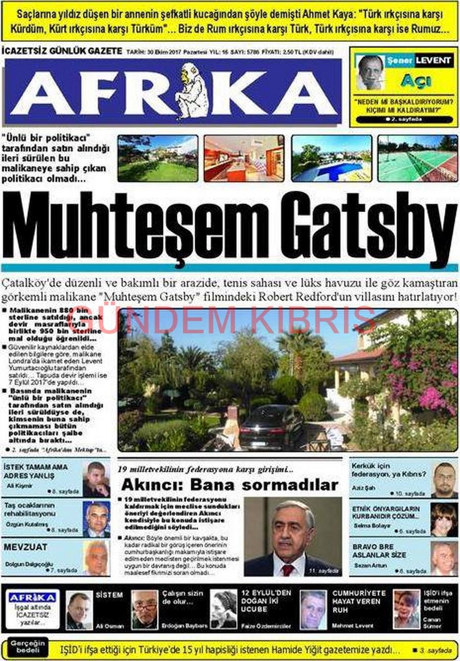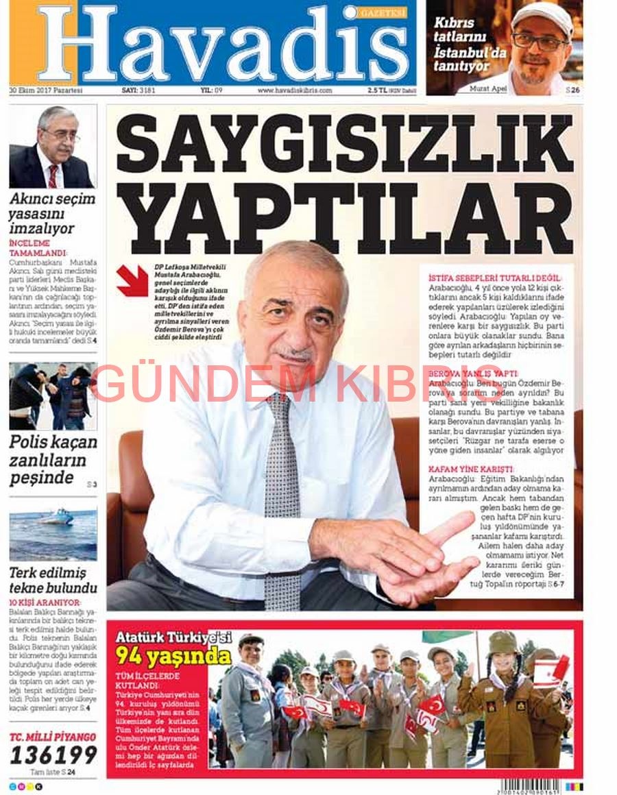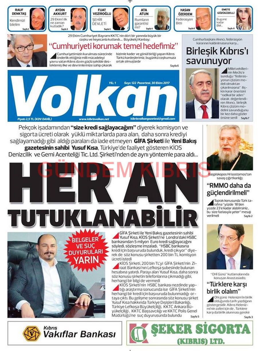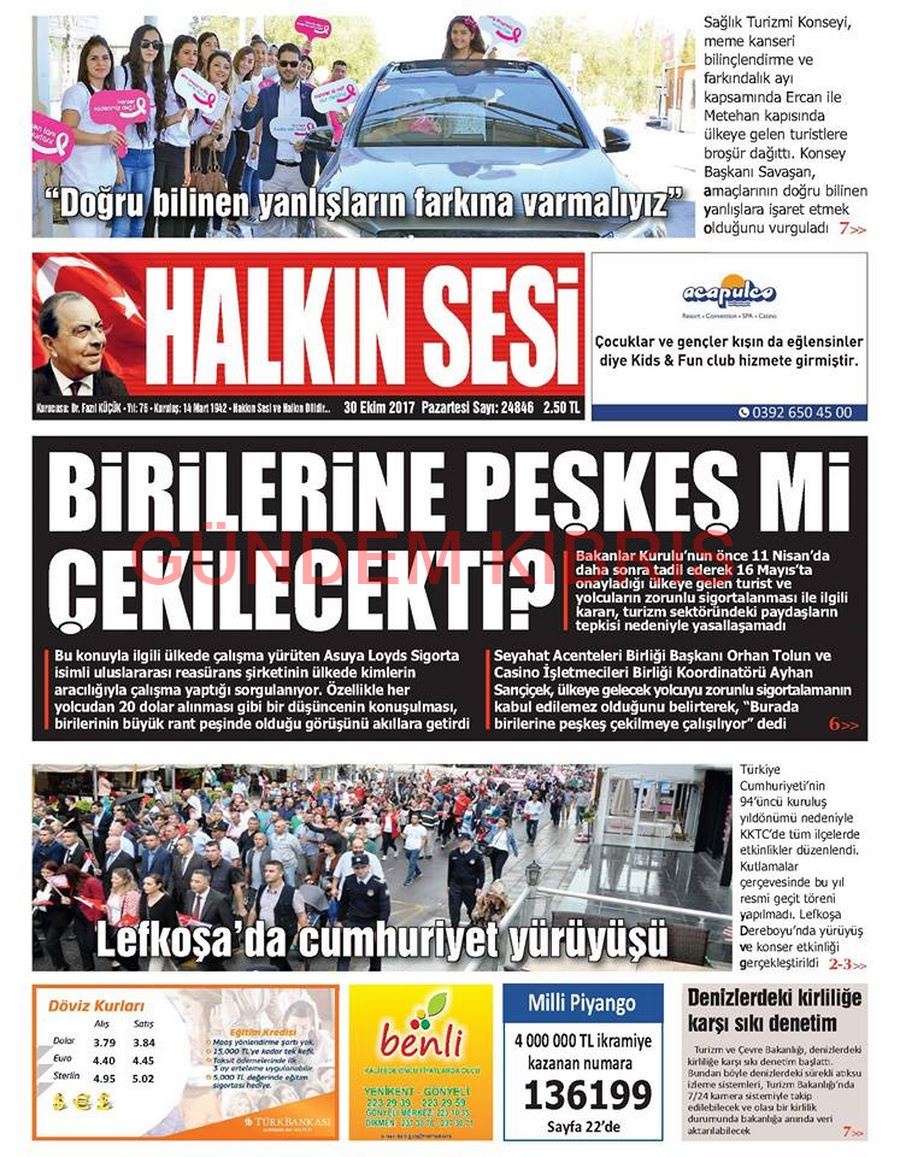 KKTC Gazete Manşetleri 30 Ekim 2017