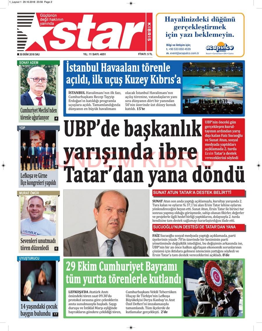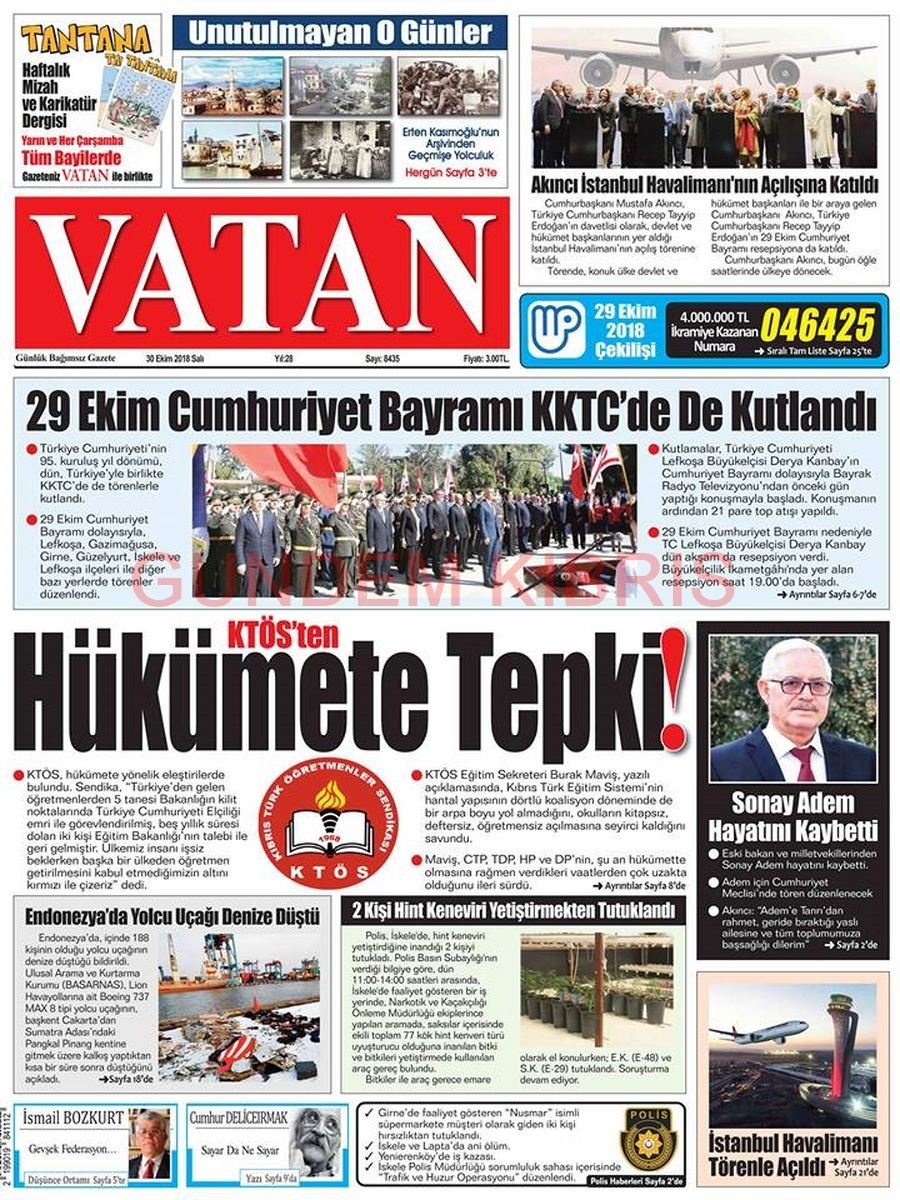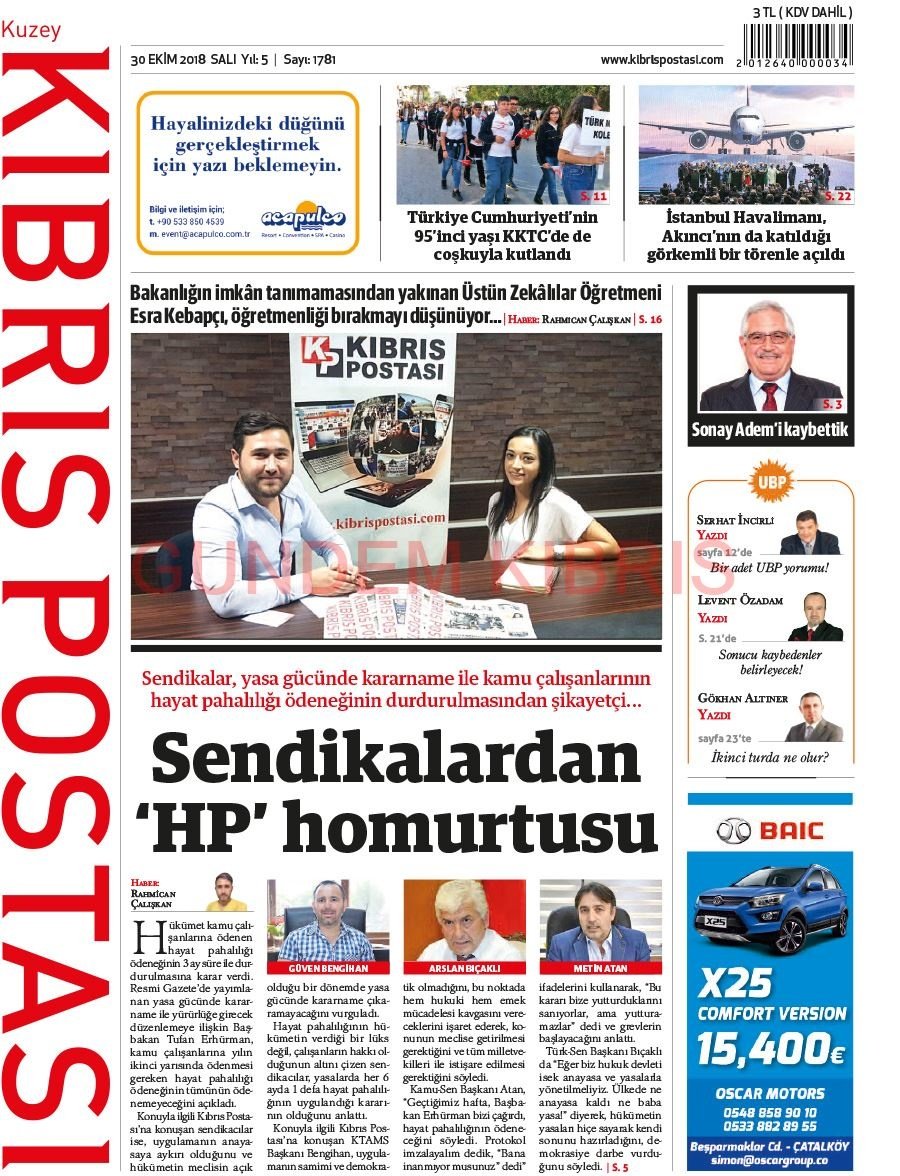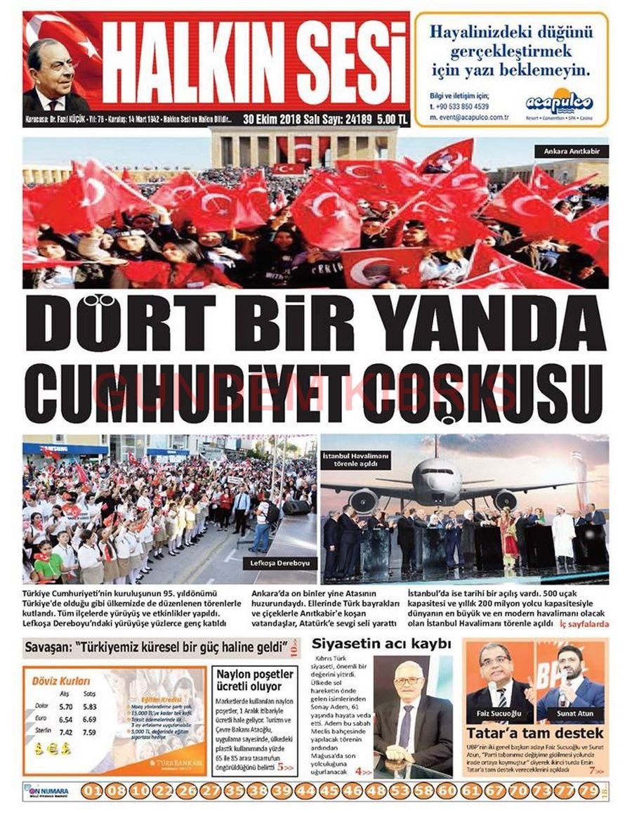 KKTC Gazete Manşetleri 30 Ekim 2018