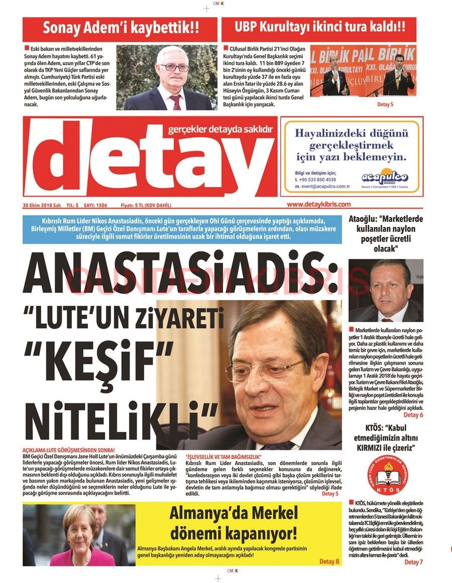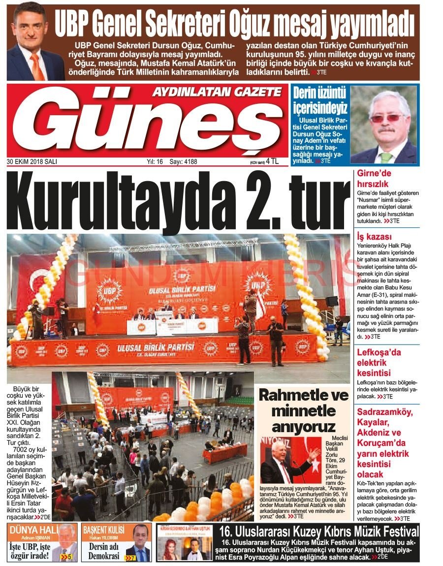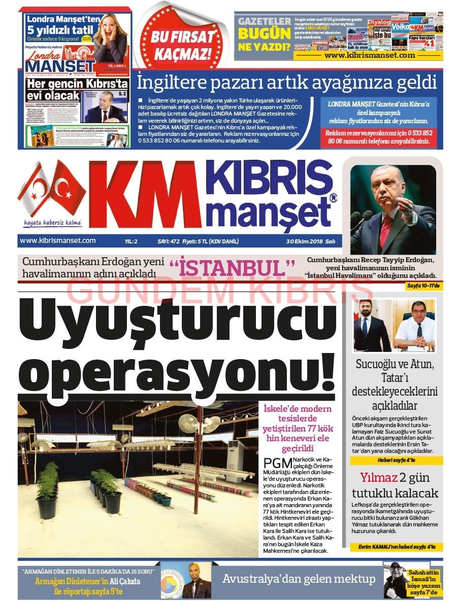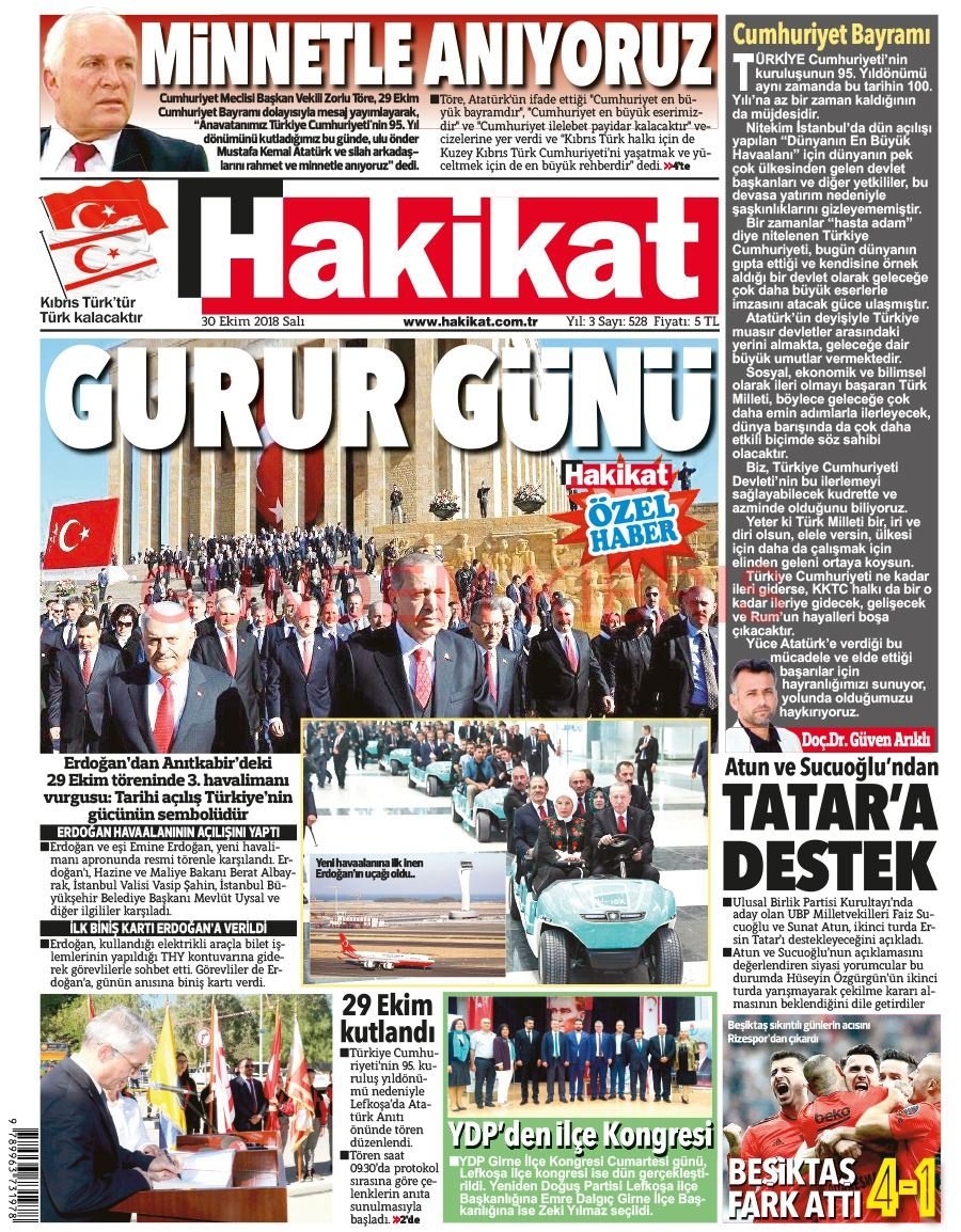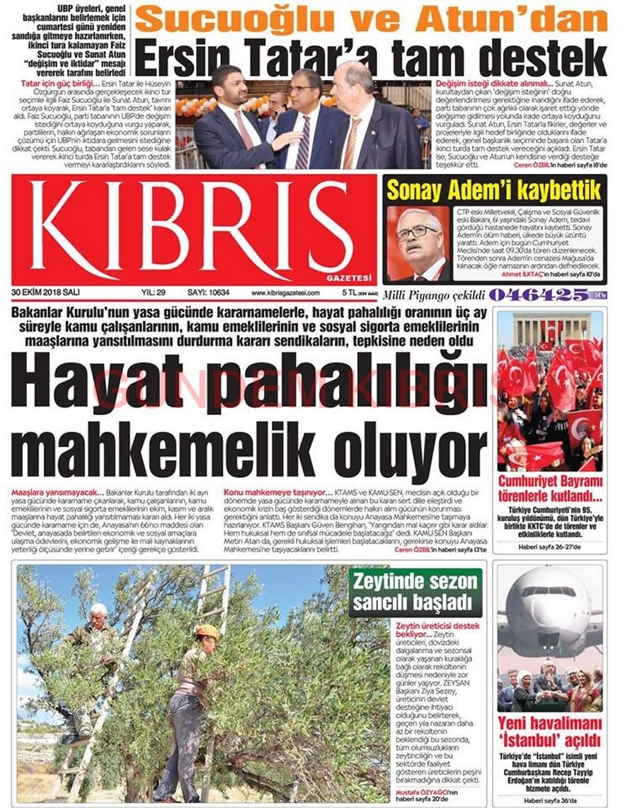 KKTC Gazete Manşetleri 30 Ekim 2018