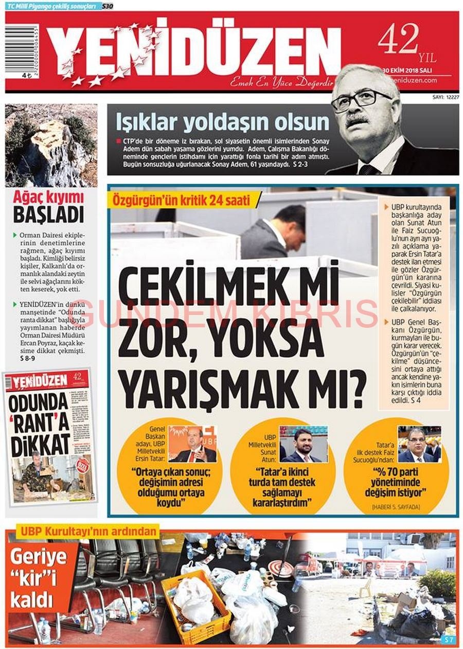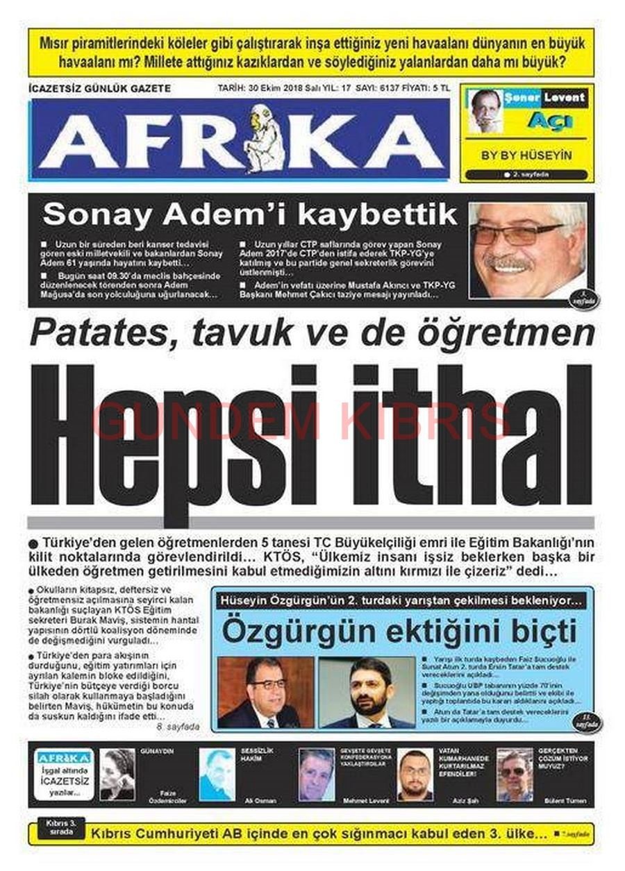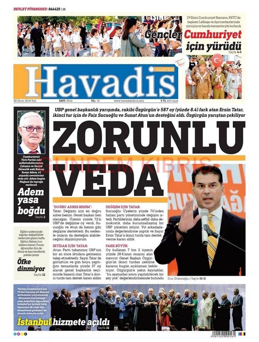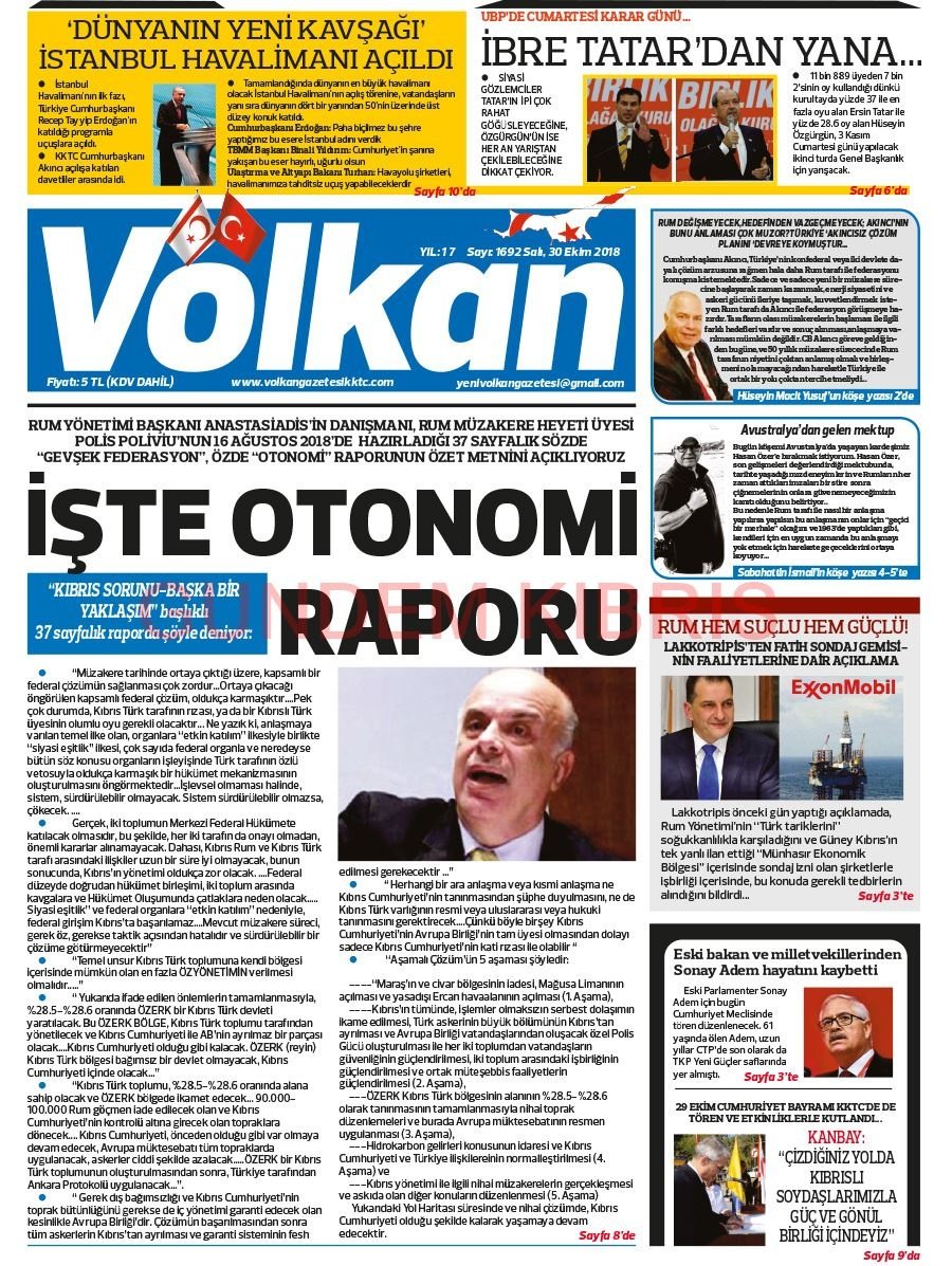 KKTC Gazete Manşetleri 30 Ekim 2018