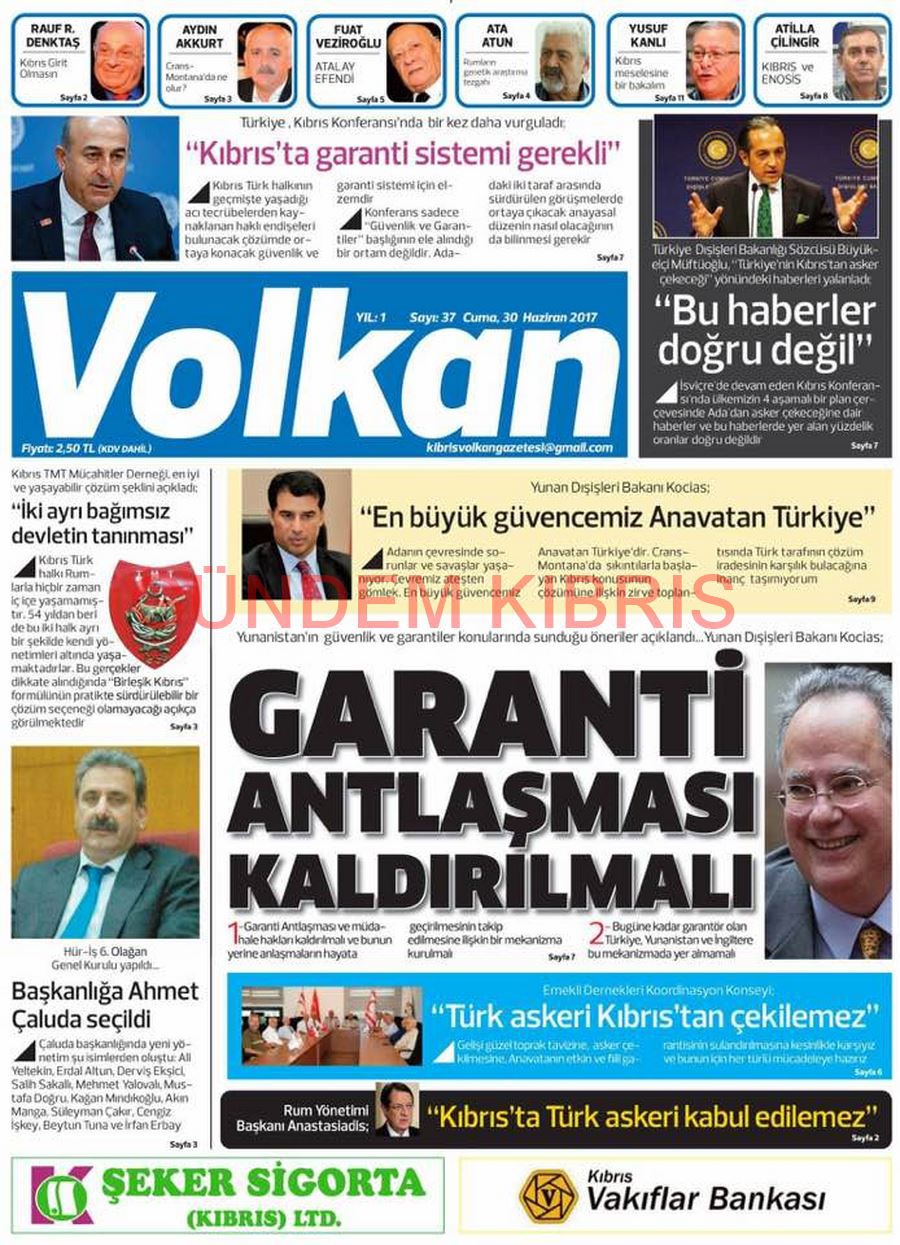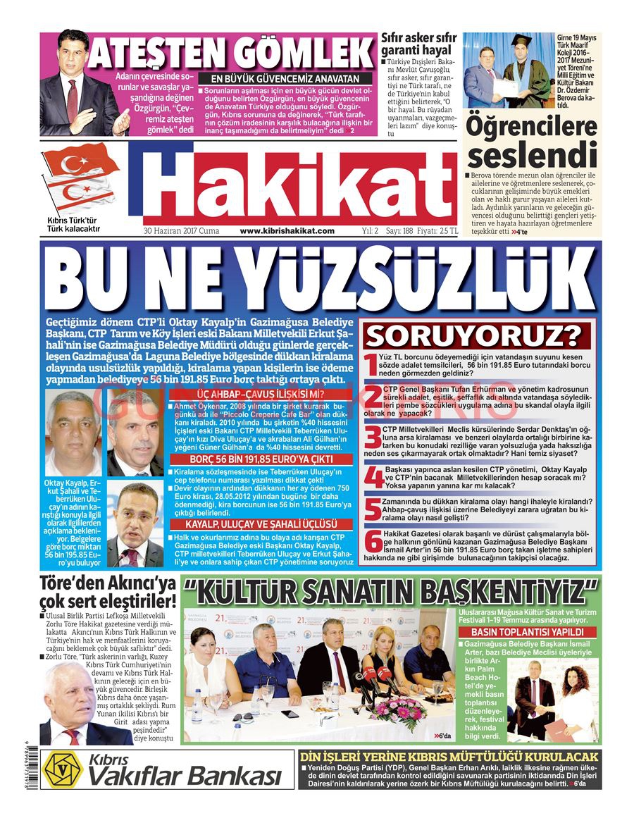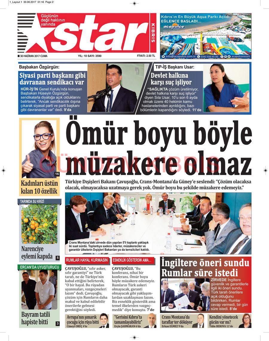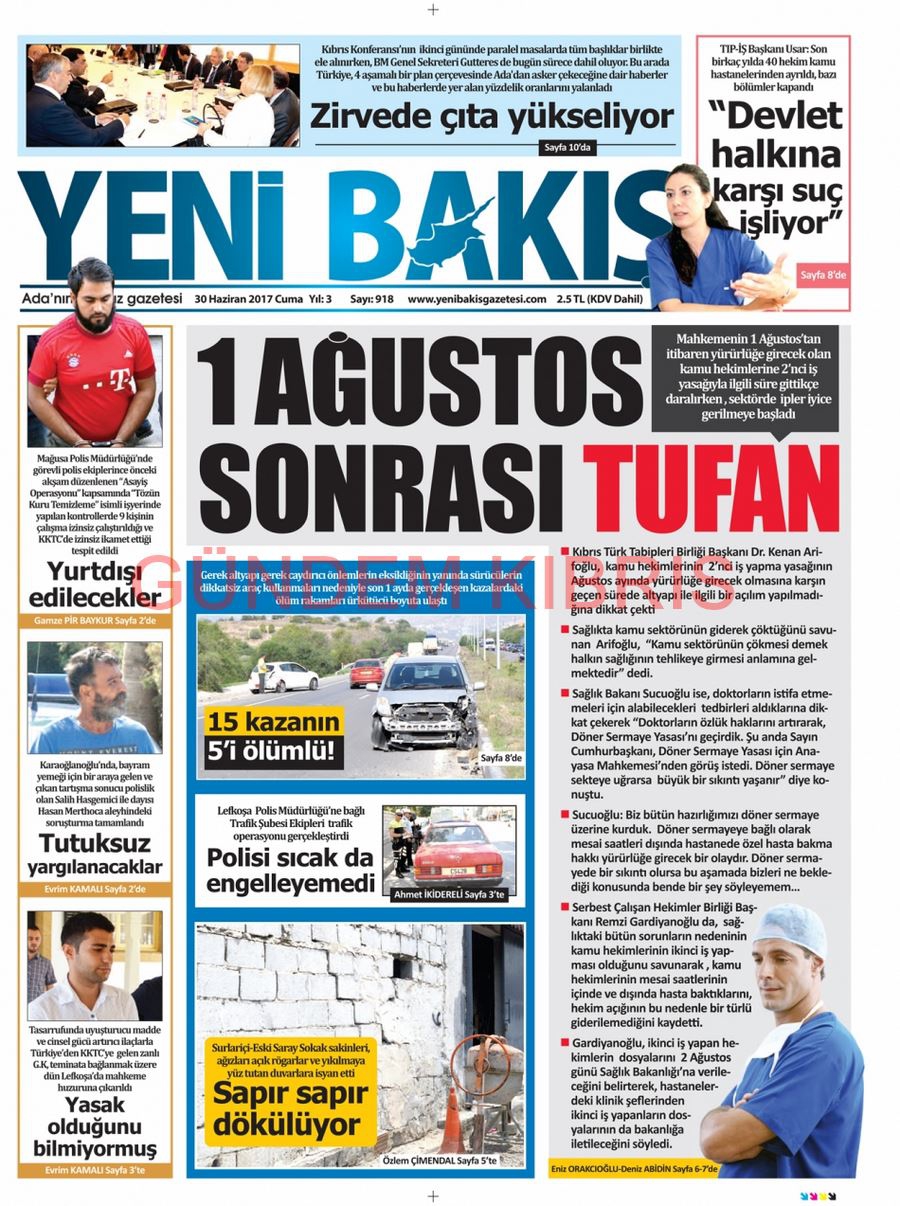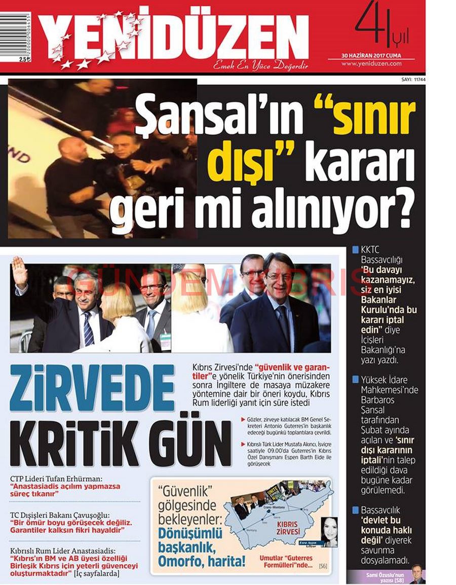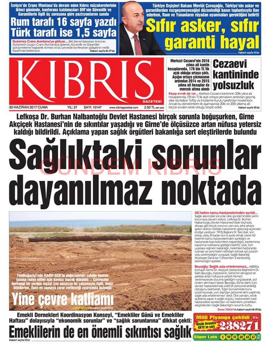 KKTC Gazete Manşetleri 30 Haziran 2017