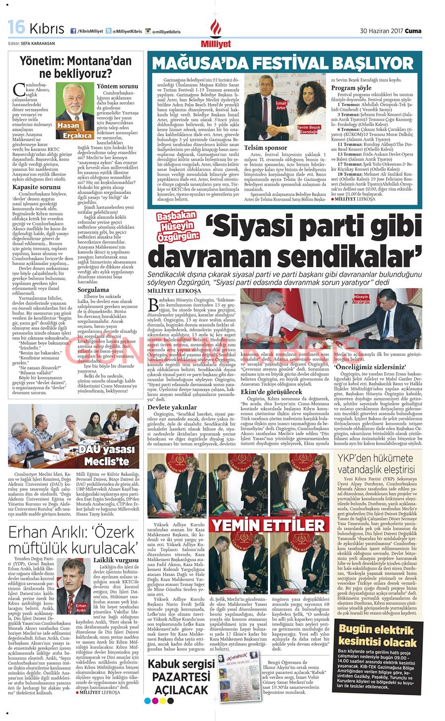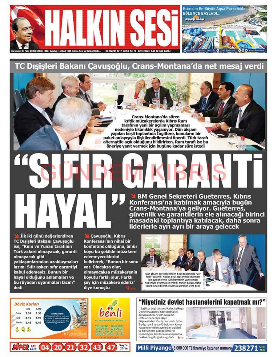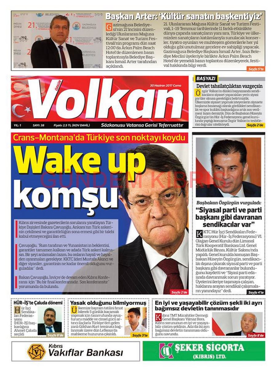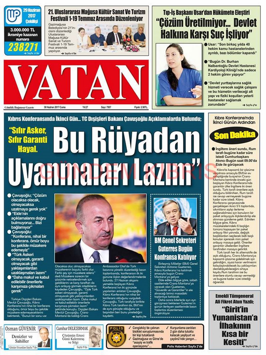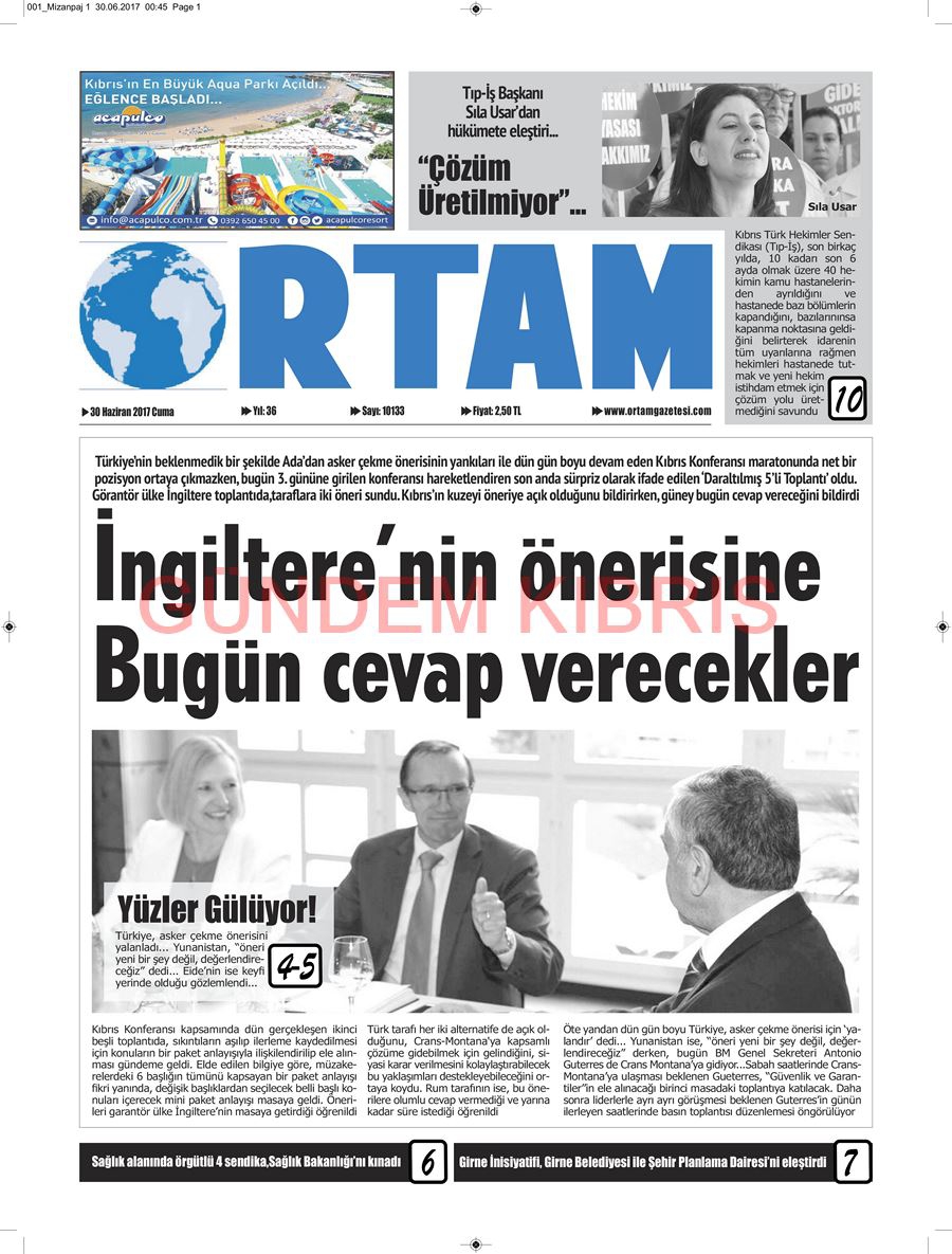 KKTC Gazete Manşetleri 30 Haziran 2017