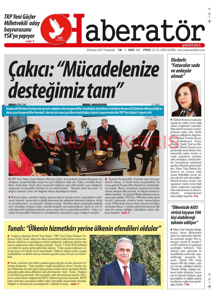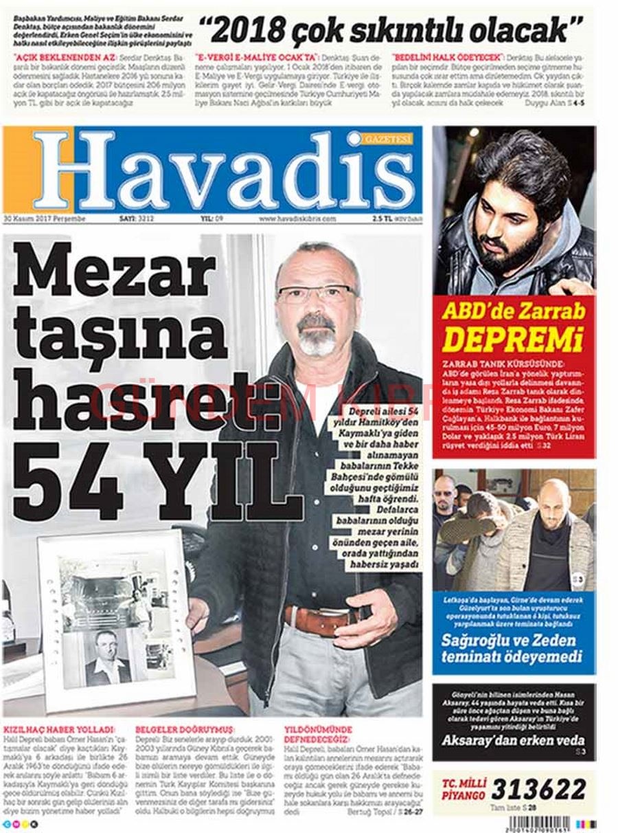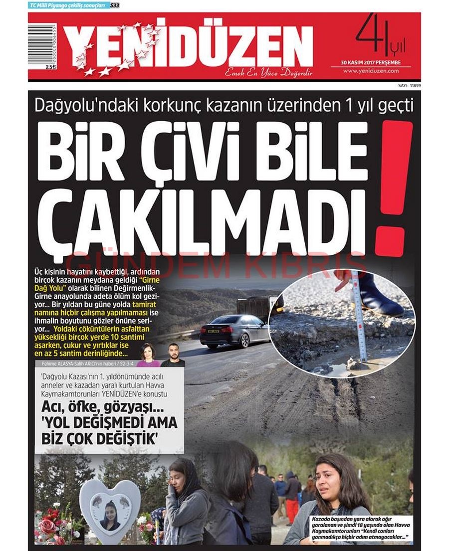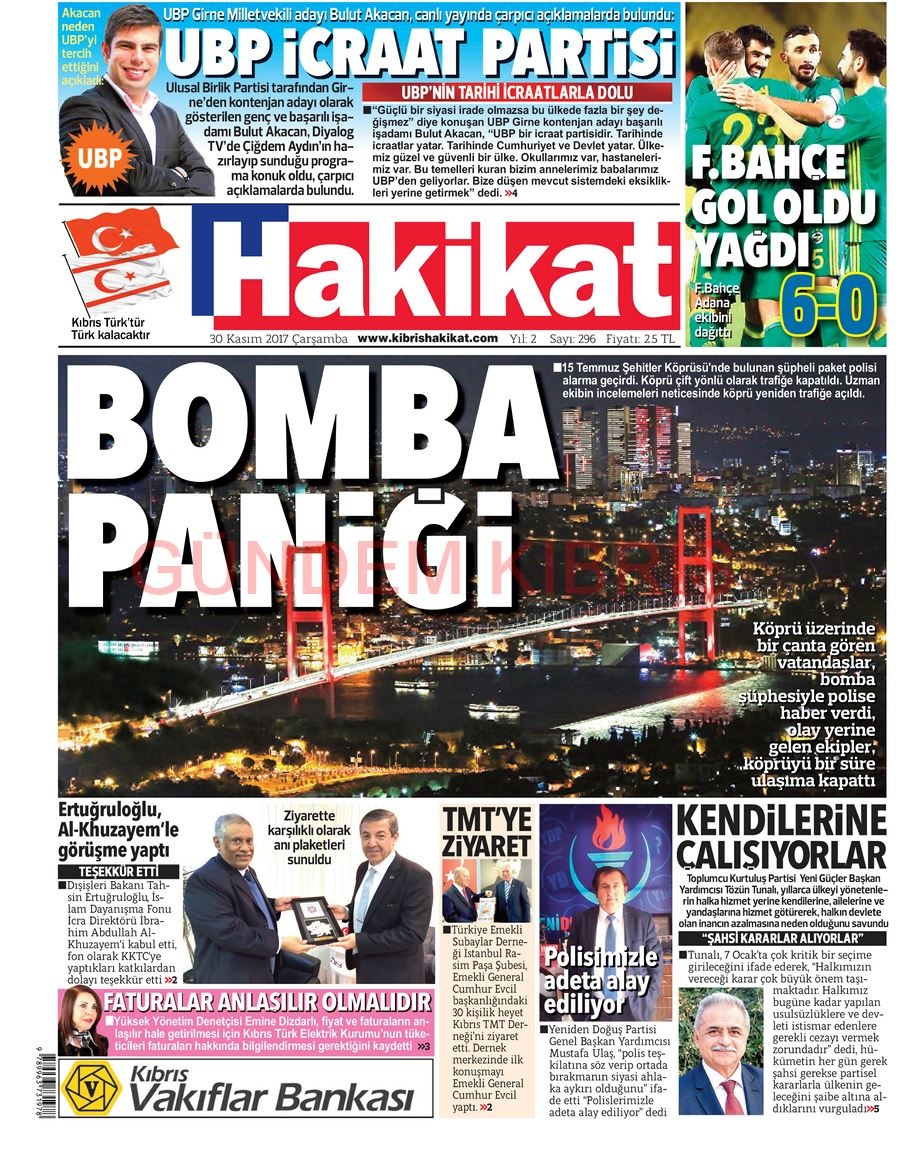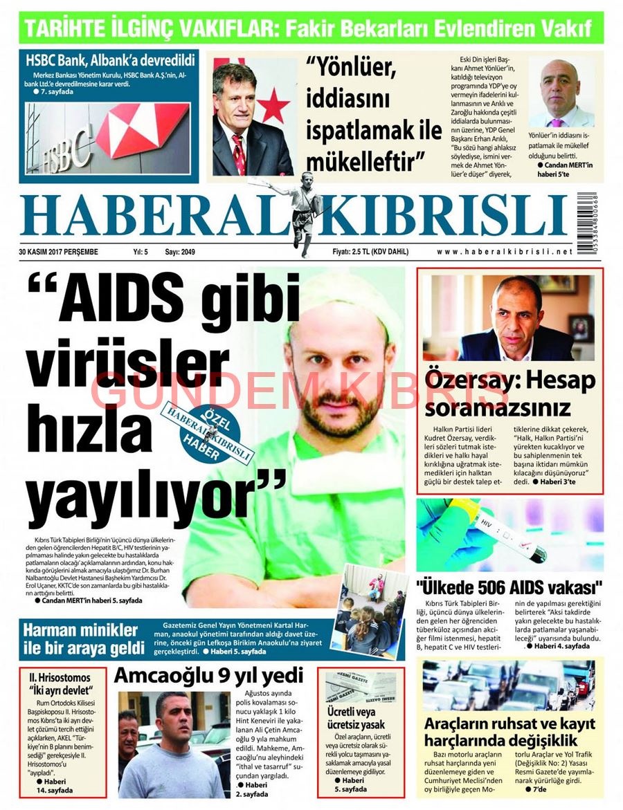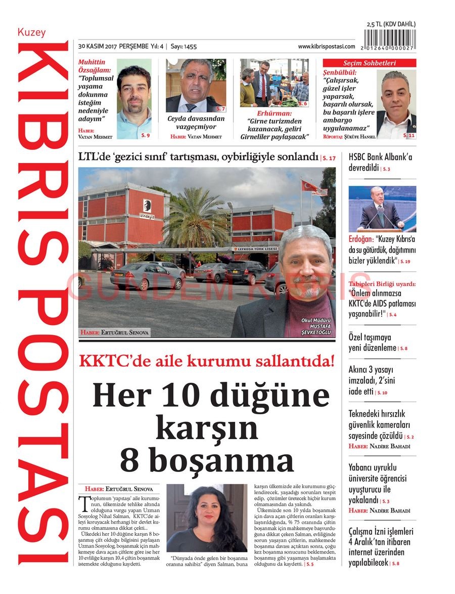KKTC Gazete Manşetleri 30 Kasım 2017