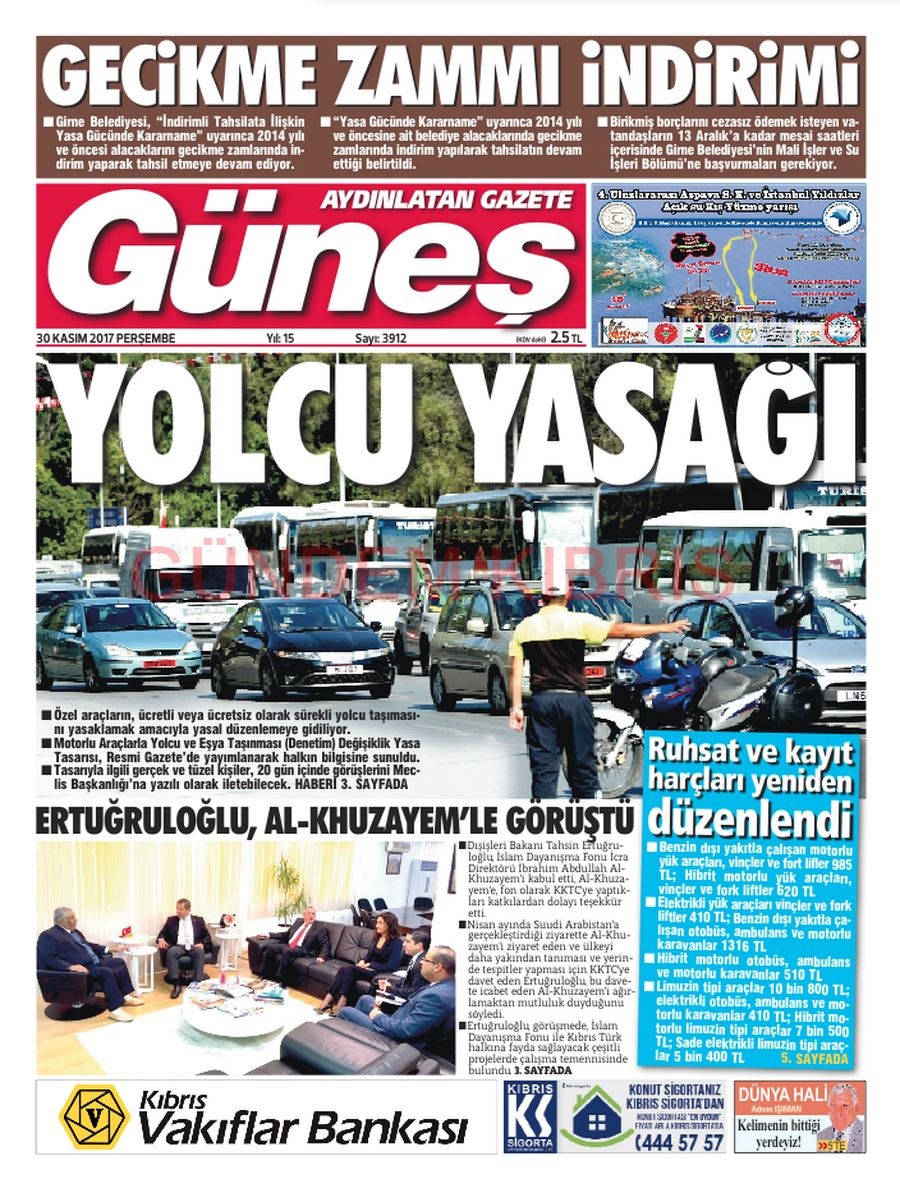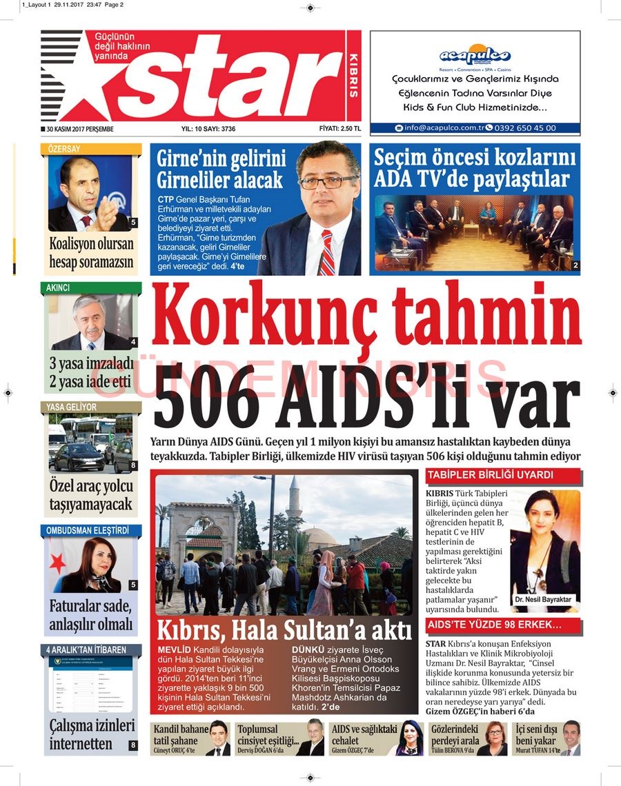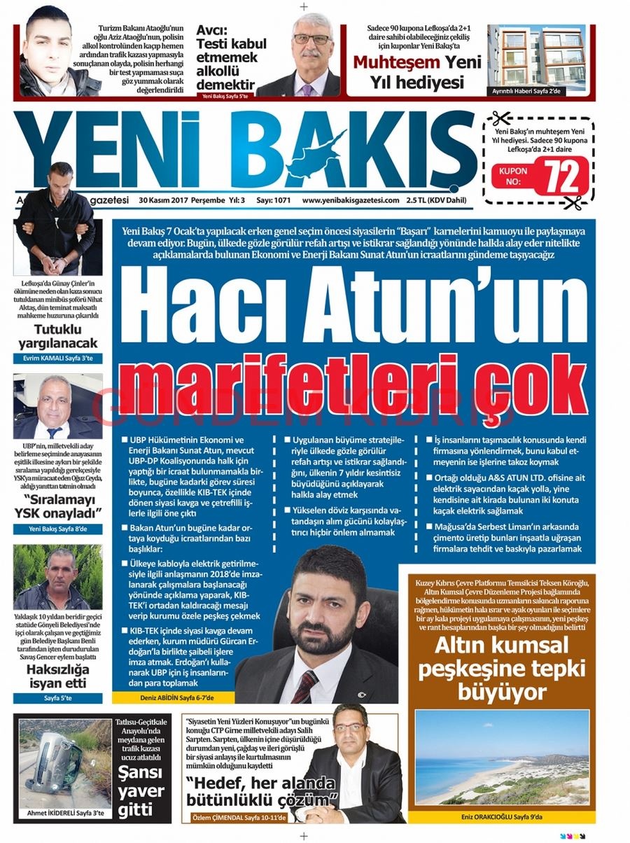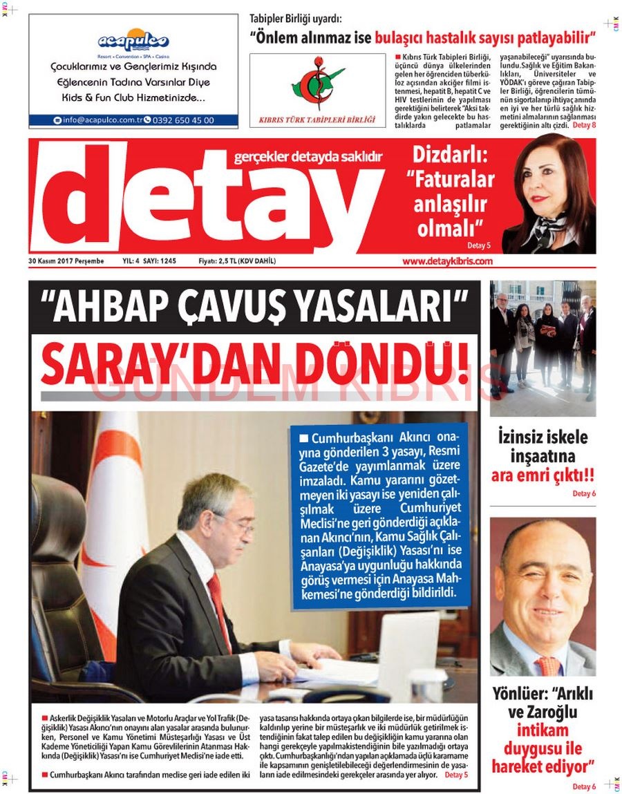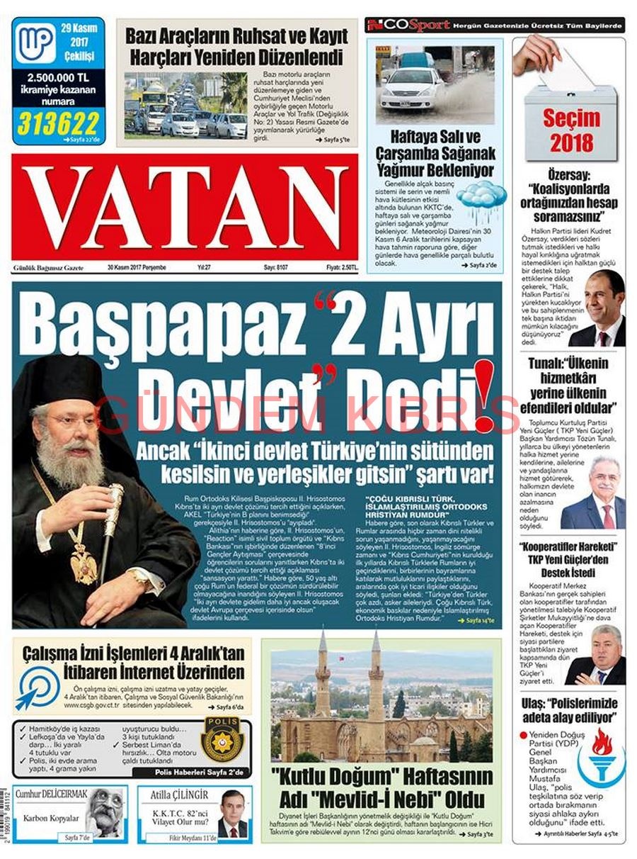 KKTC Gazete Manşetleri 30 Kasım 2017