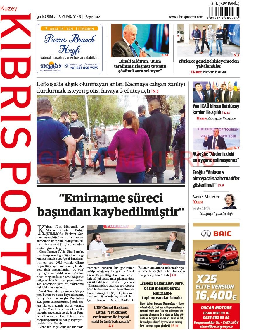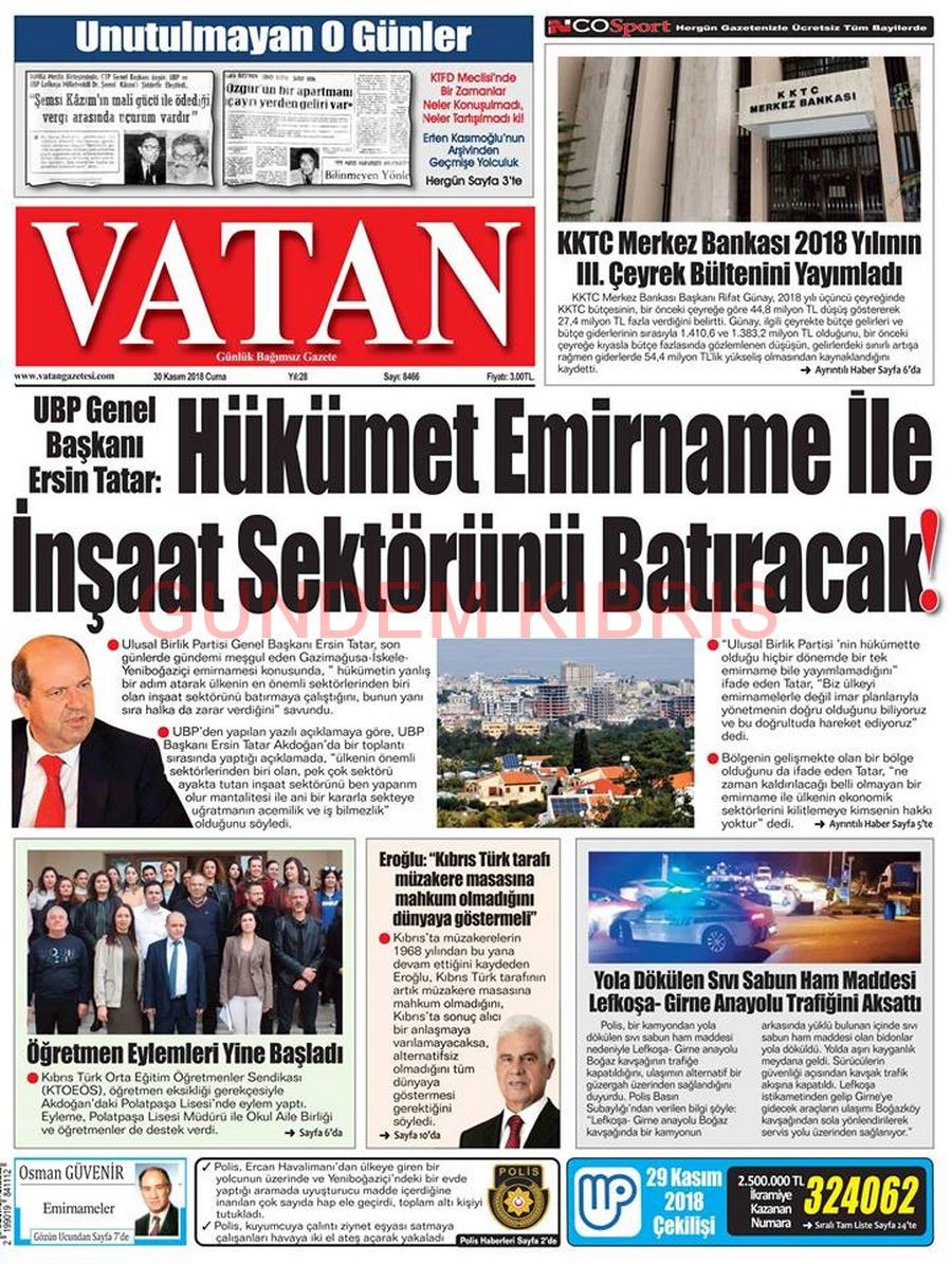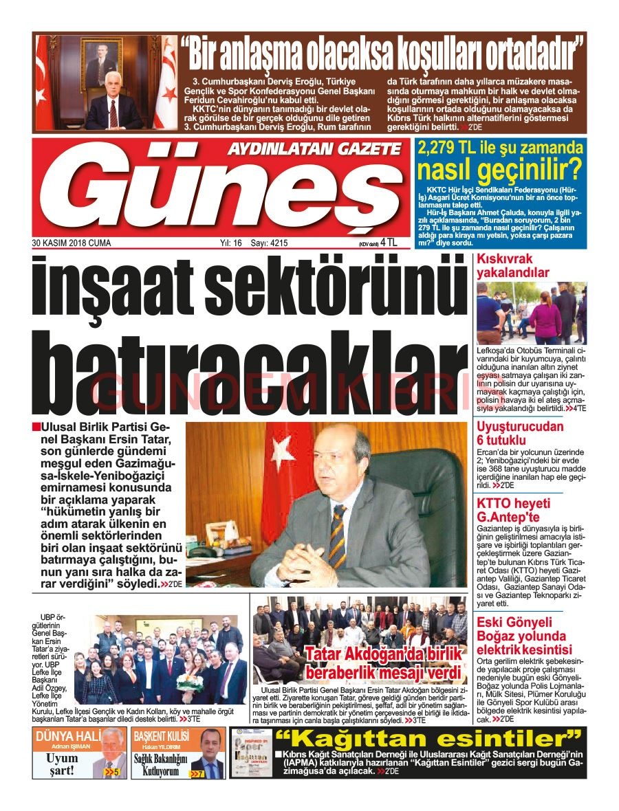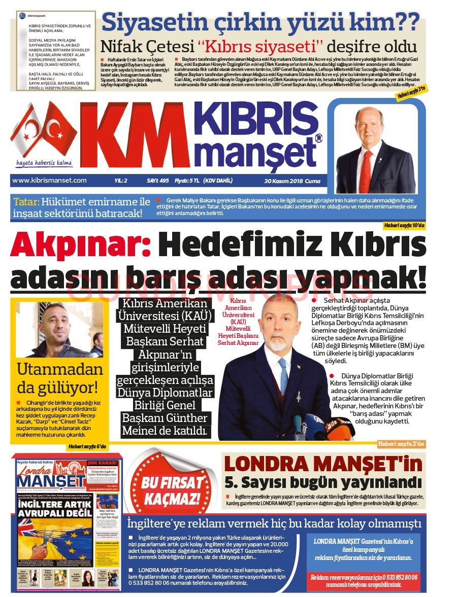KKTC Gazete Manşetleri 30 Kasım 2018