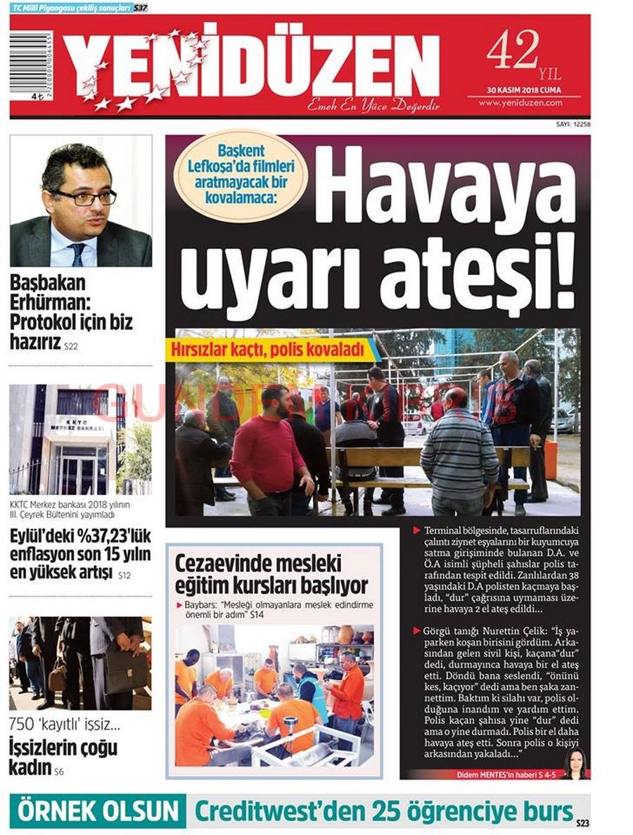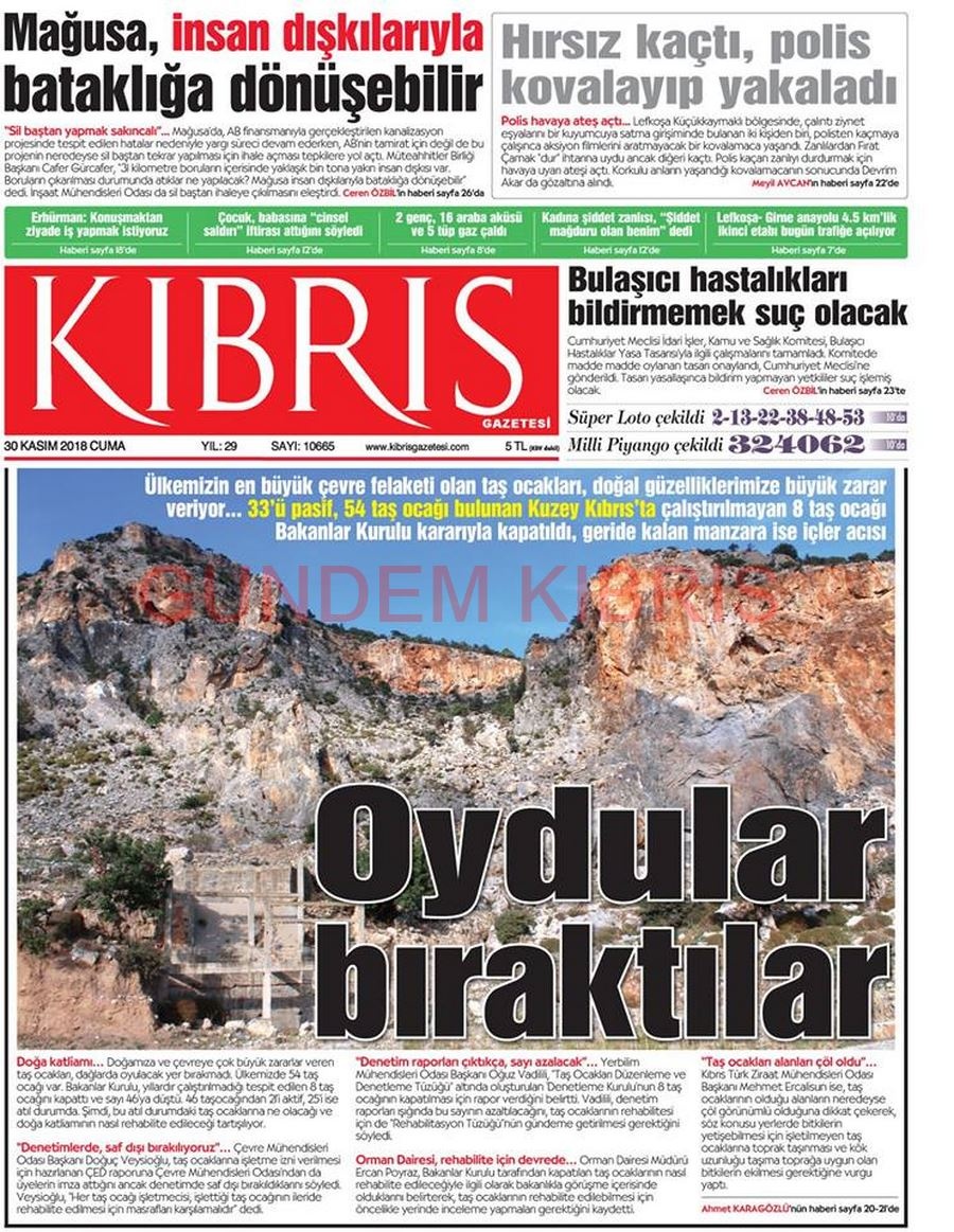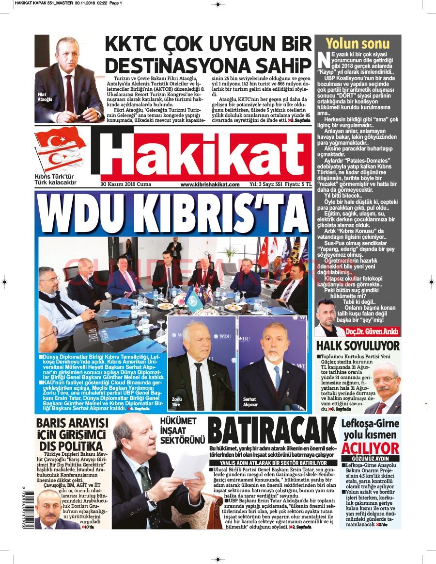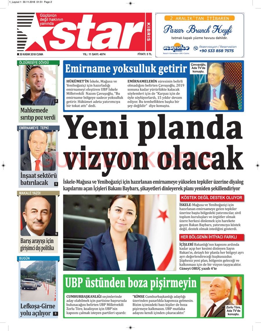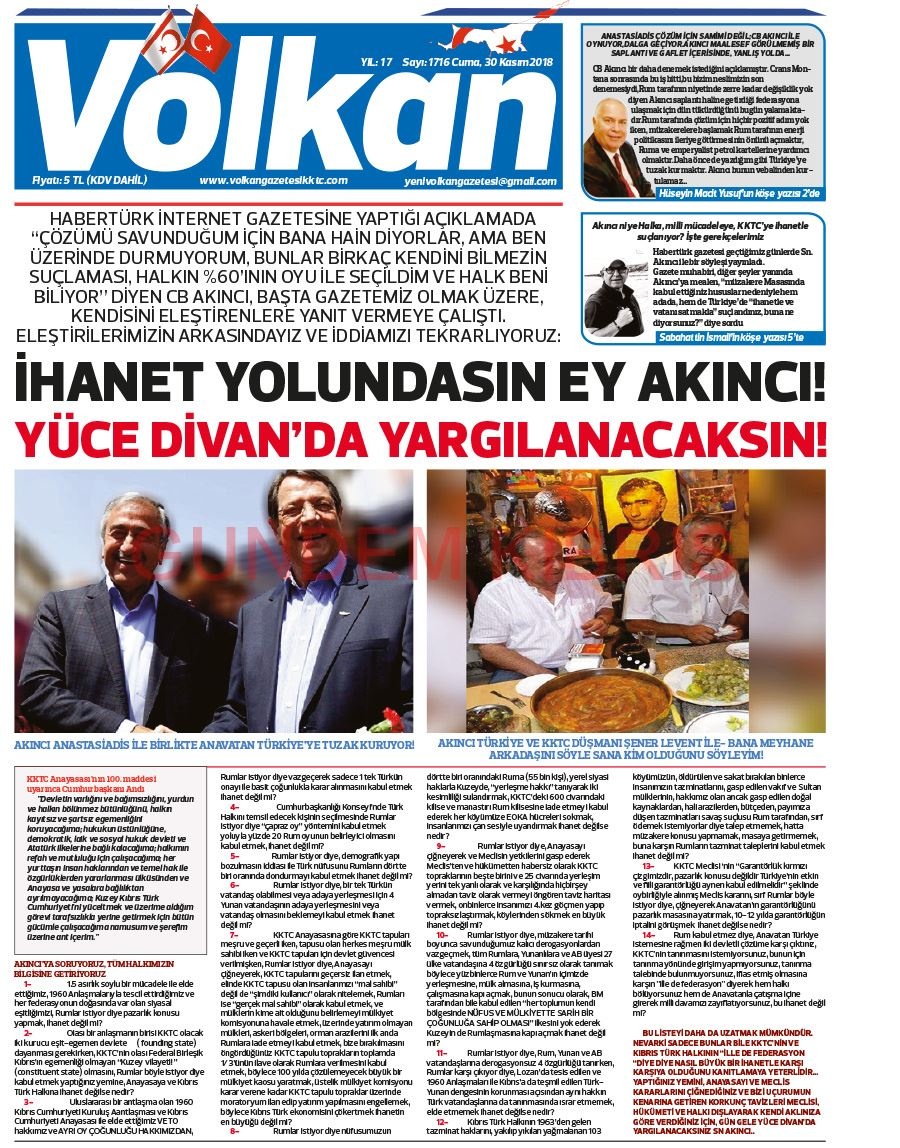 KKTC Gazete Manşetleri 30 Kasım 2018