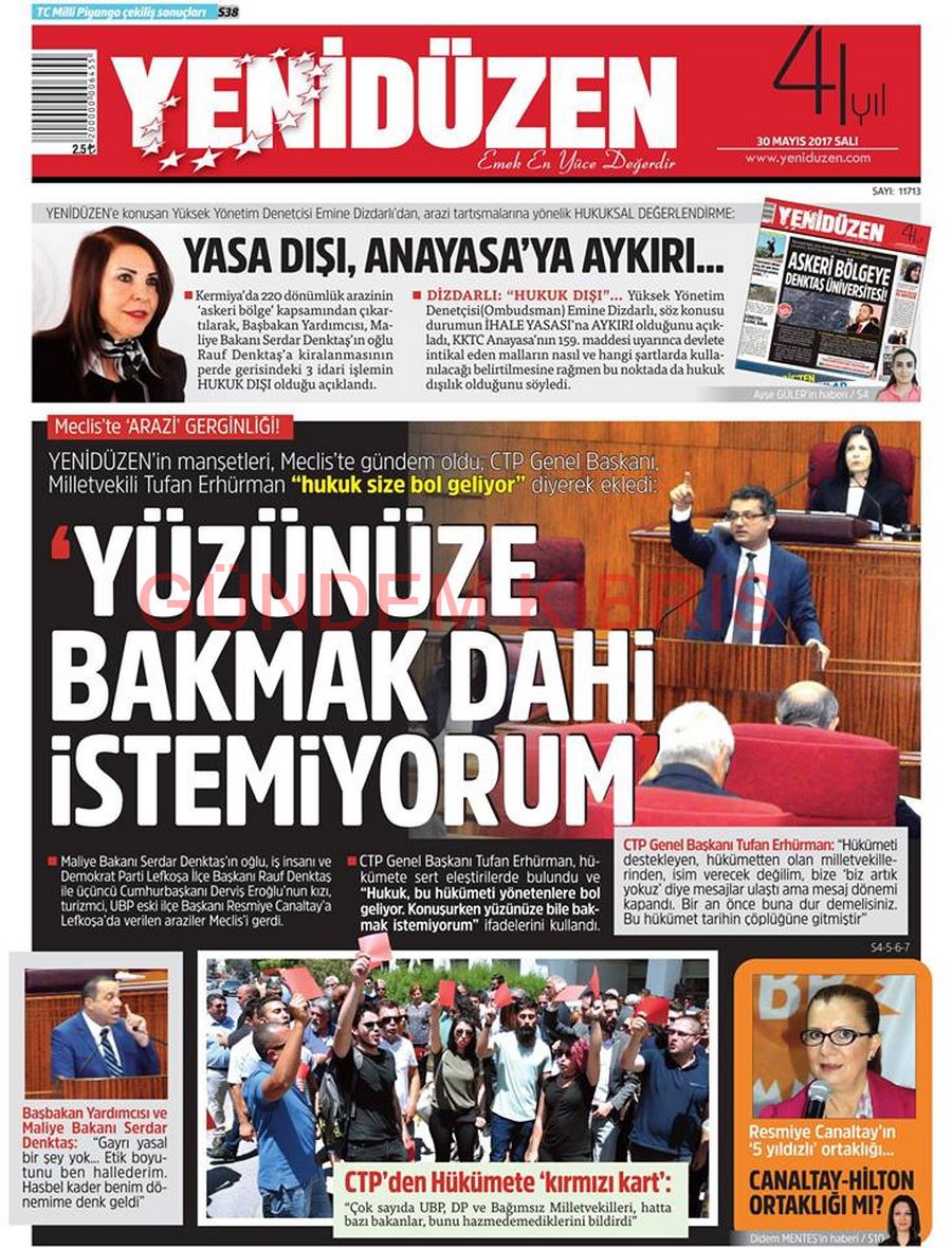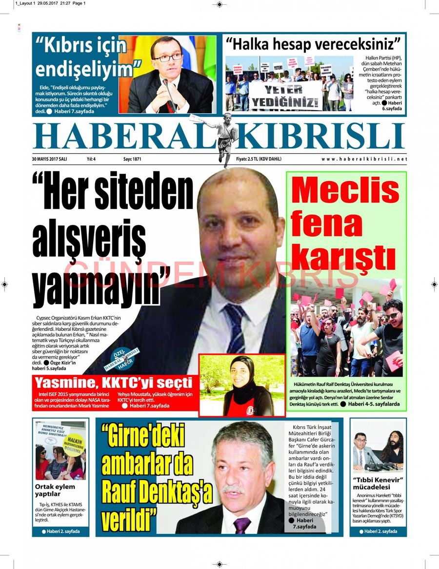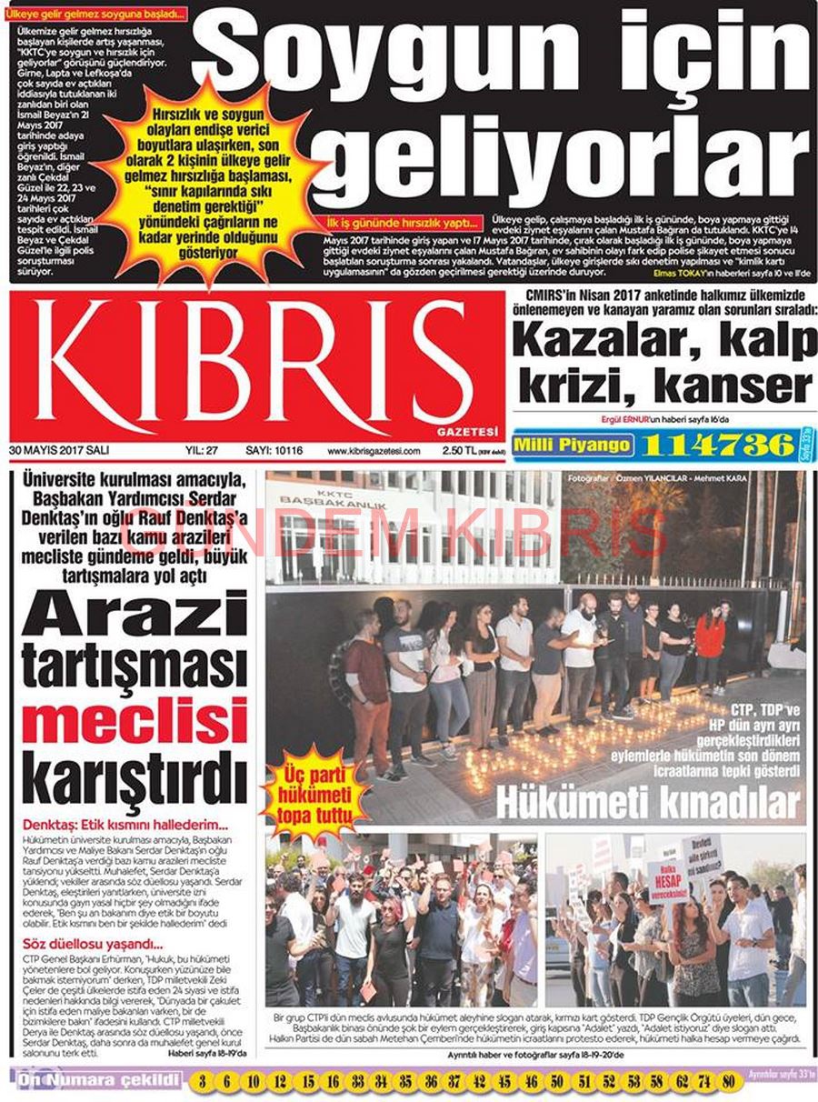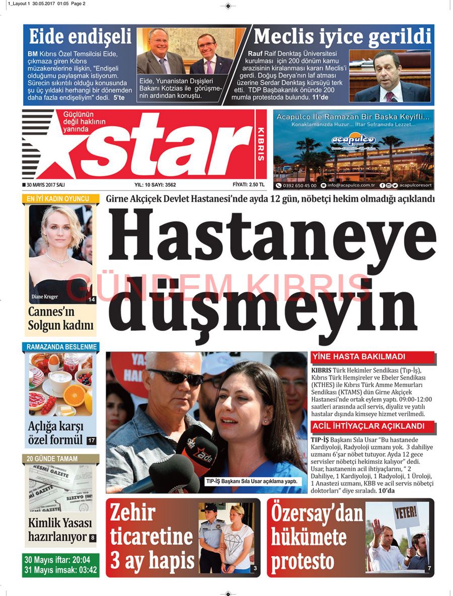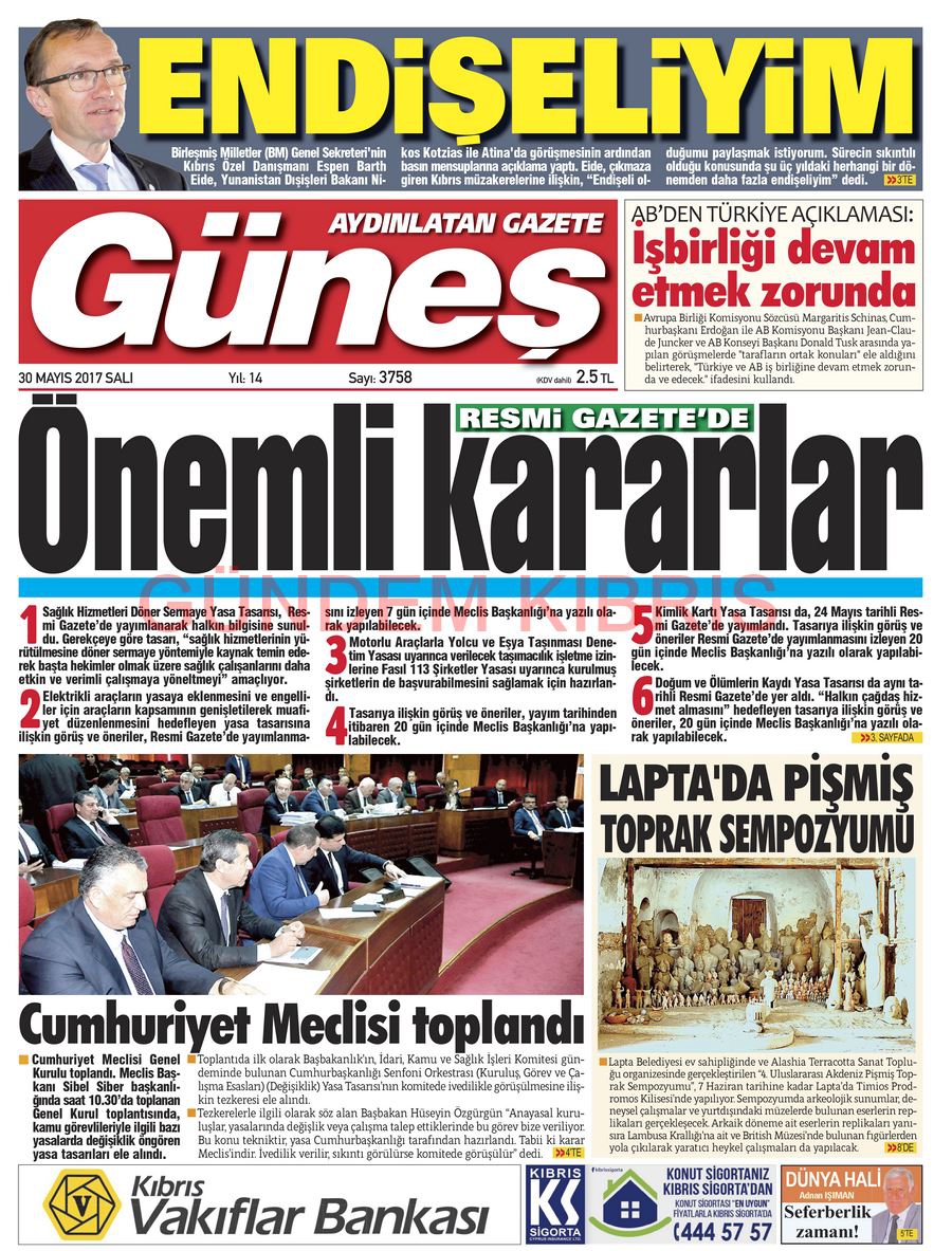 KKTC Gazete Manşetleri 30 Mayıs 2017
