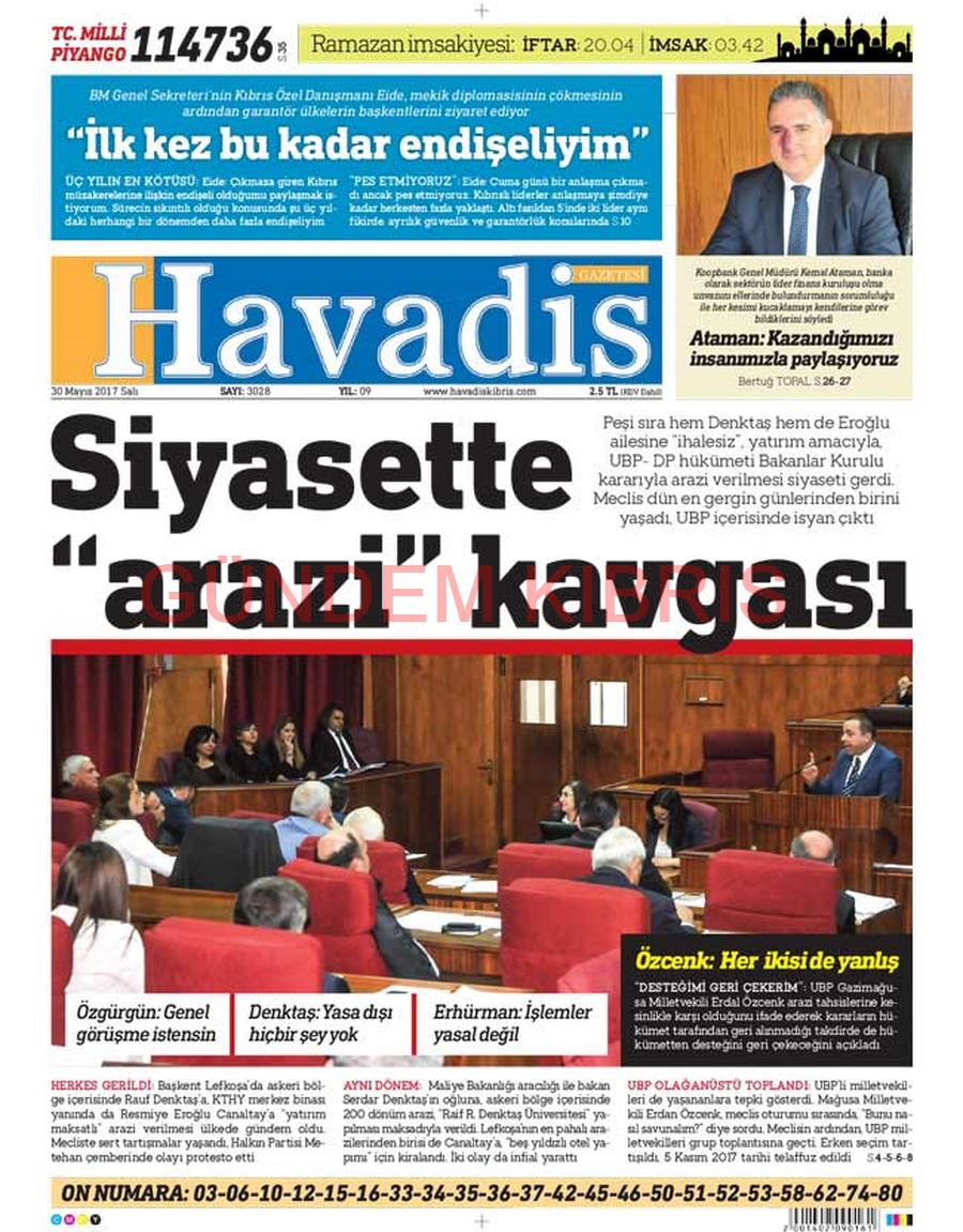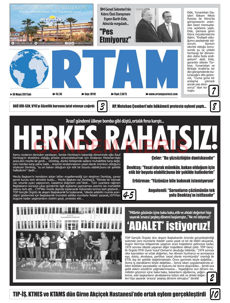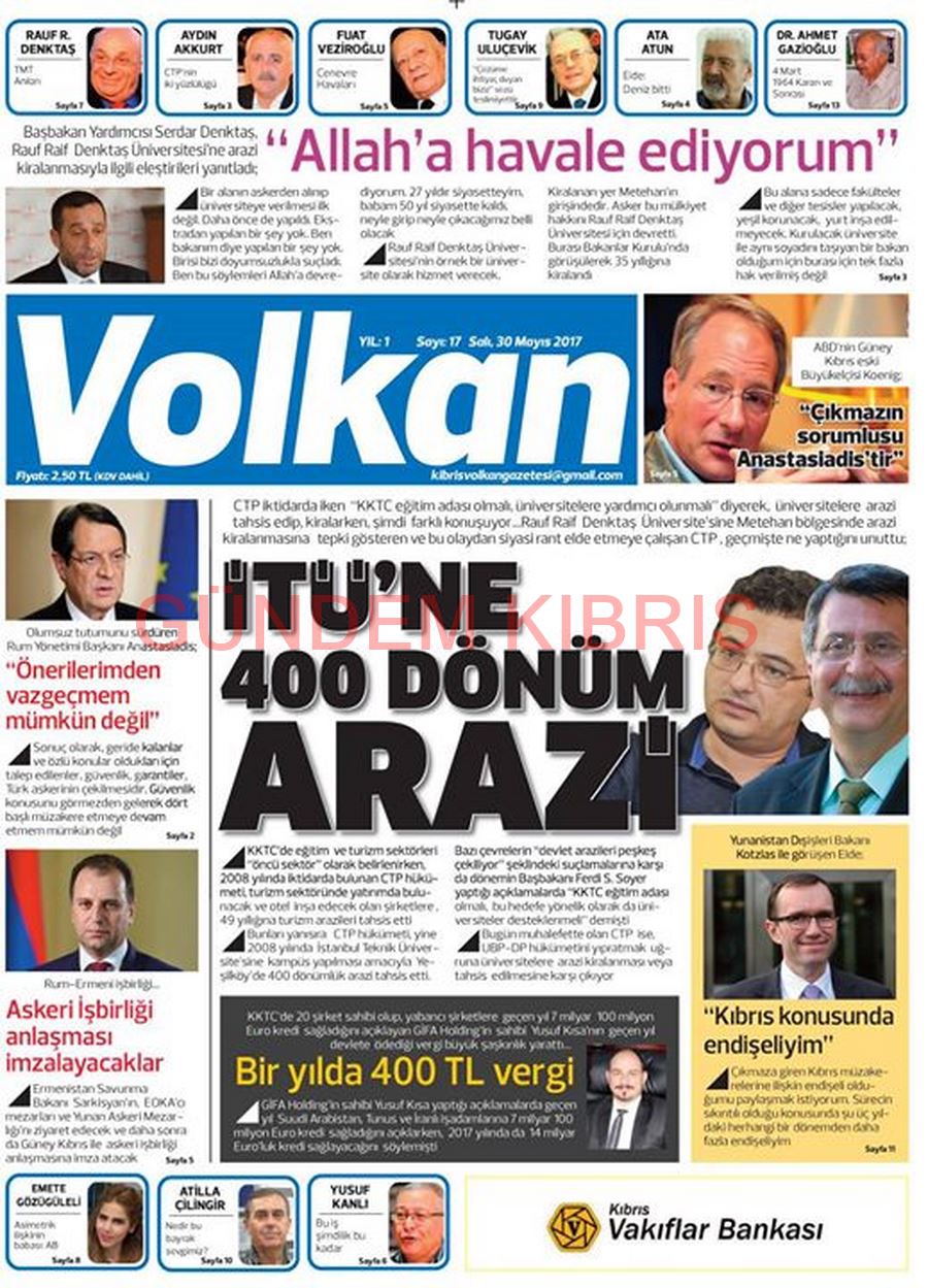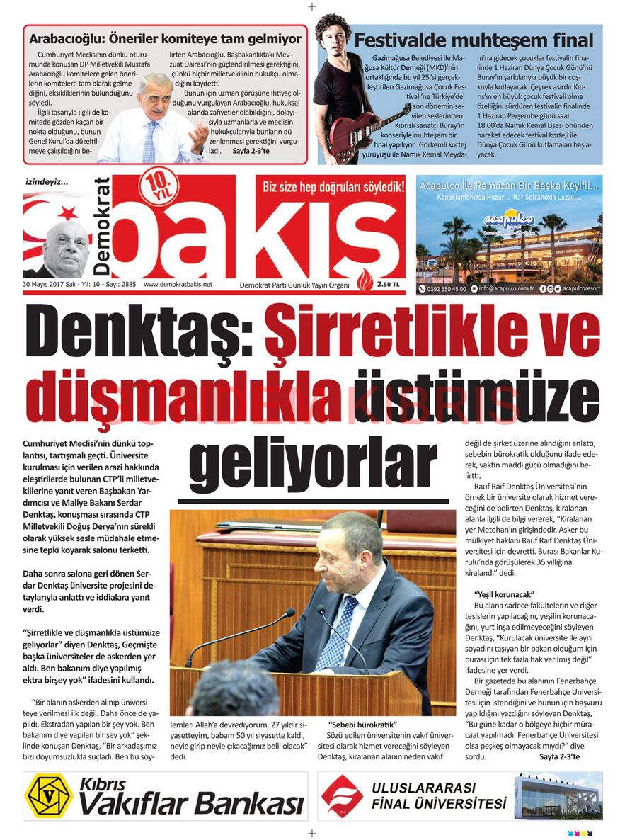 KKTC Gazete Manşetleri 30 Mayıs 2017