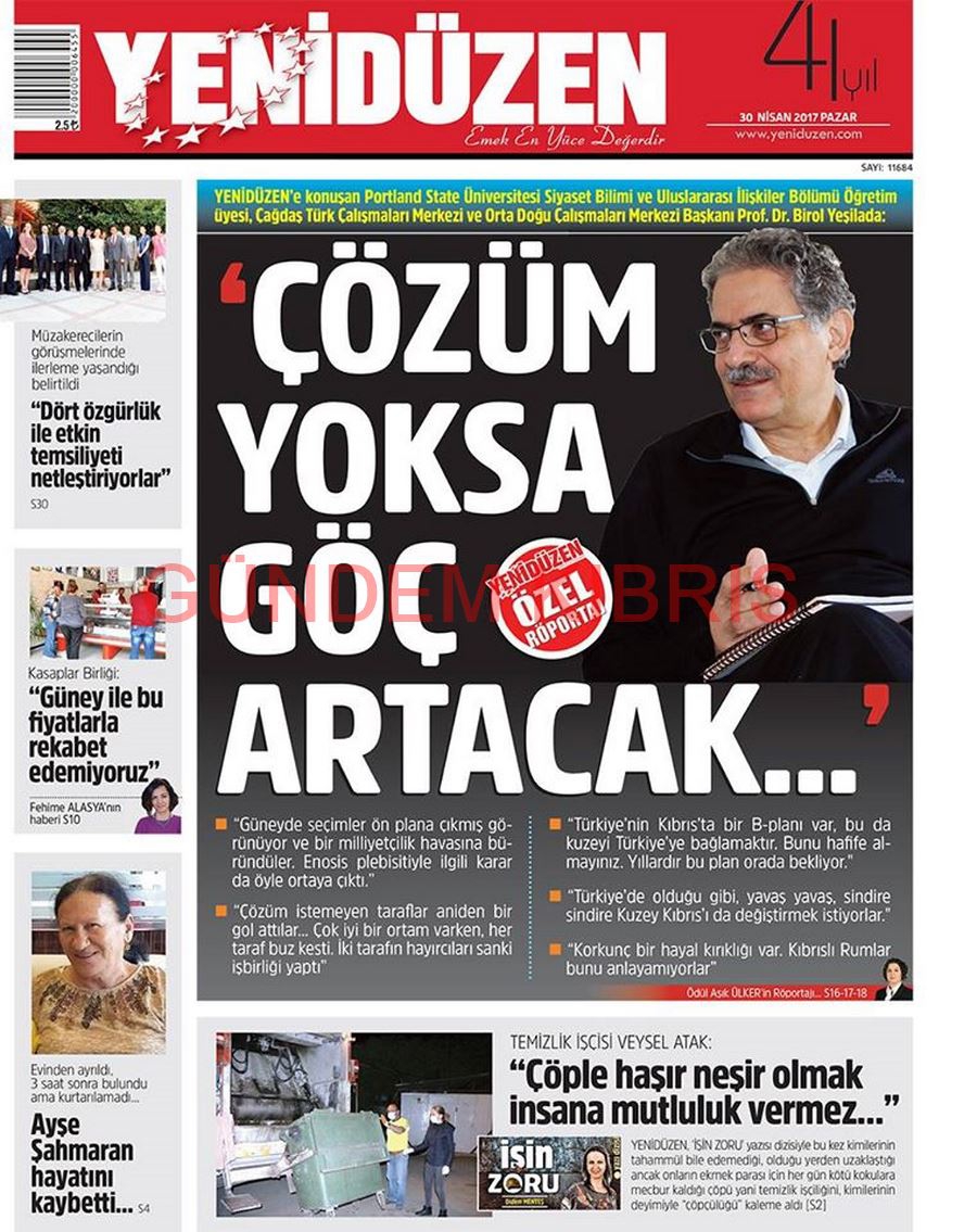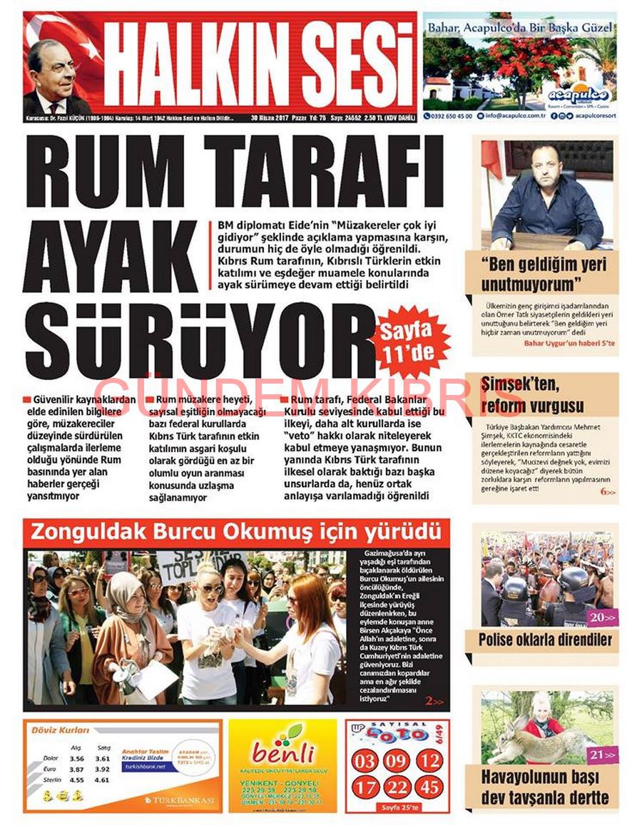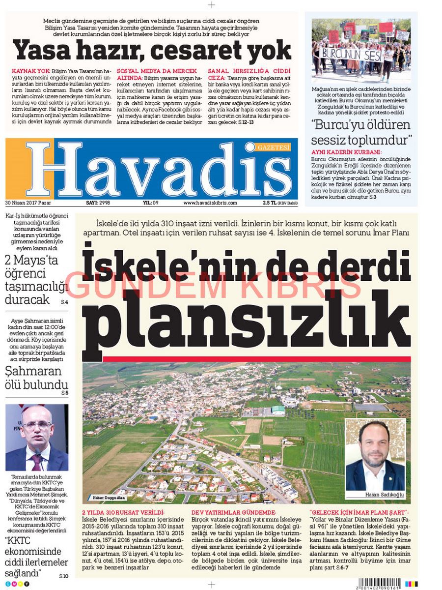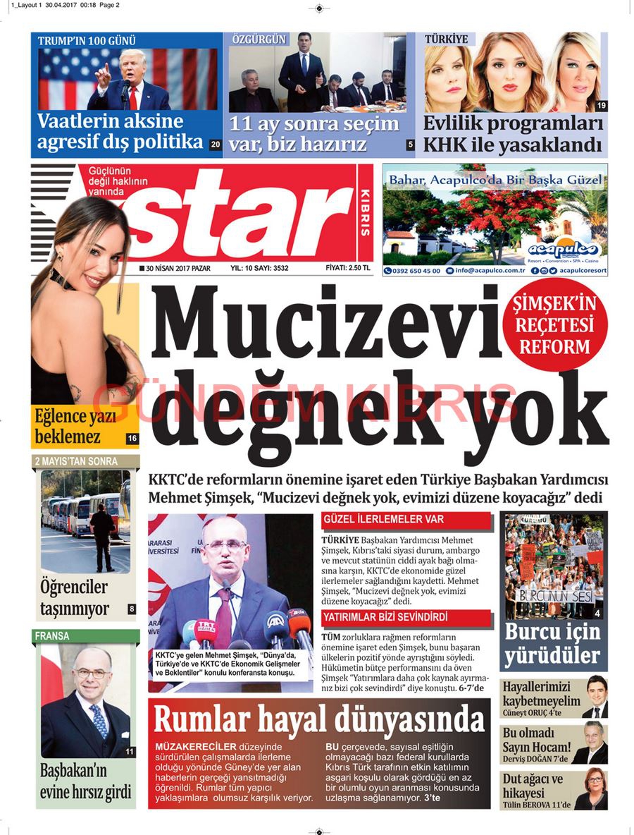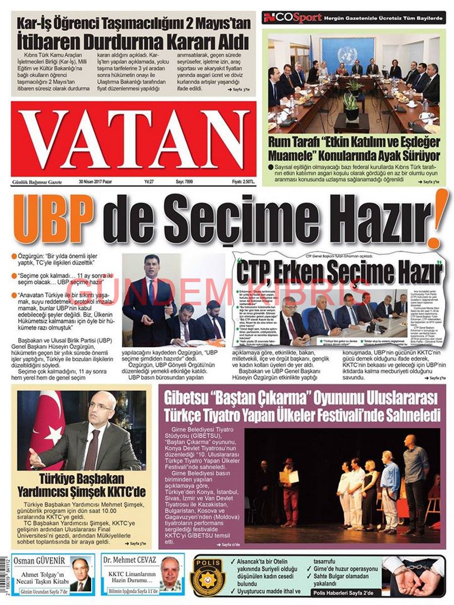 KKTC Gazete Manşetleri 30 Nisan 2017