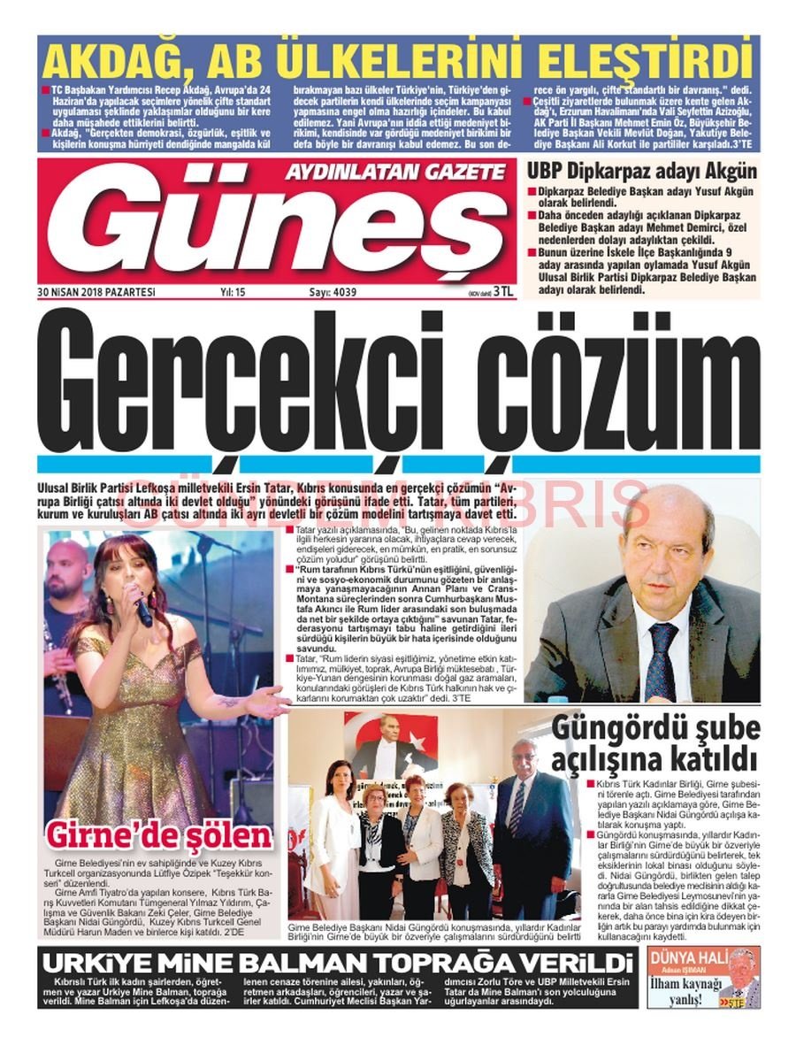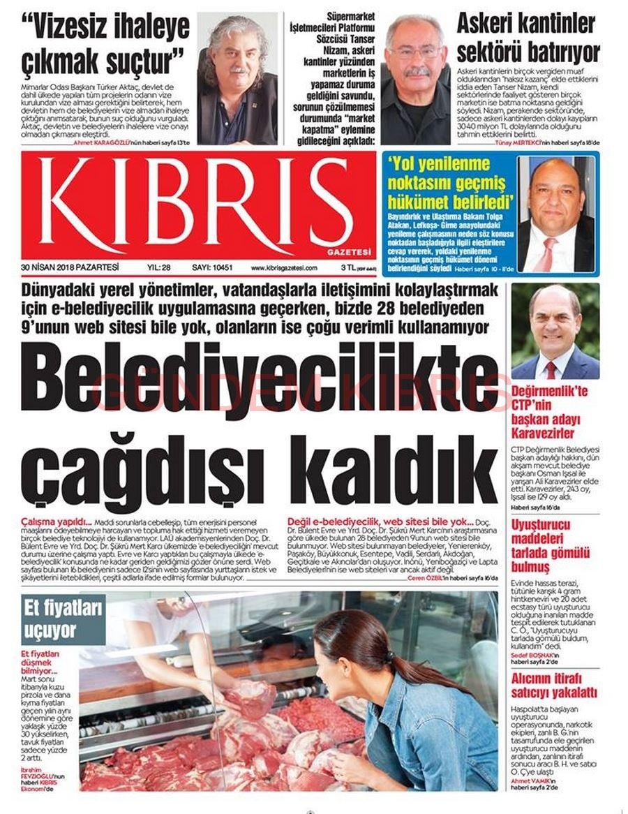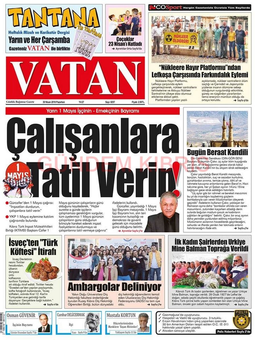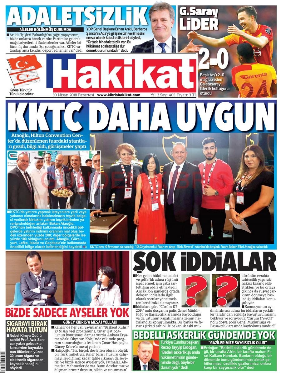 KKTC Gazete Manşetleri 30 Nisan 2018