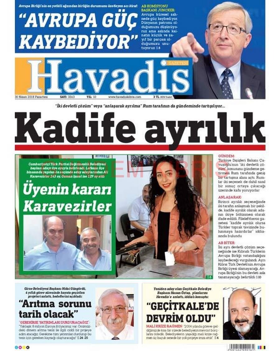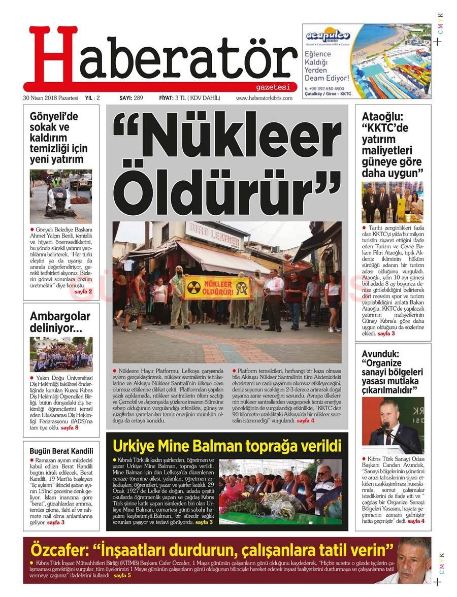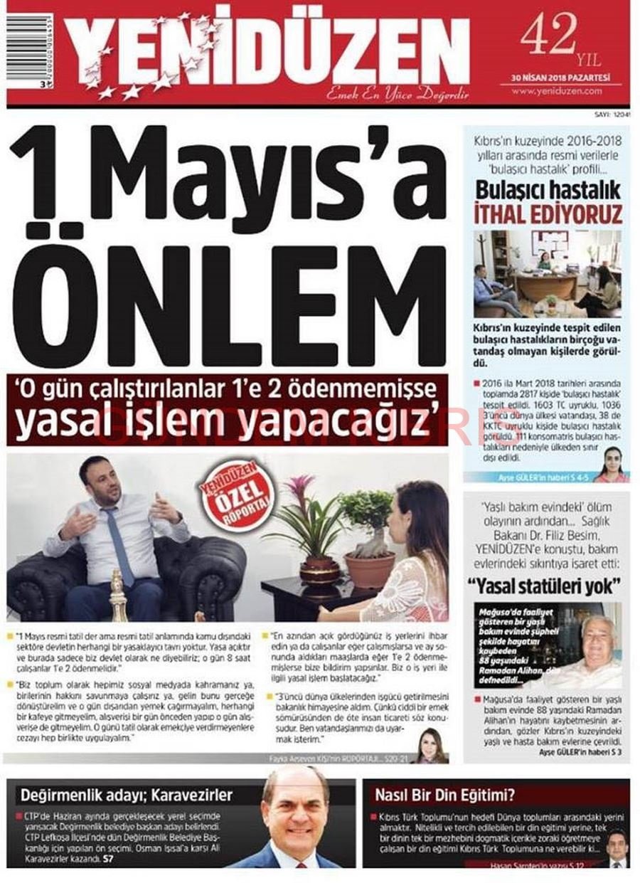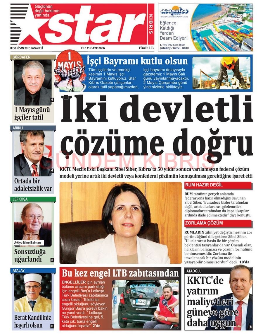 KKTC Gazete Manşetleri 30 Nisan 2018