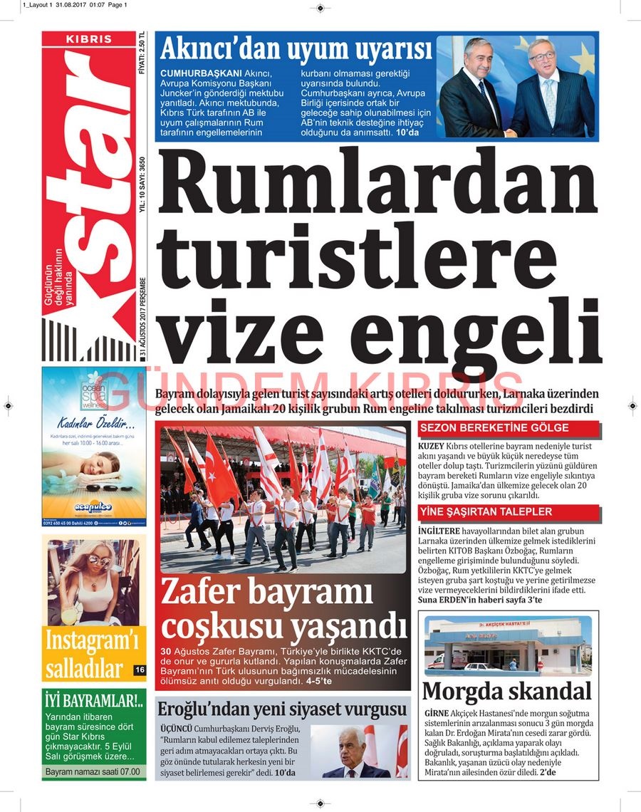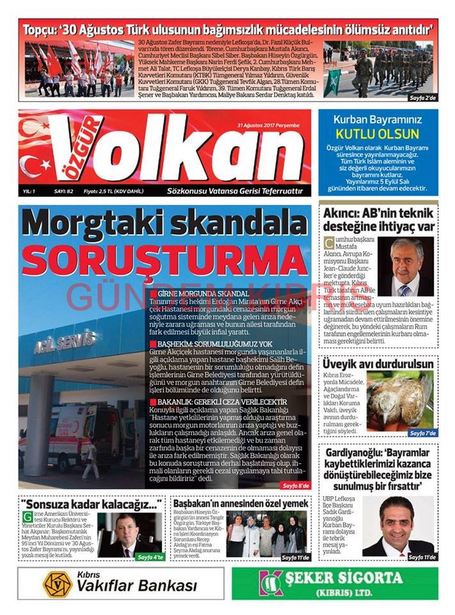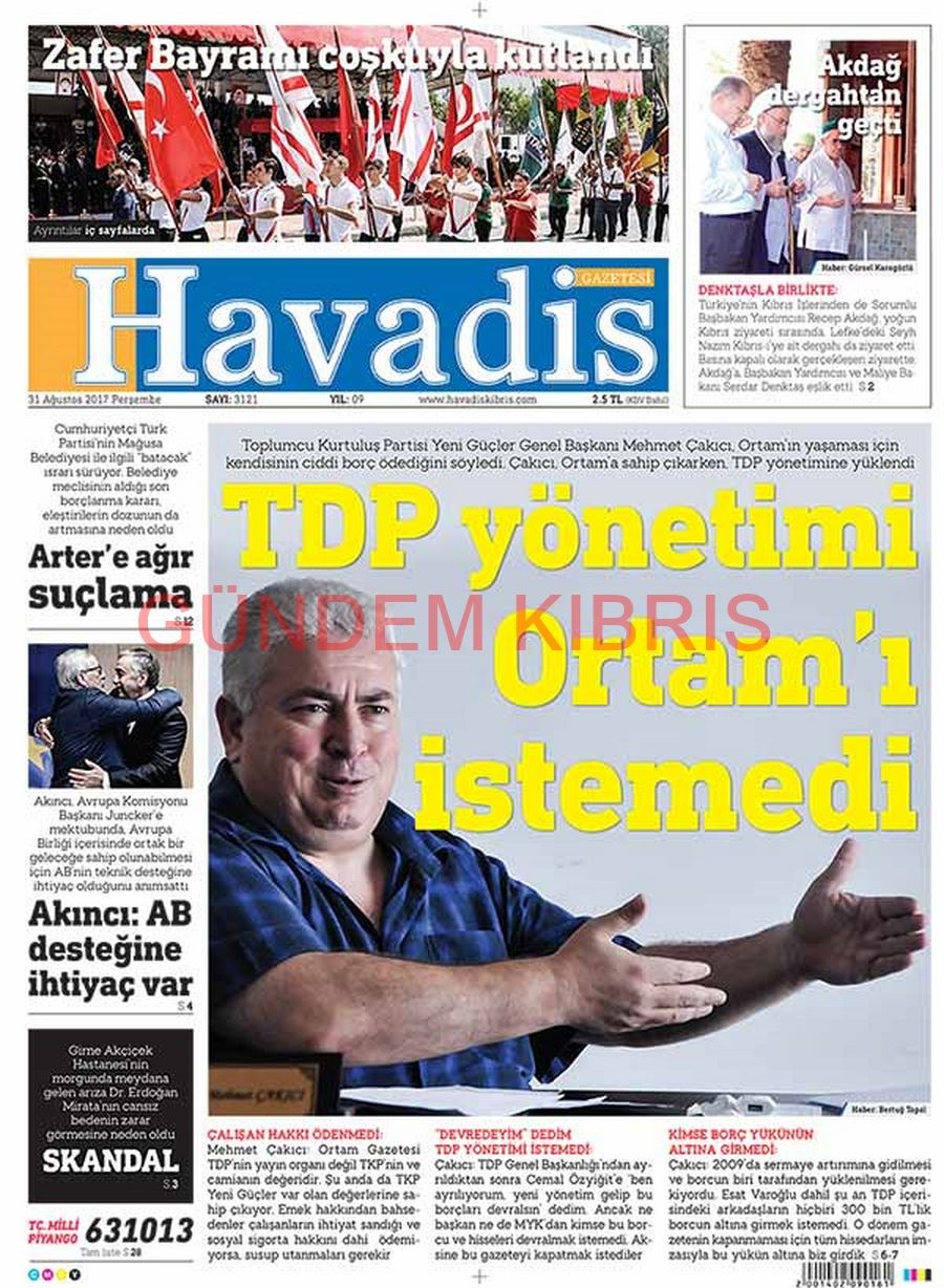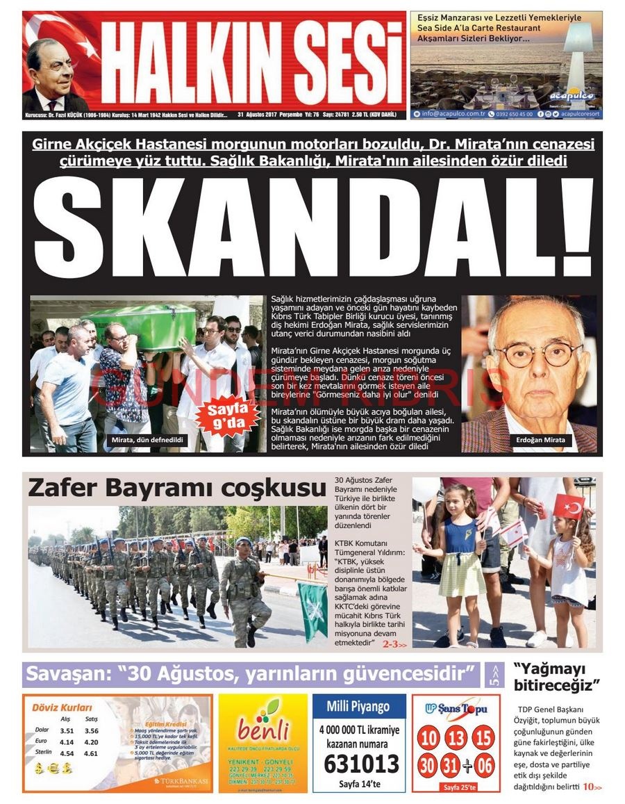 KKTC Gazete Manşetleri 31 Ağustos 2017