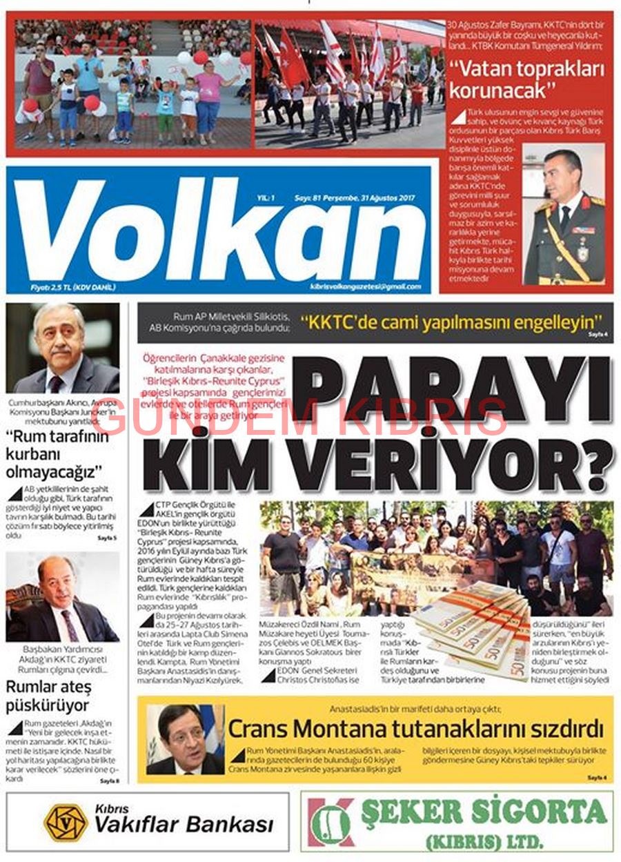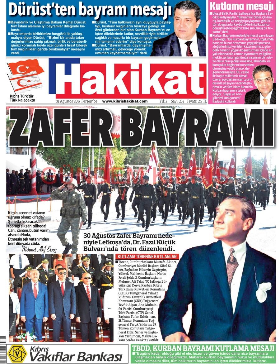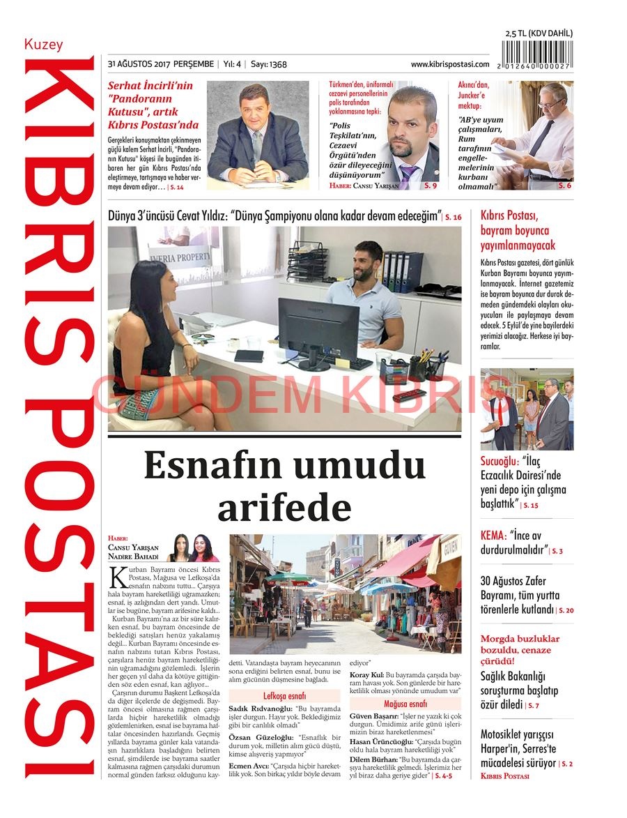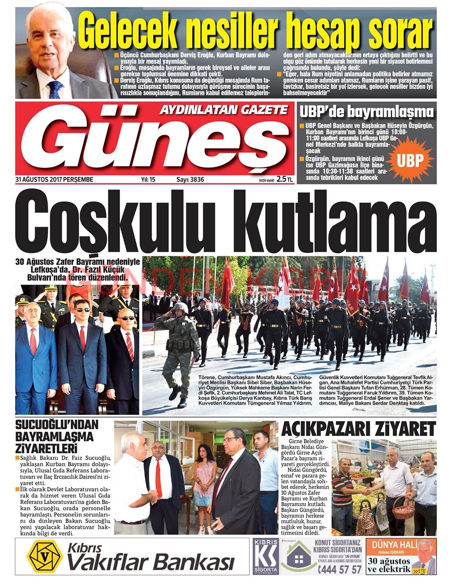 KKTC Gazete Manşetleri 31 Ağustos 2017