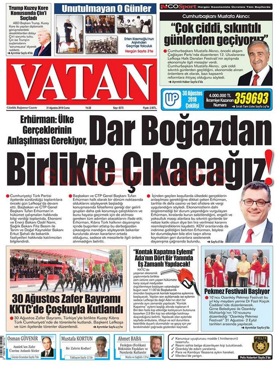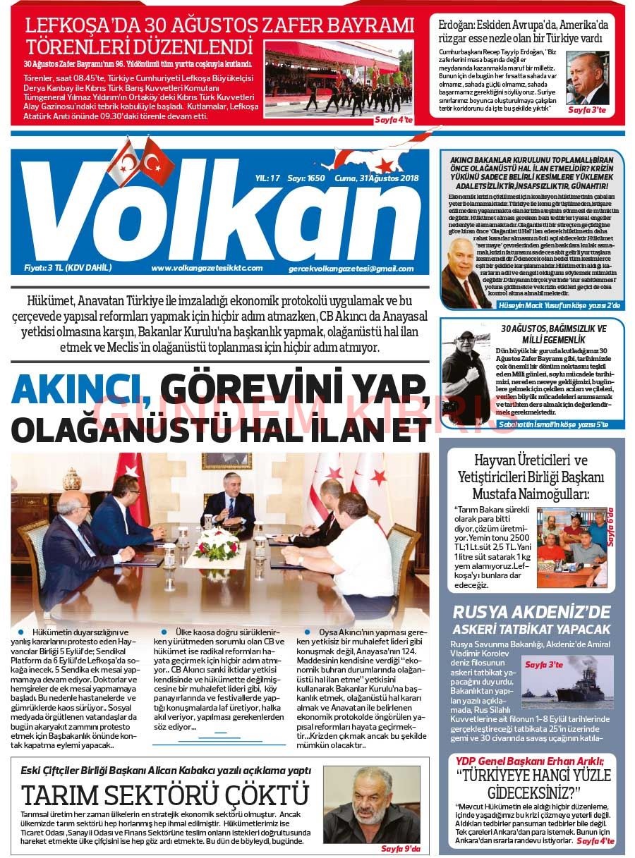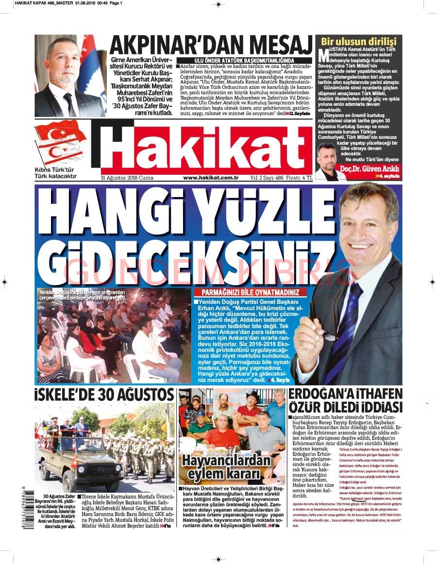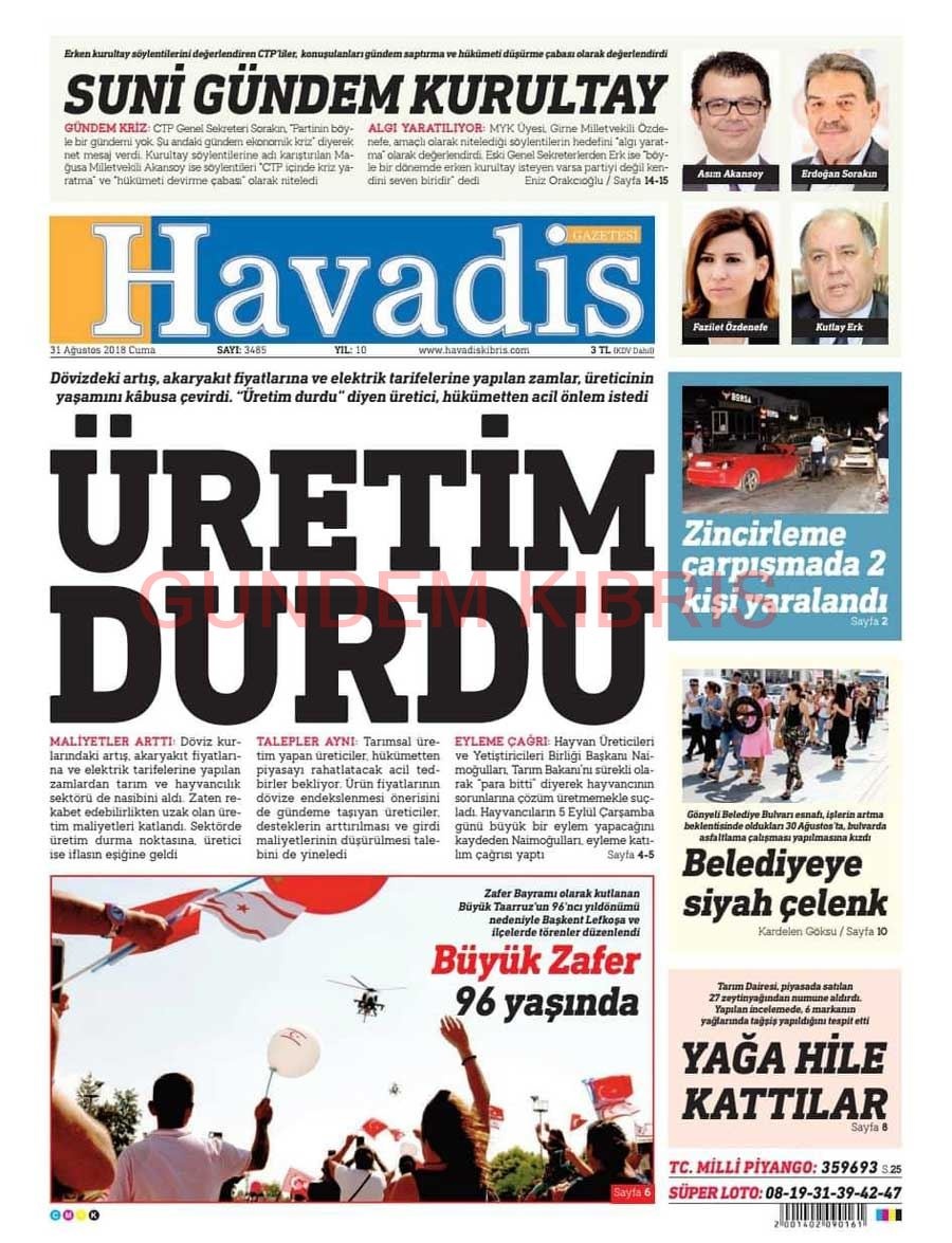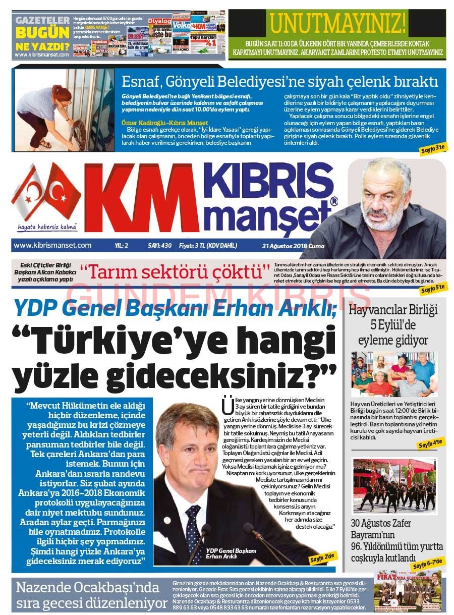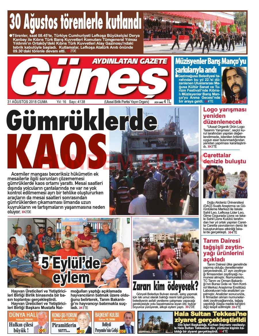 KKTC Gazete Manşetleri 31 Ağustos 2018