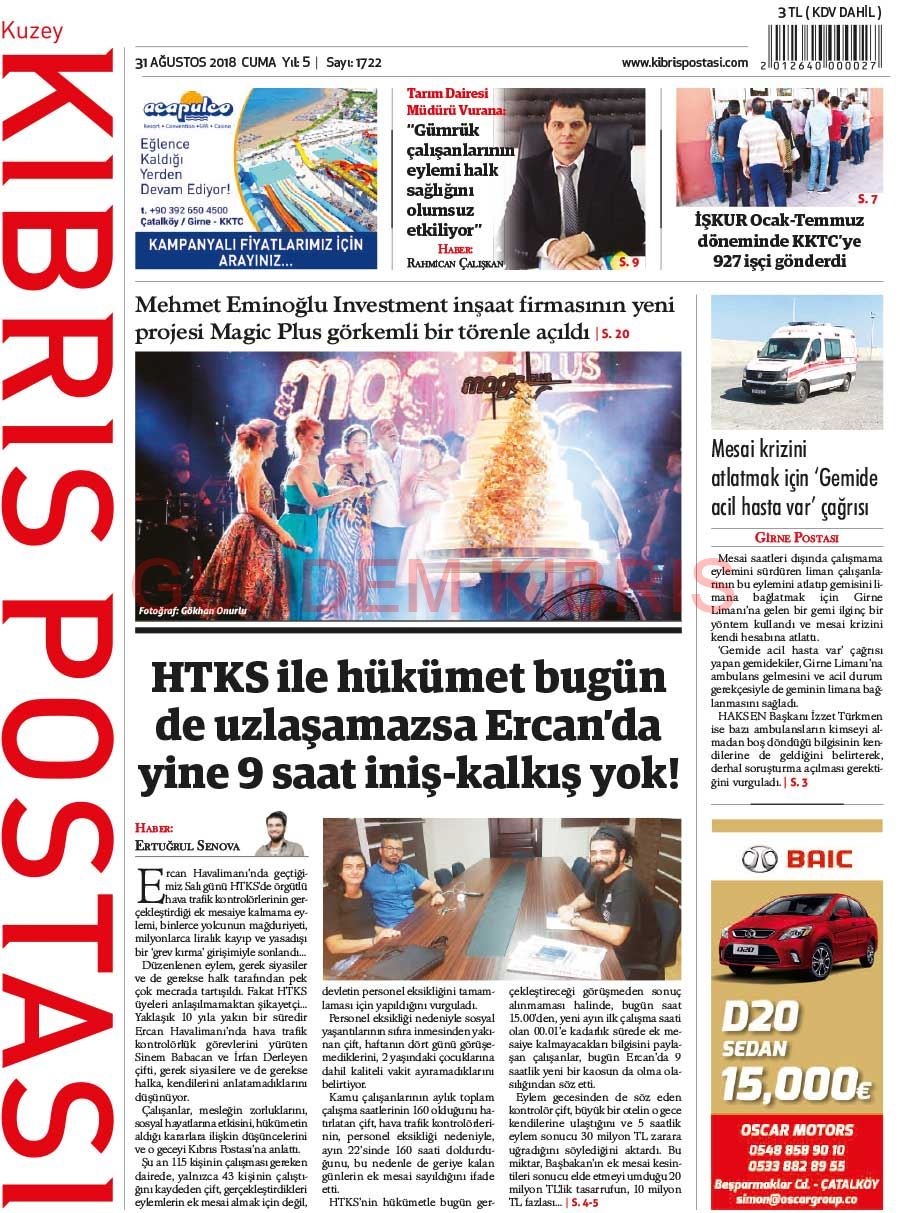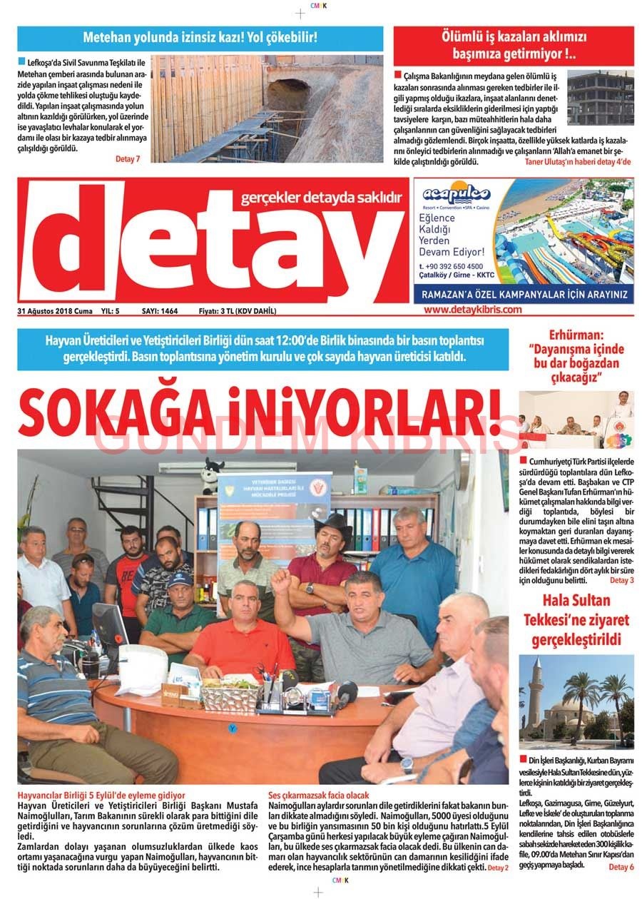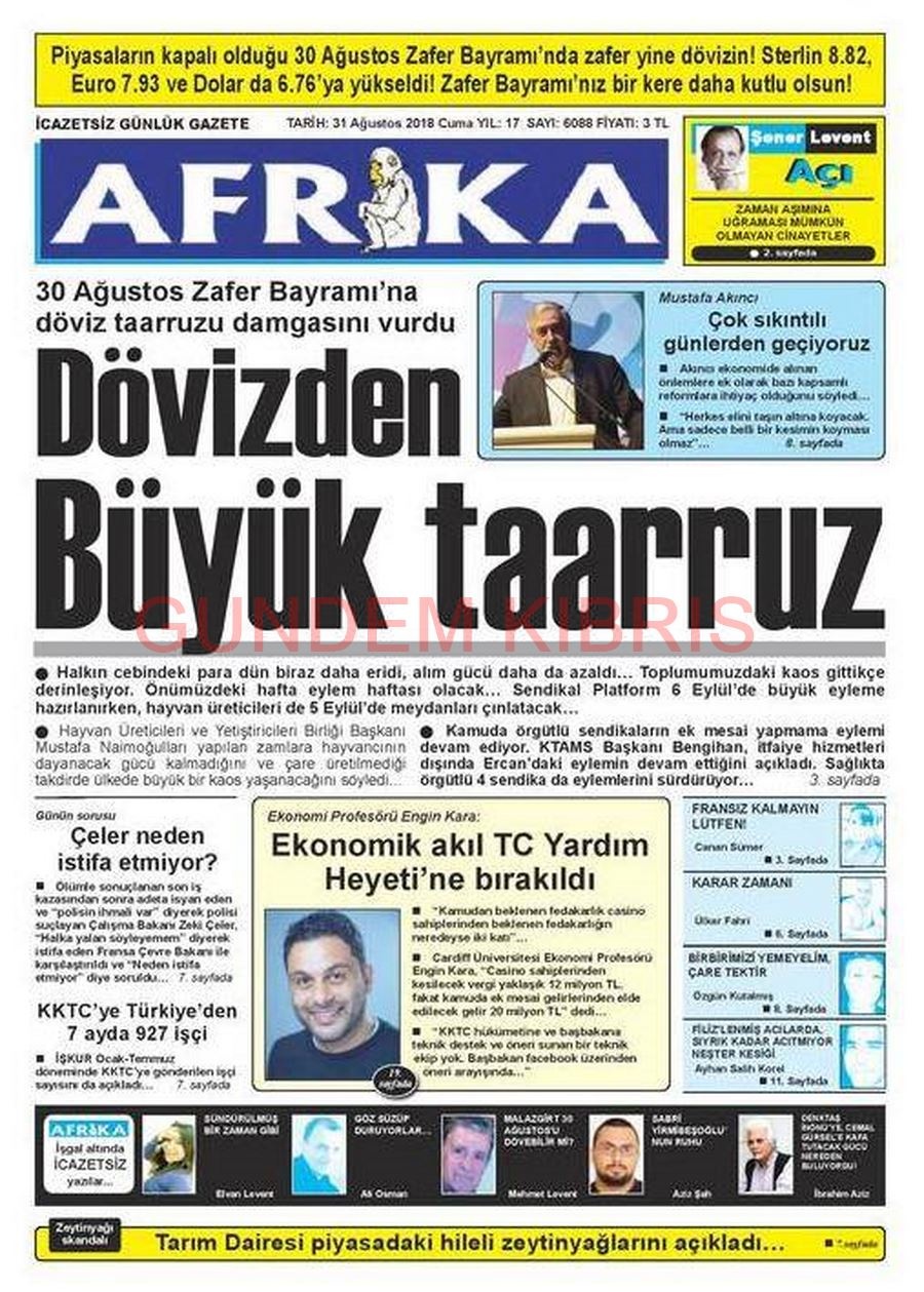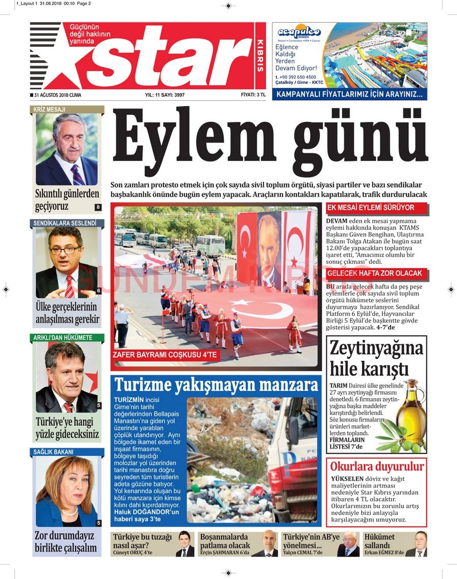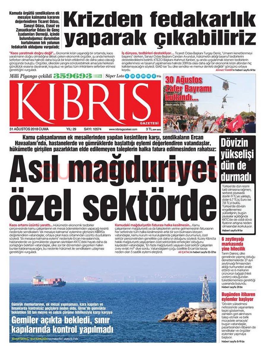 KKTC Gazete Manşetleri 31 Ağustos 2018