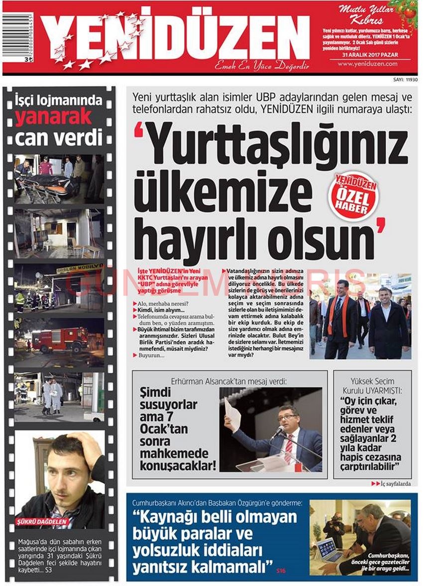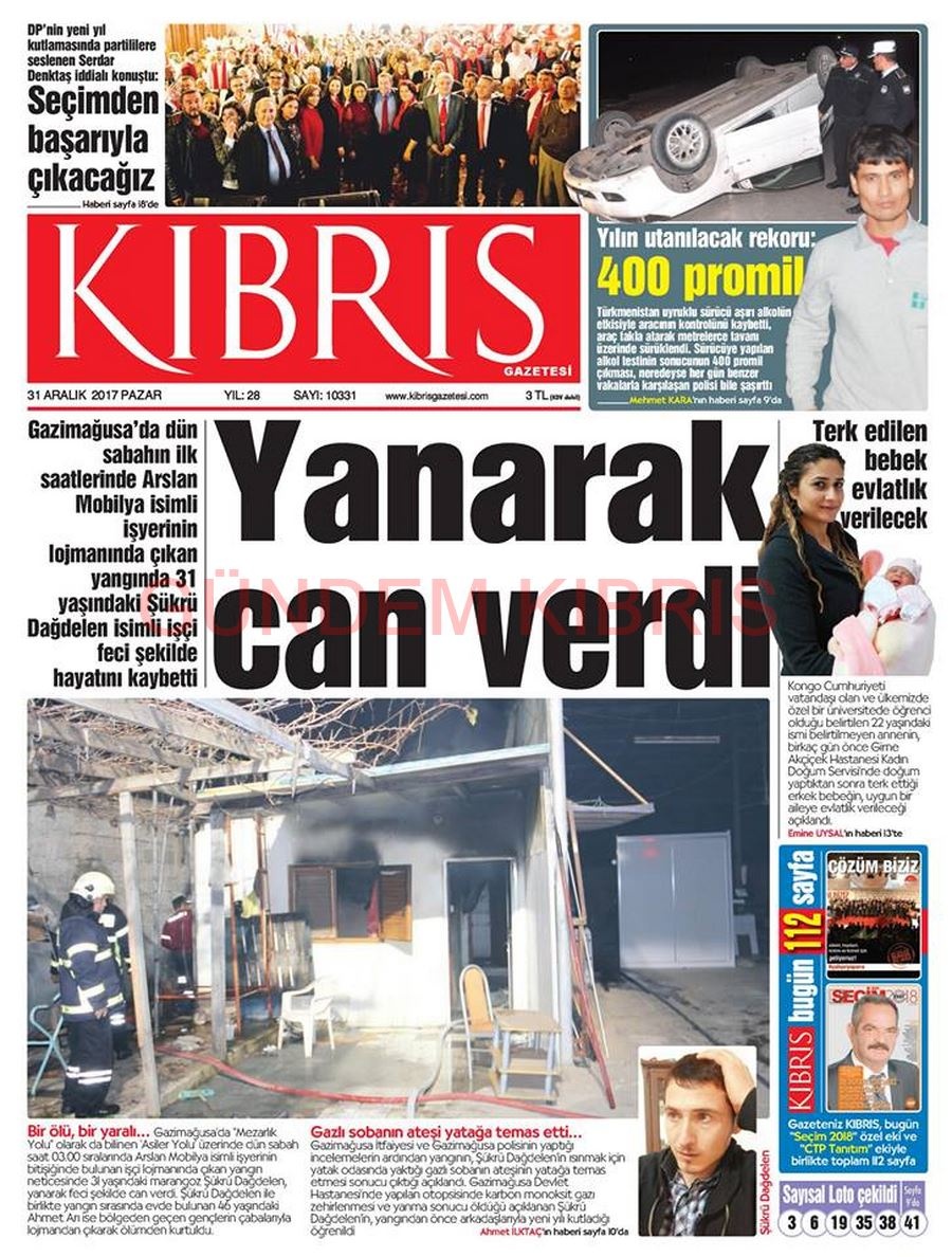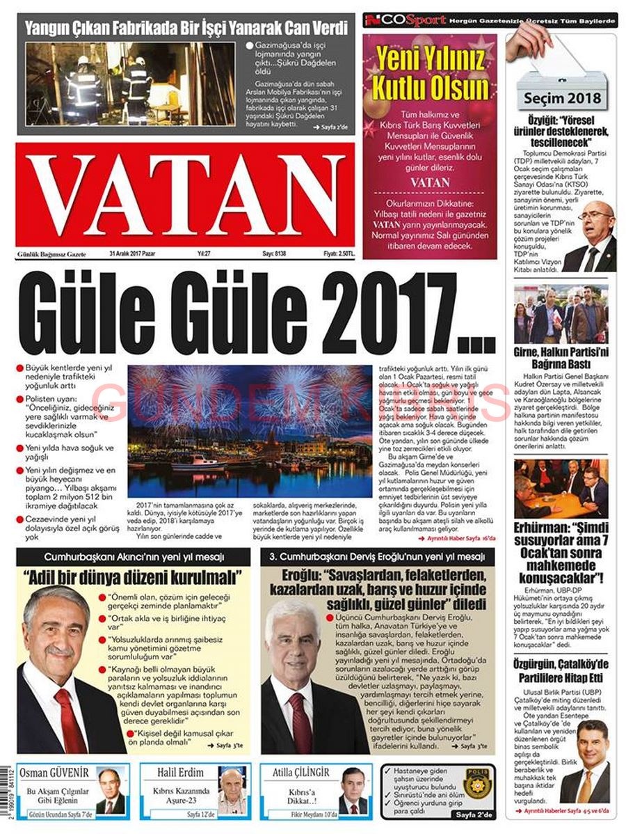 KKTC Gazete Manşetleri 31 Aralık 2017