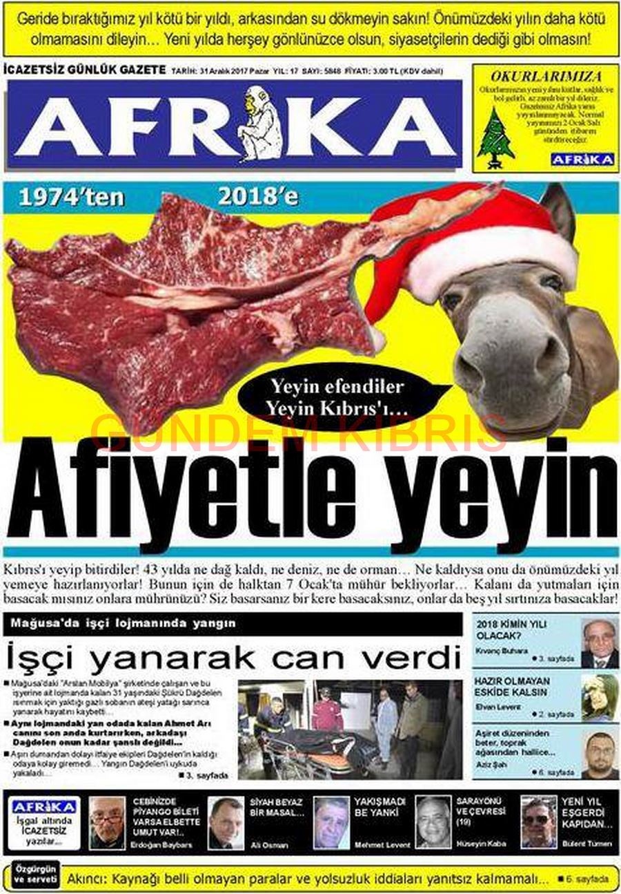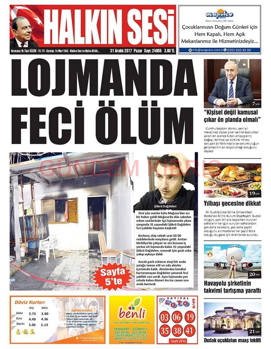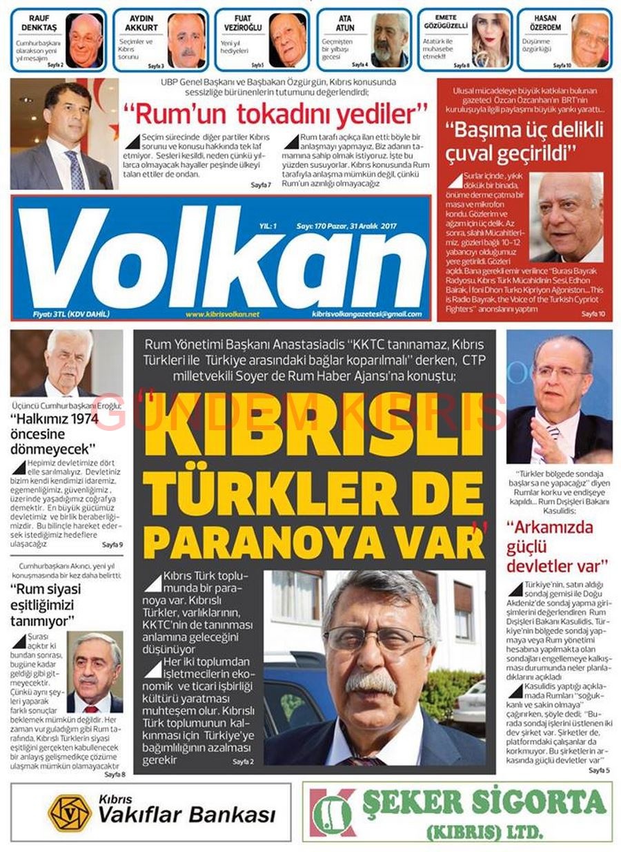 KKTC Gazete Manşetleri 31 Aralık 2017