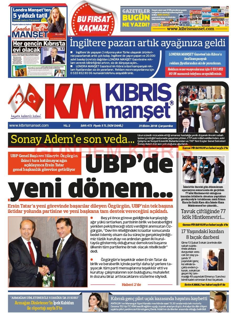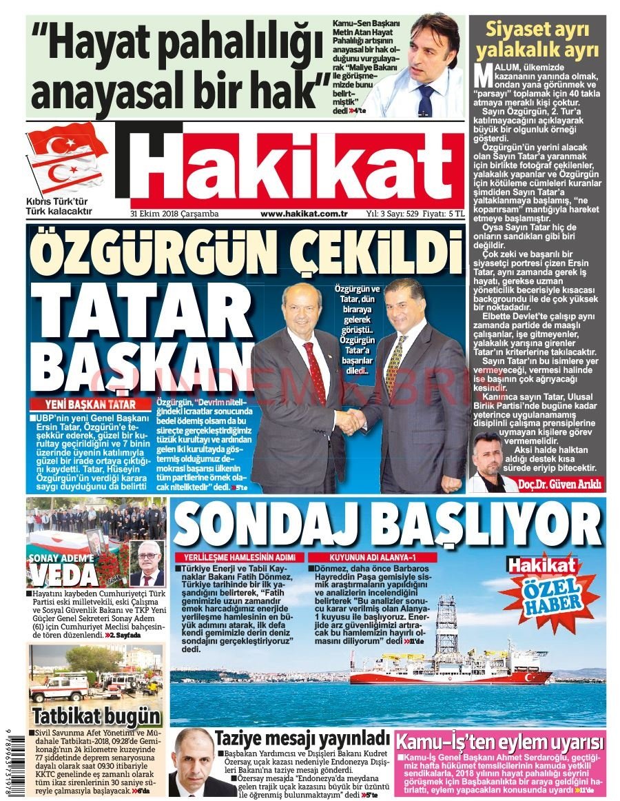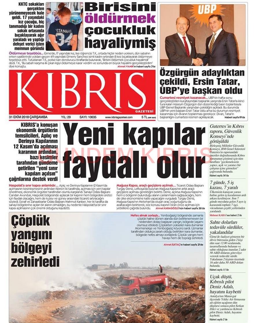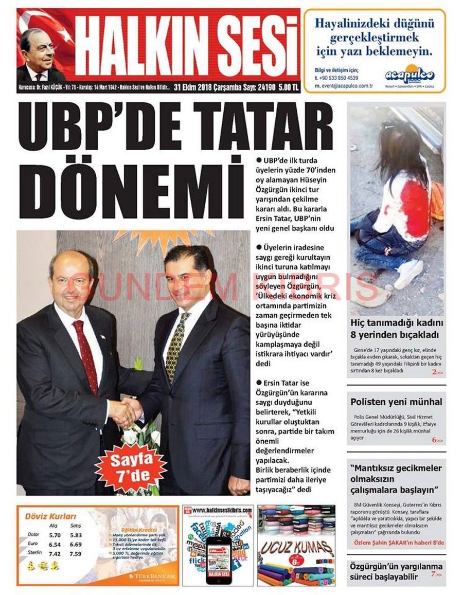 KKTC Gazete Manşetleri 31 Ekim 2018