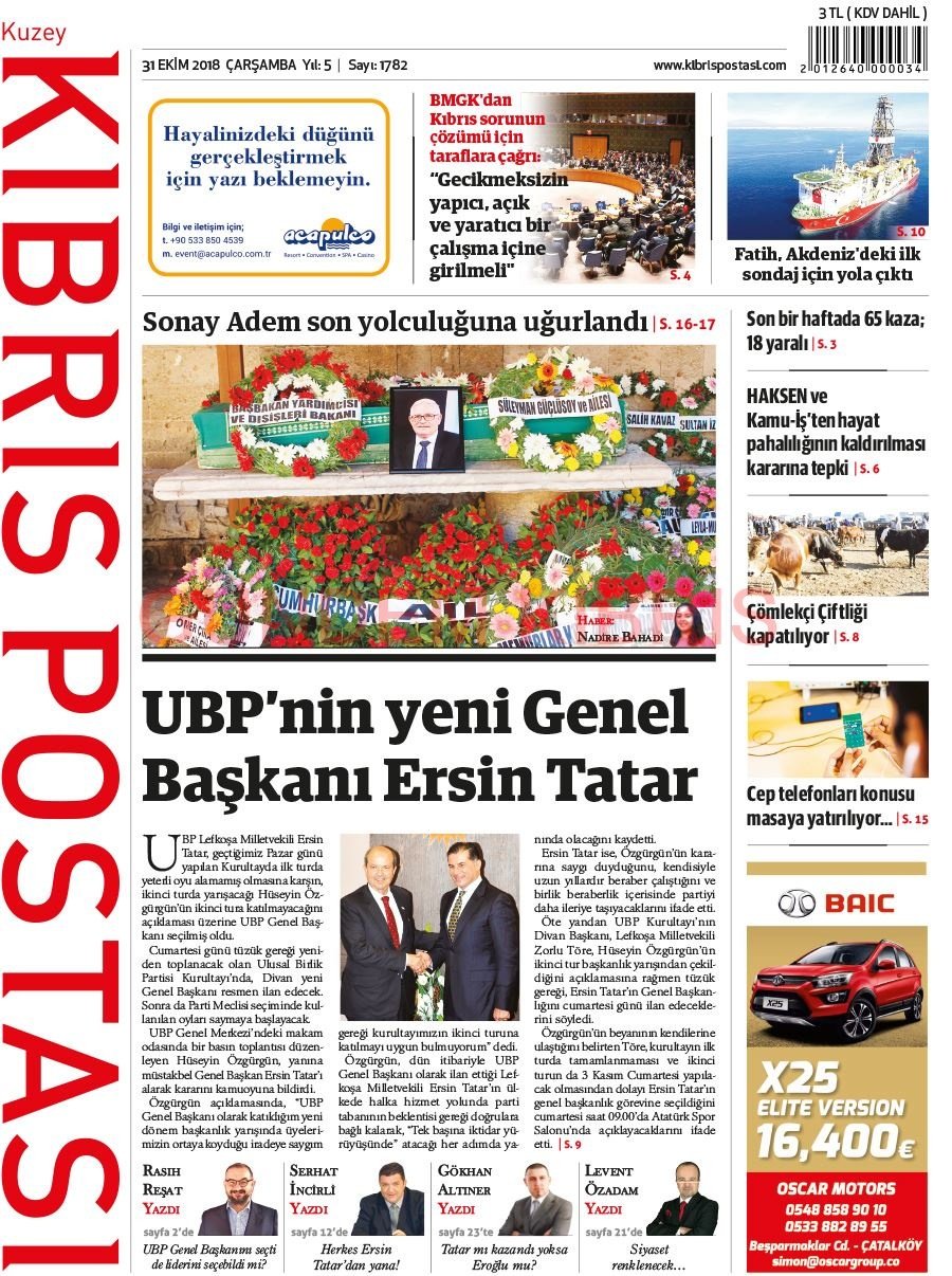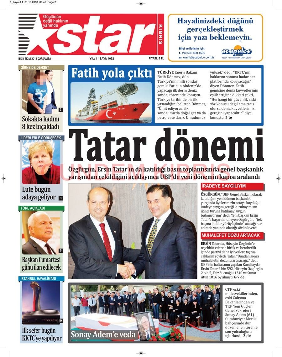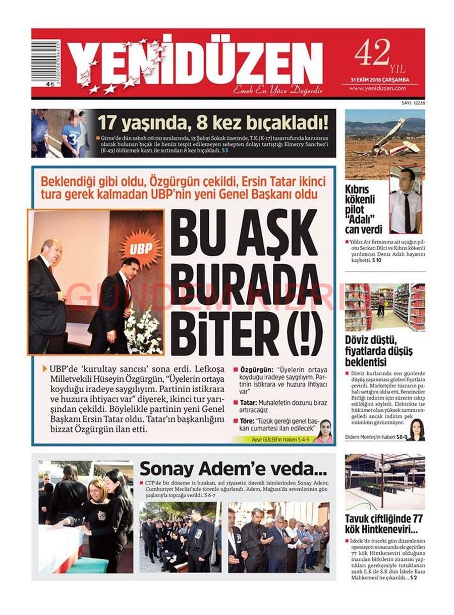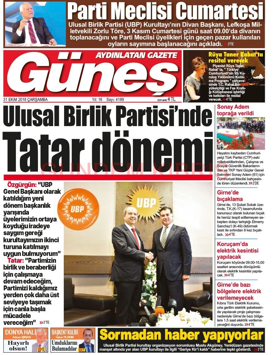 KKTC Gazete Manşetleri 31 Ekim 2018