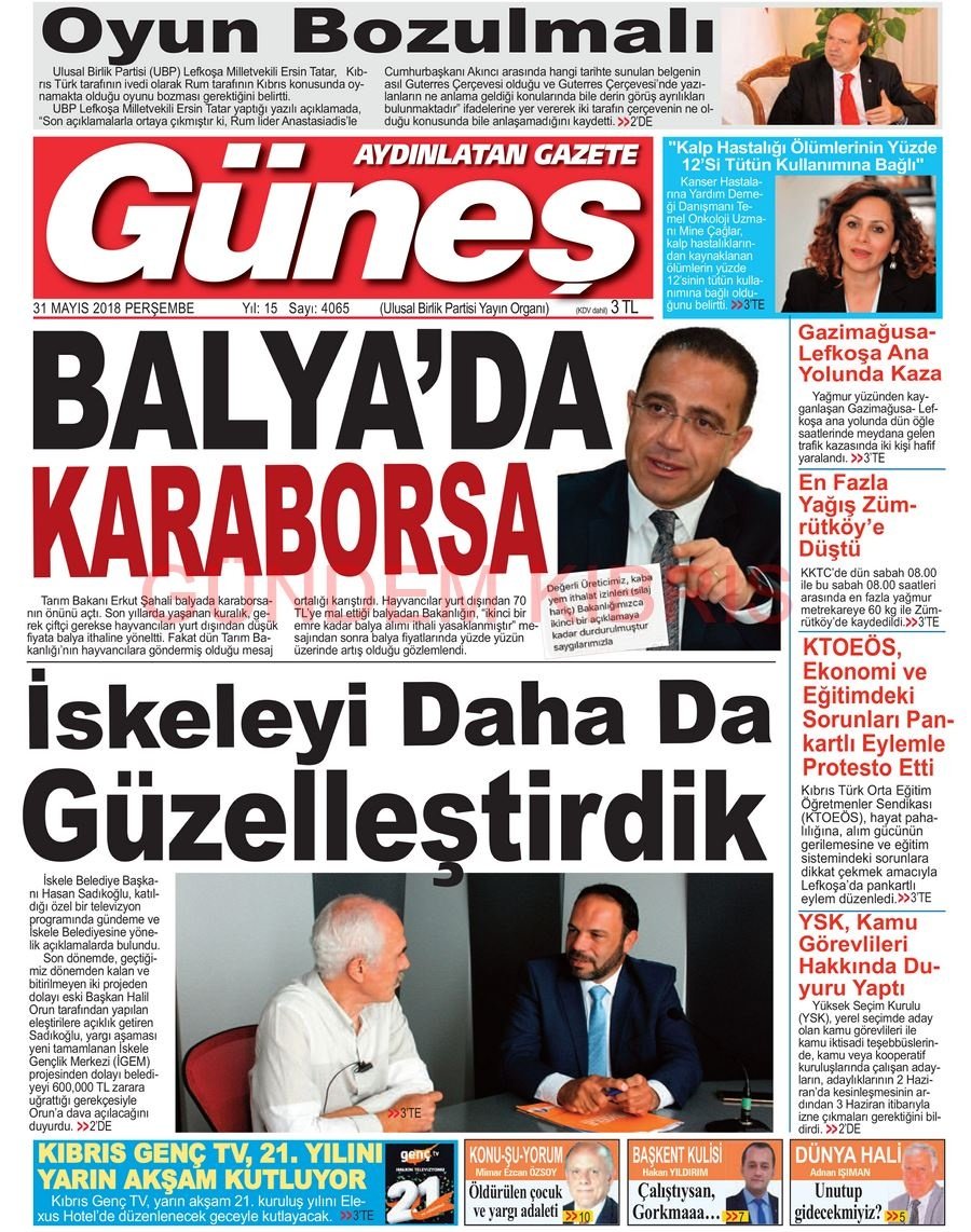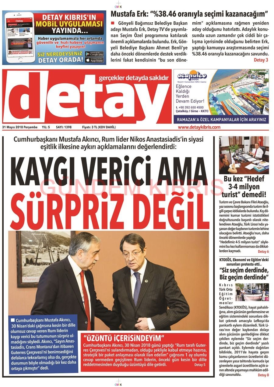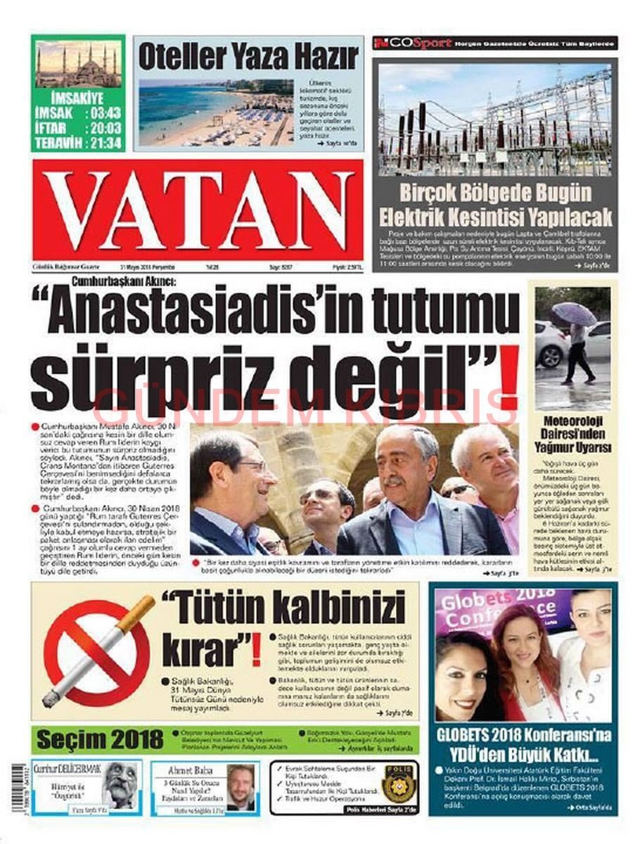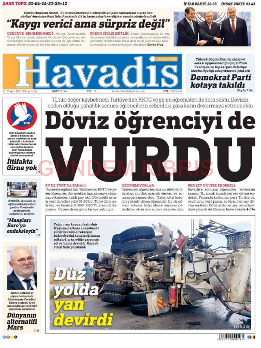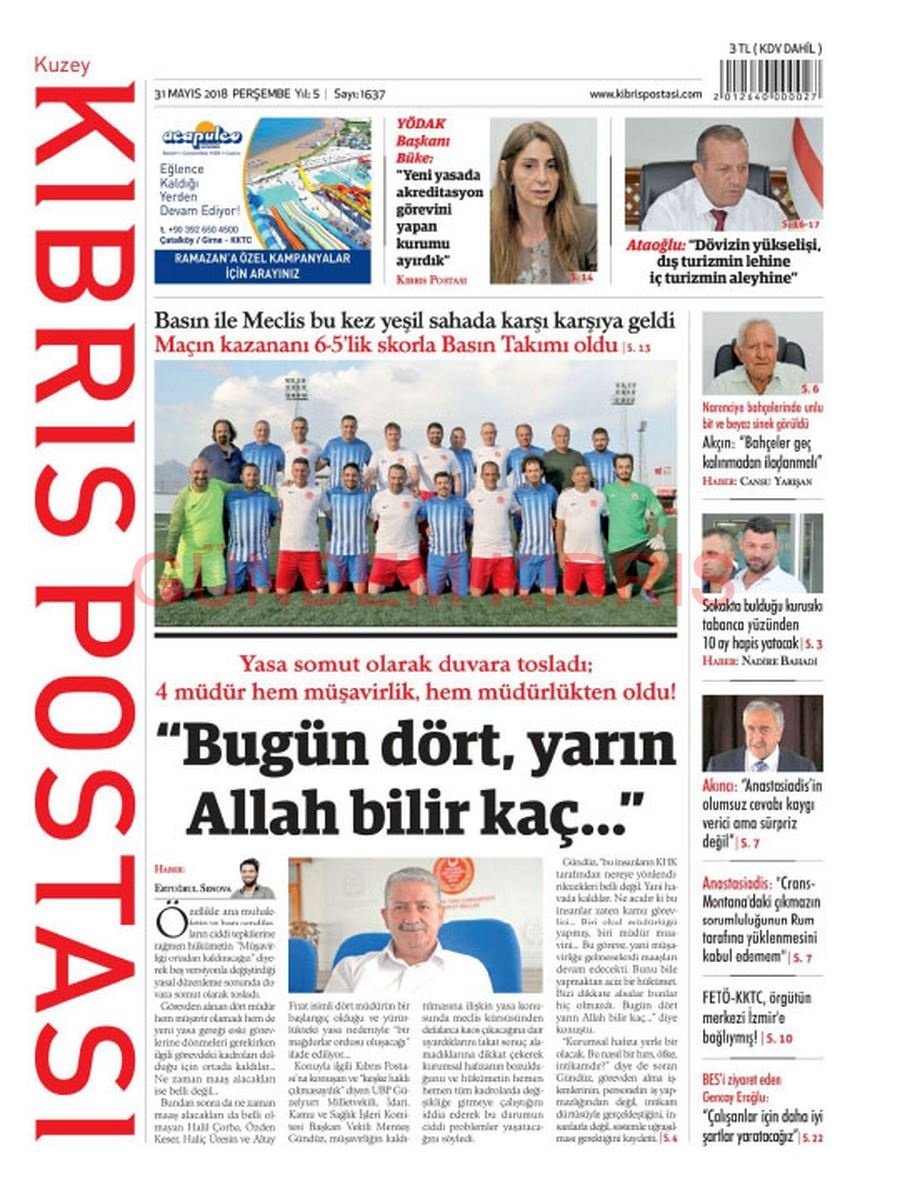KKTC Gazete Manşetleri 31 Mayıs 2018