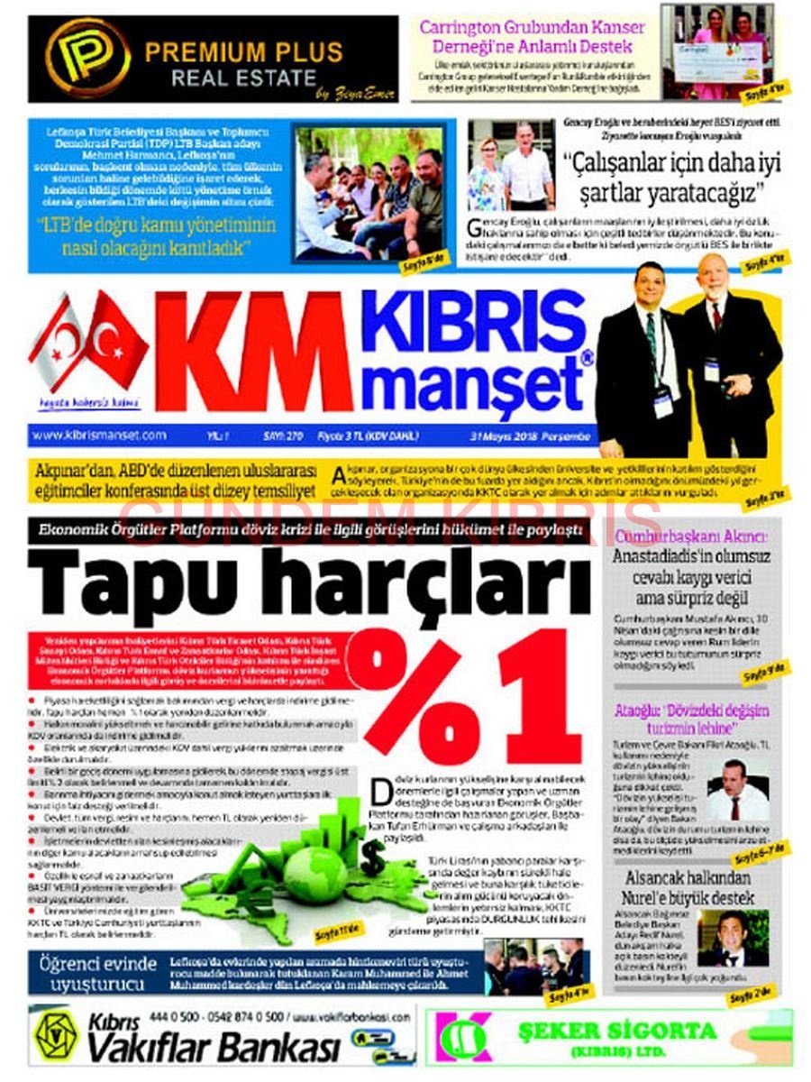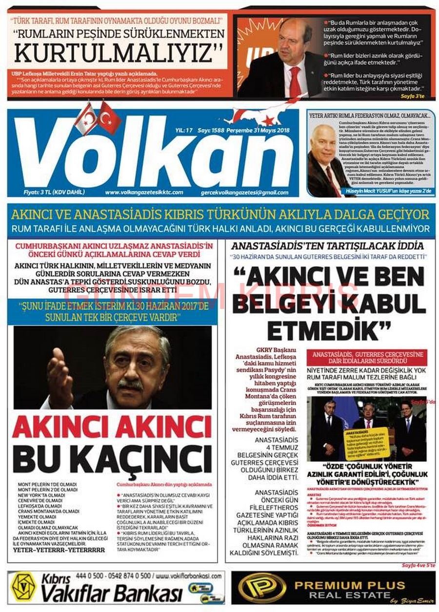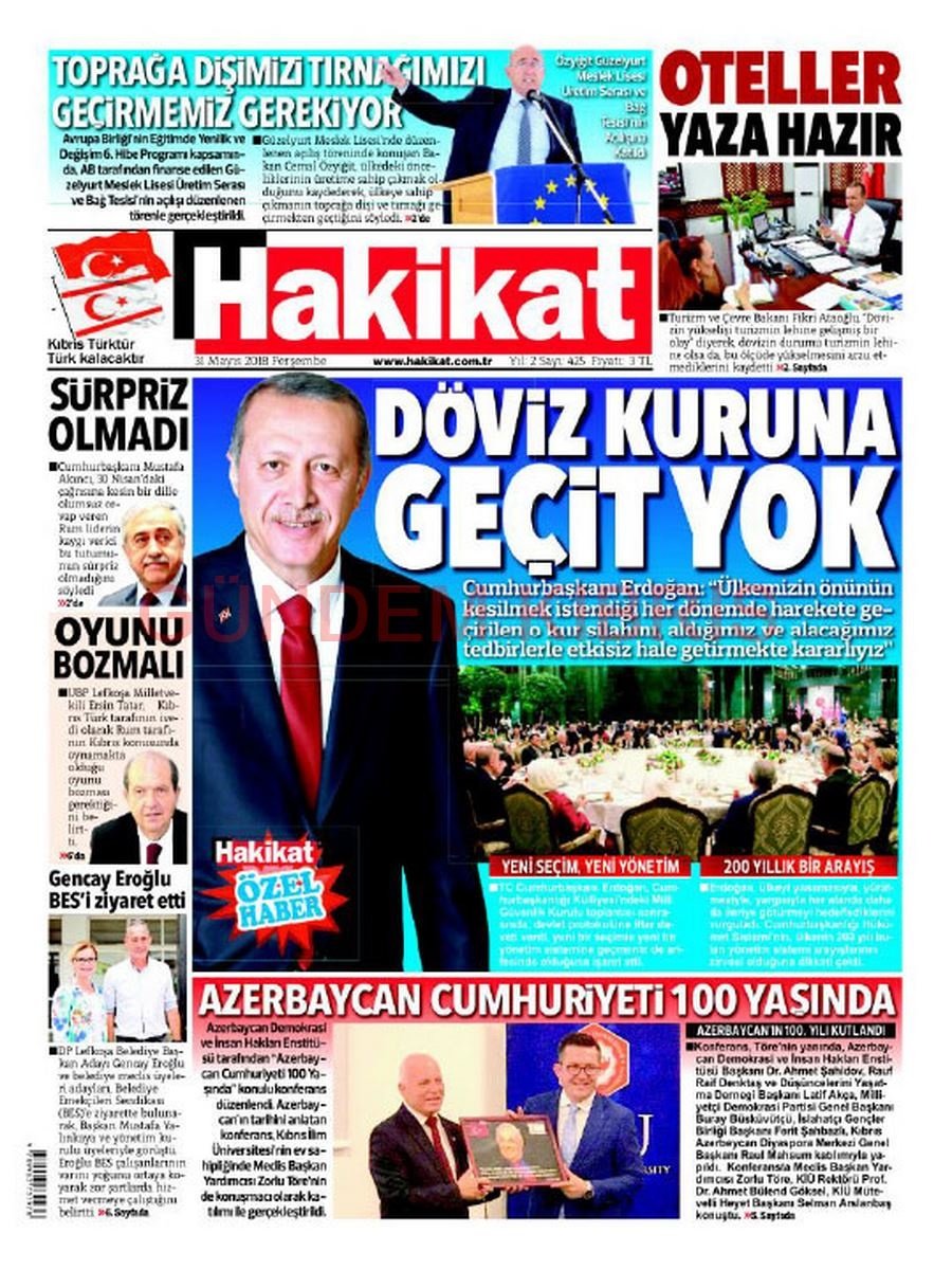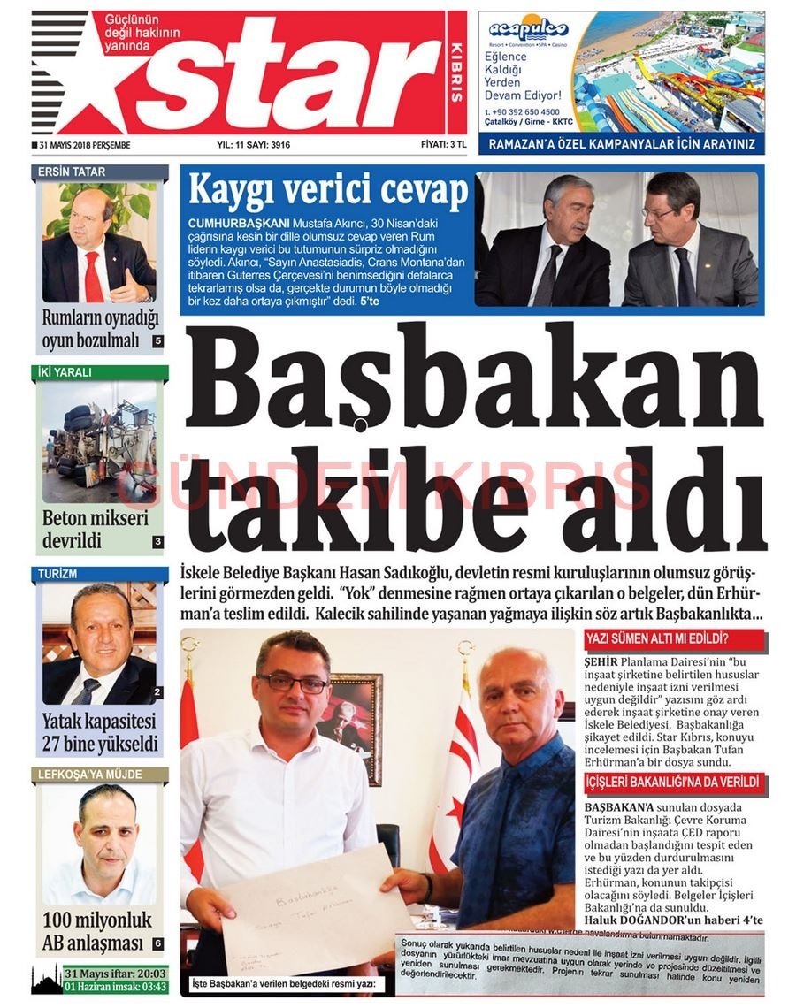 KKTC Gazete Manşetleri 31 Mayıs 2018