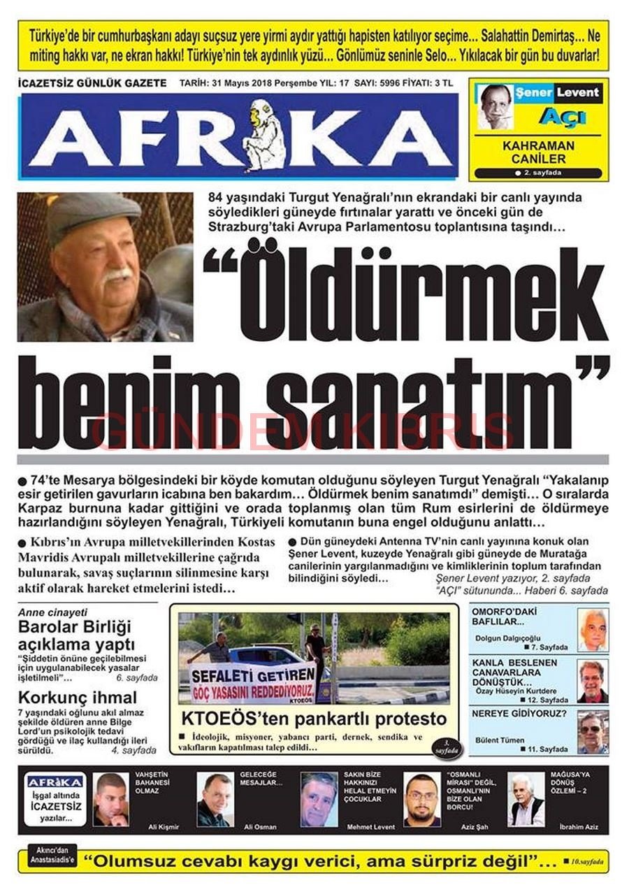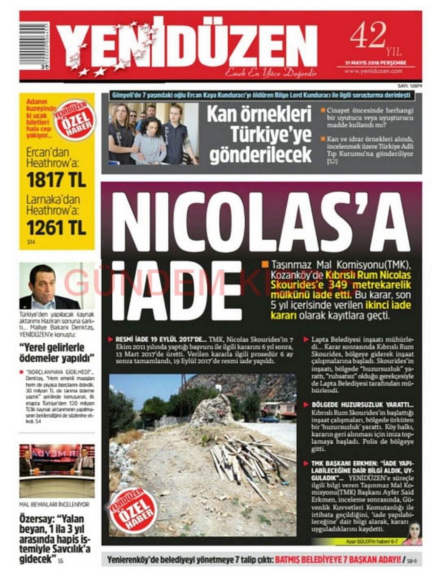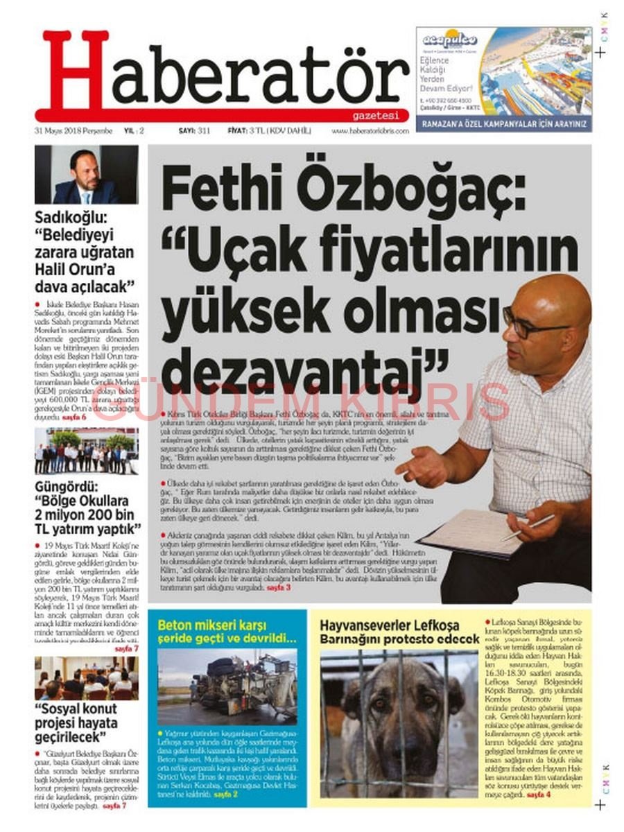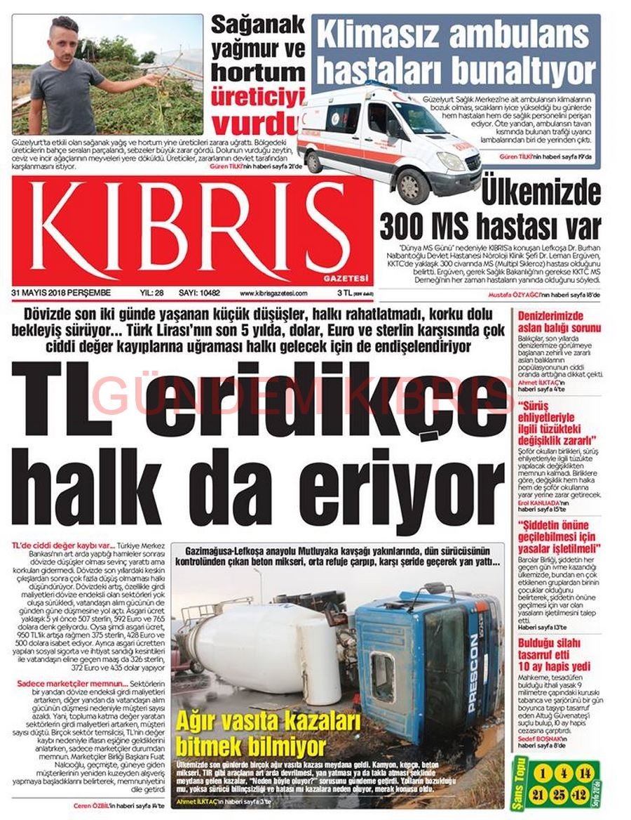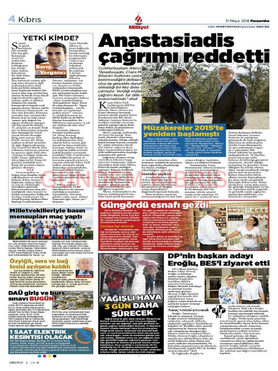 KKTC Gazete Manşetleri 31 Mayıs 2018