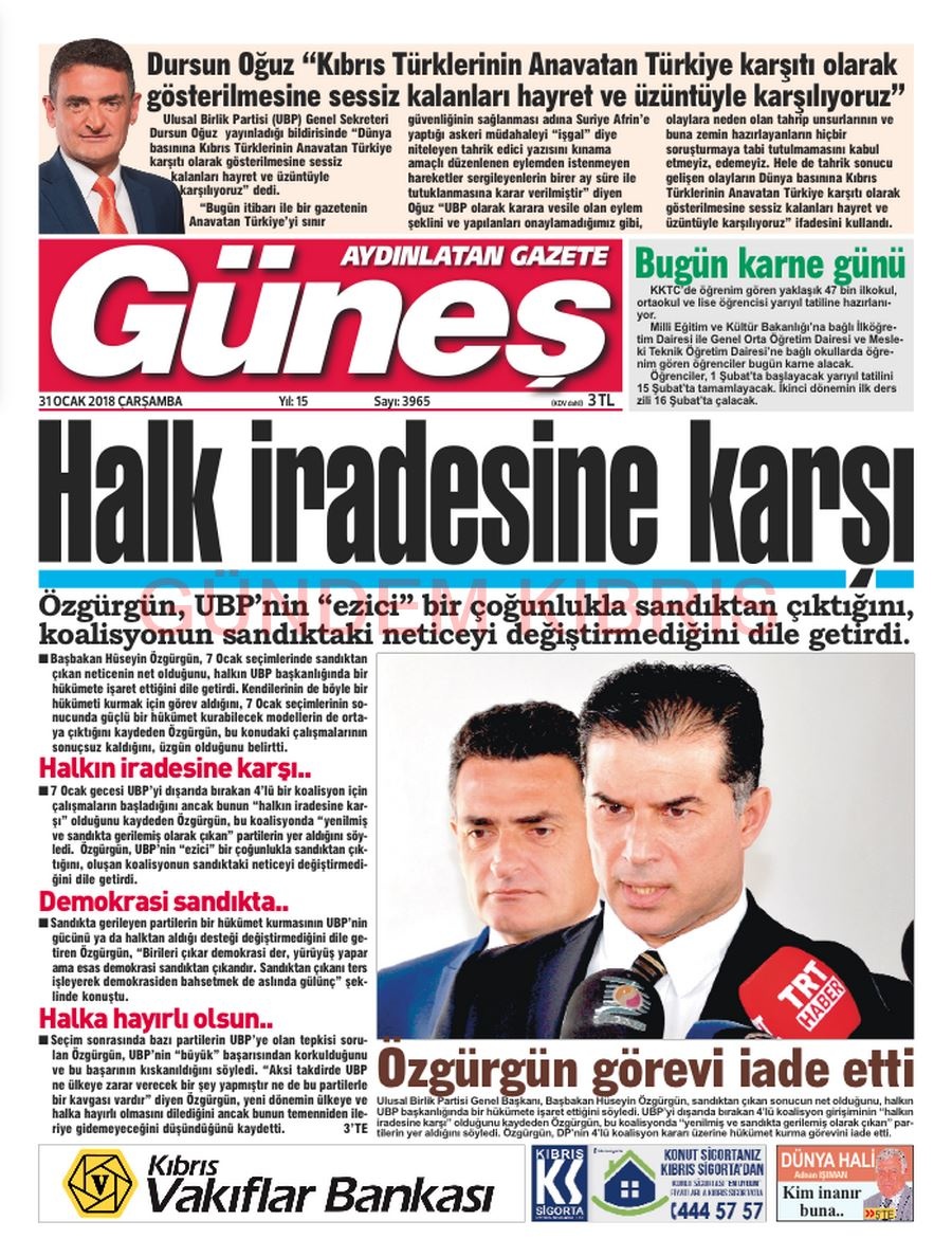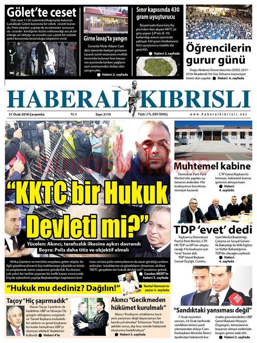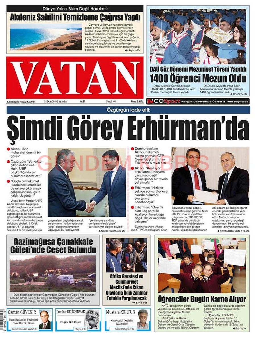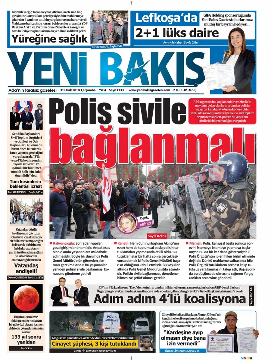 KKTC Gazete Manşetleri 31 Ocak 2018