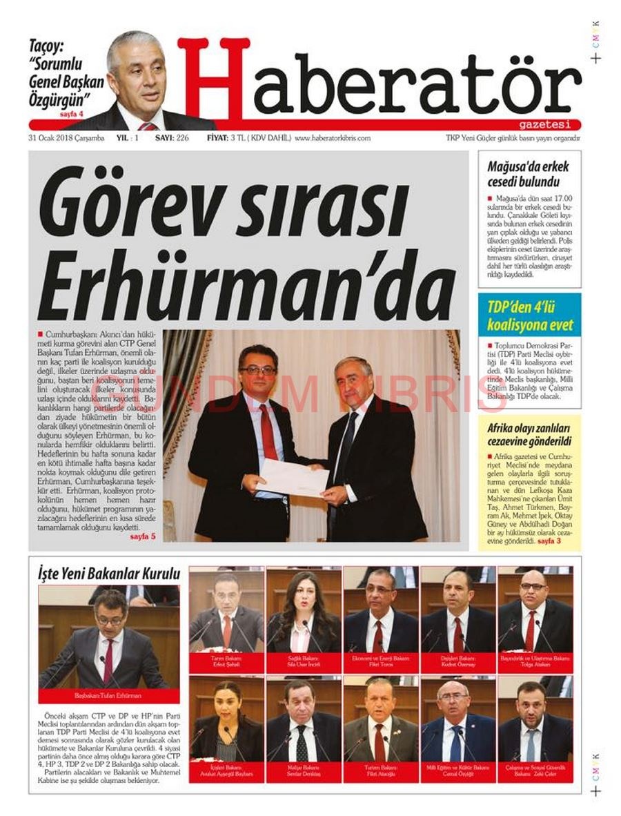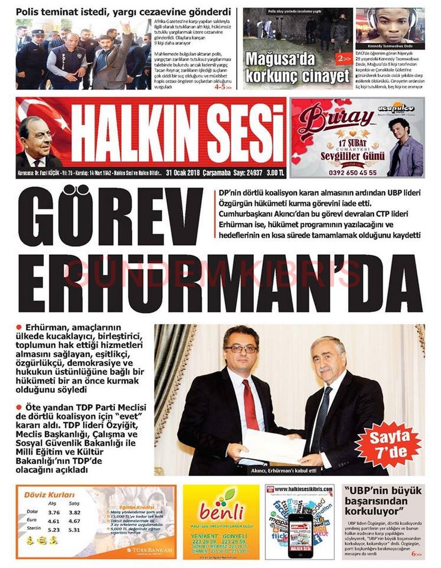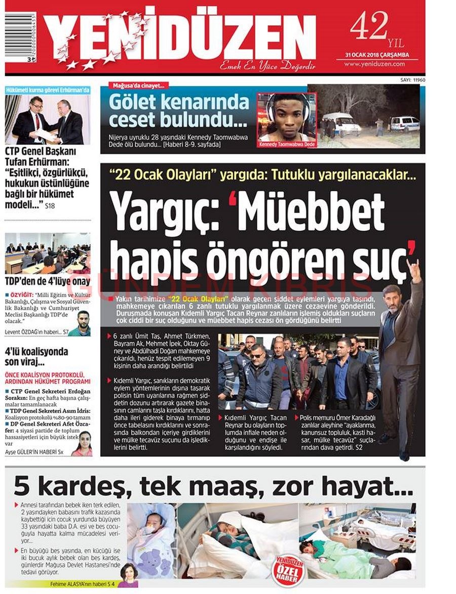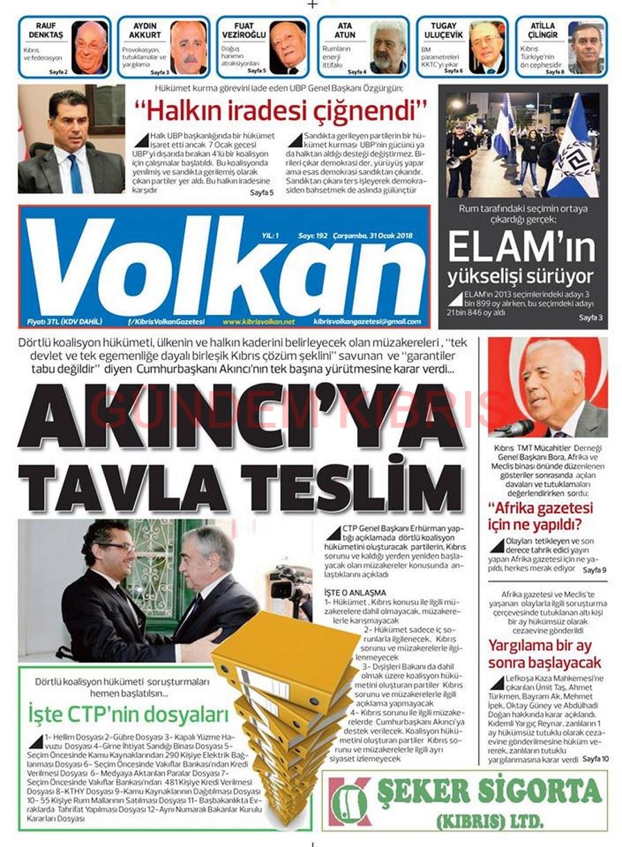 KKTC Gazete Manşetleri 31 Ocak 2018