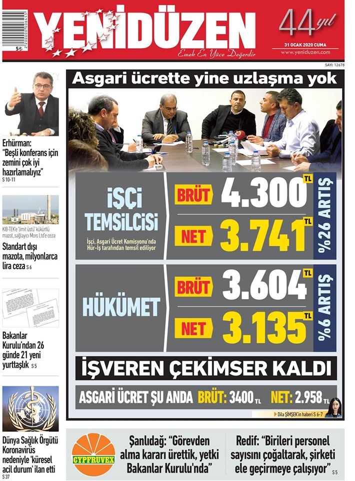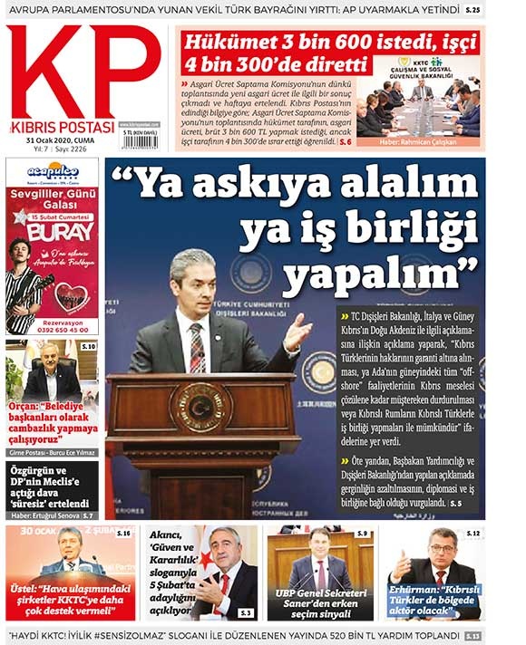 KKTC Gazete Manşetleri - 31 Ocak 2020