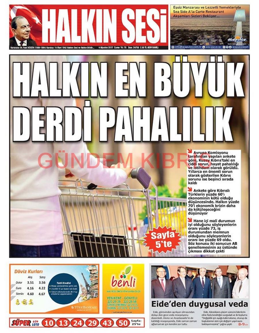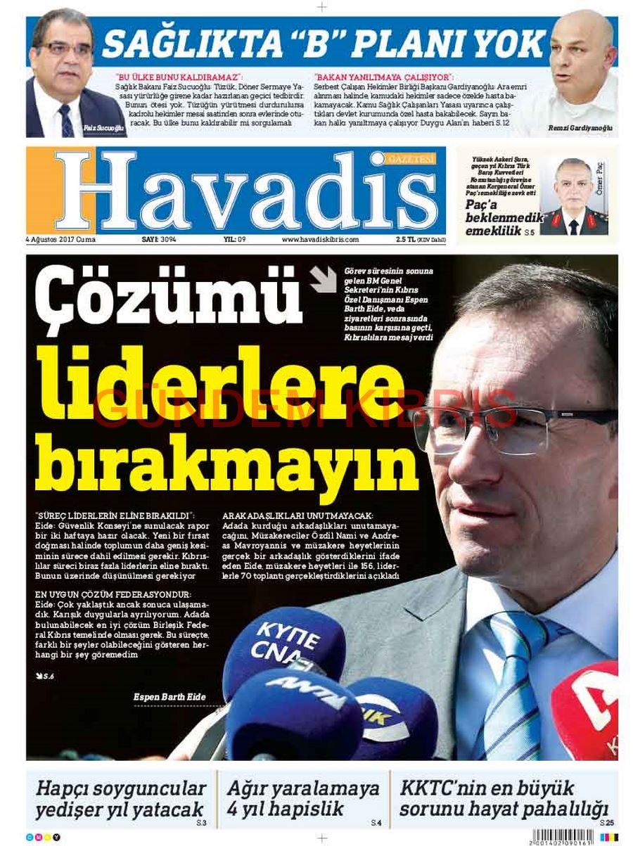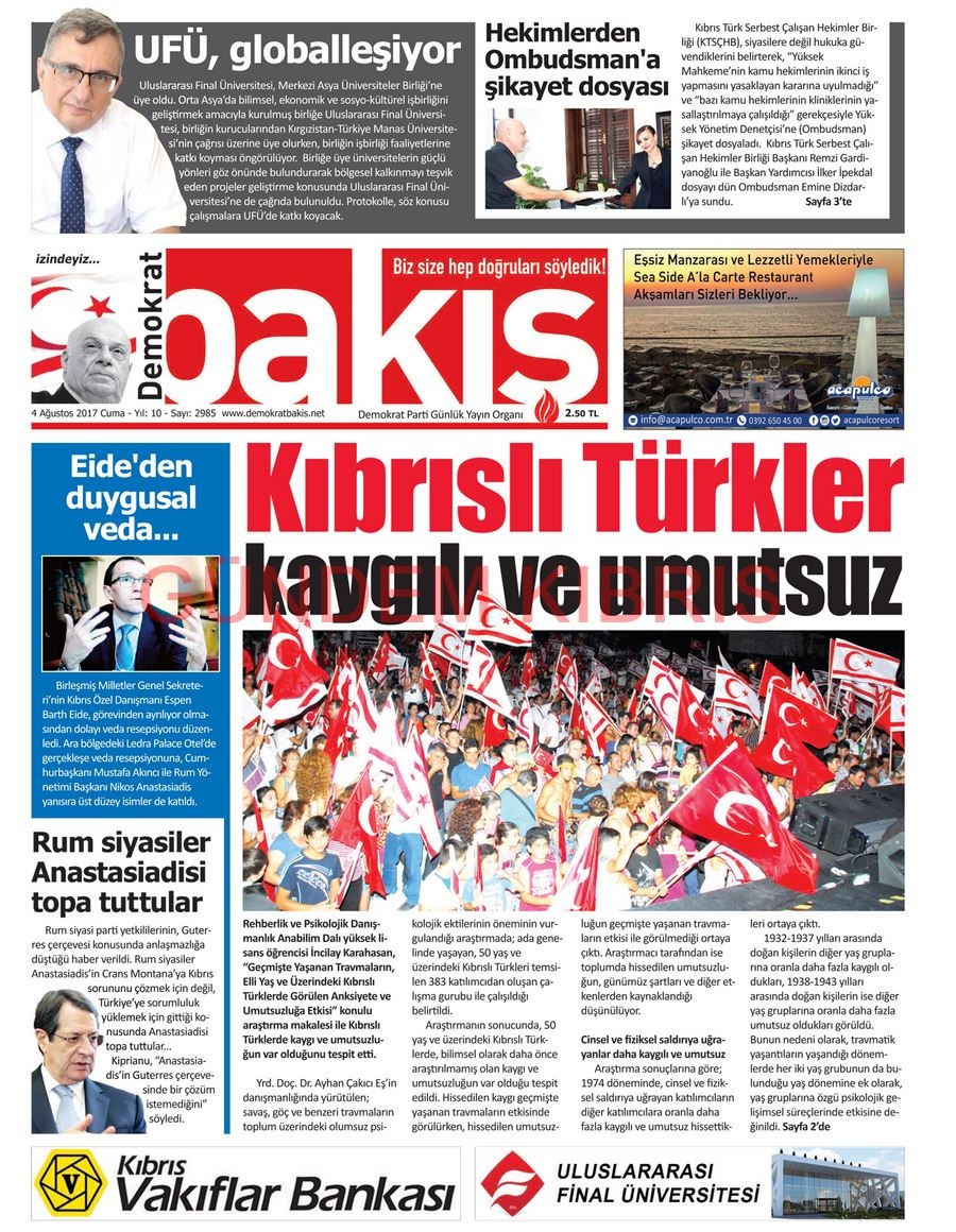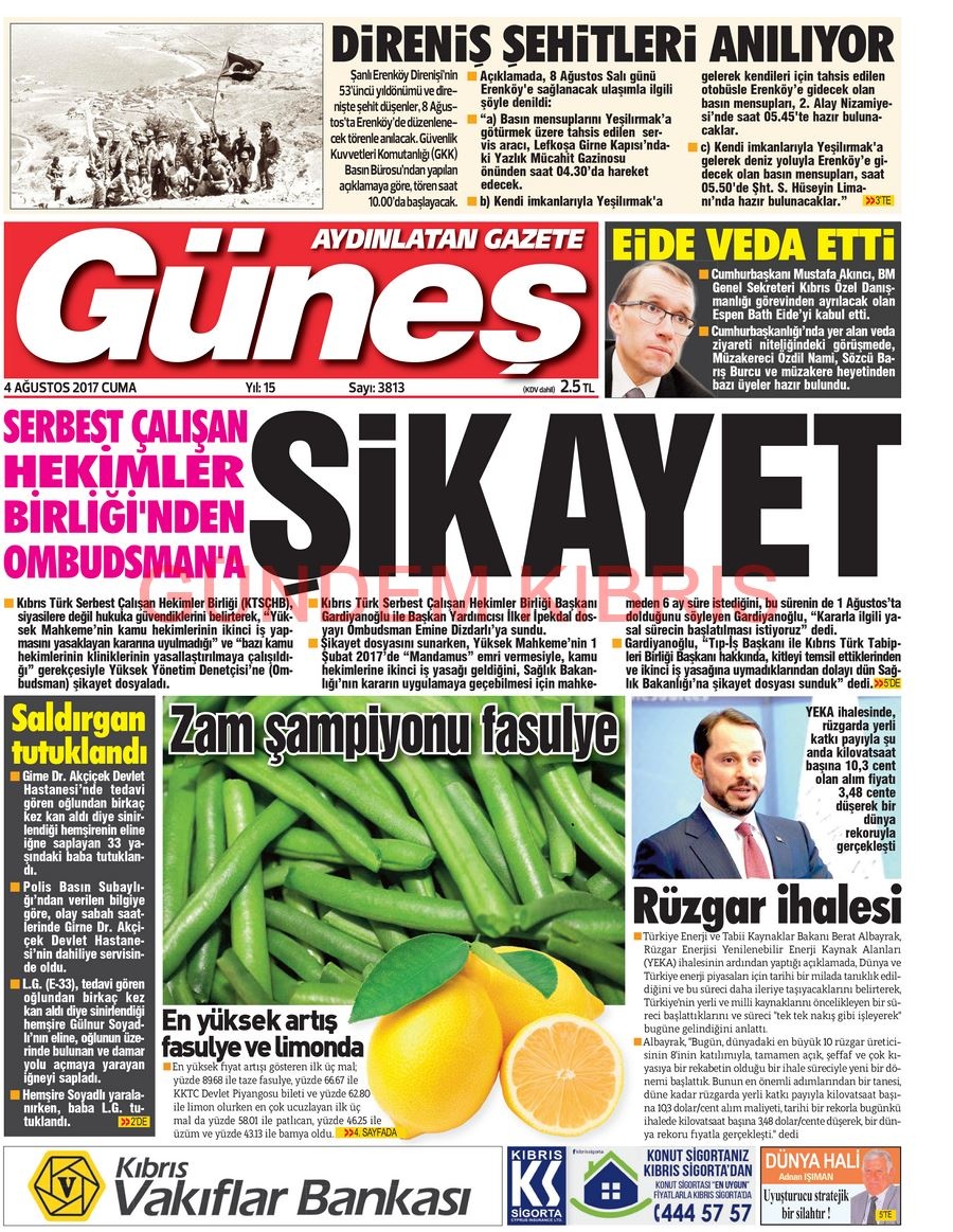 KKTC Gazete Manşetleri 4 Ağustos 2017