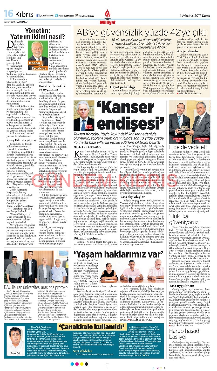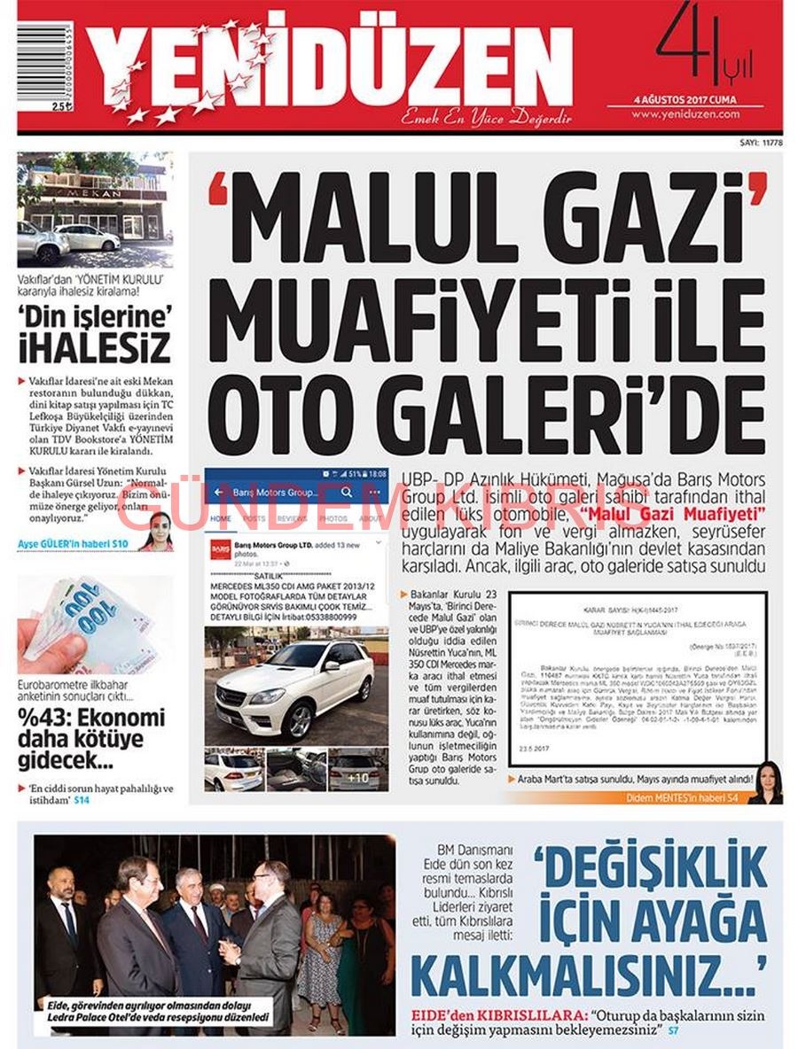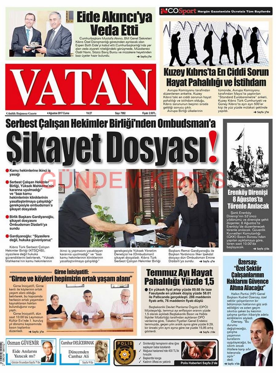 KKTC Gazete Manşetleri 4 Ağustos 2017