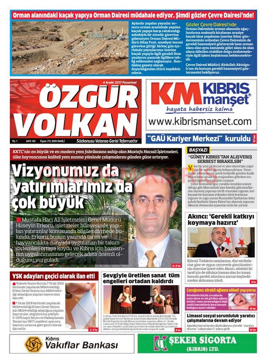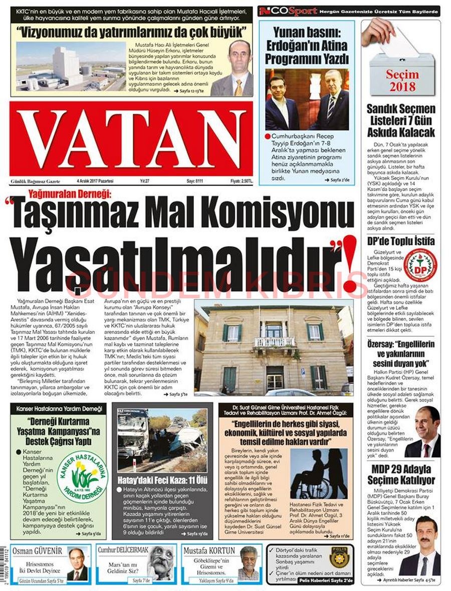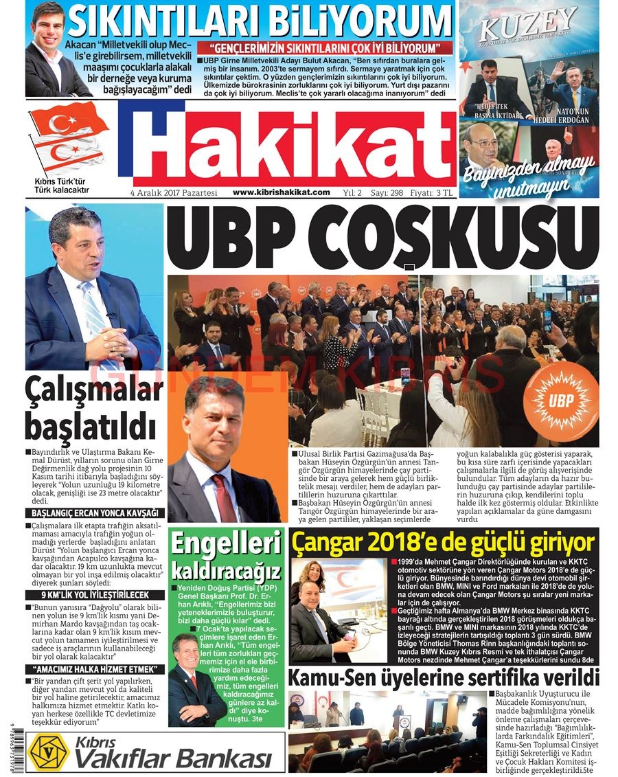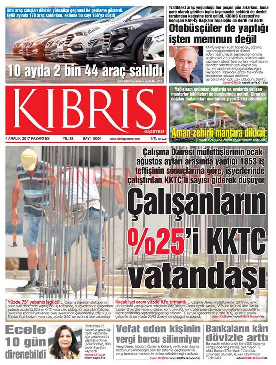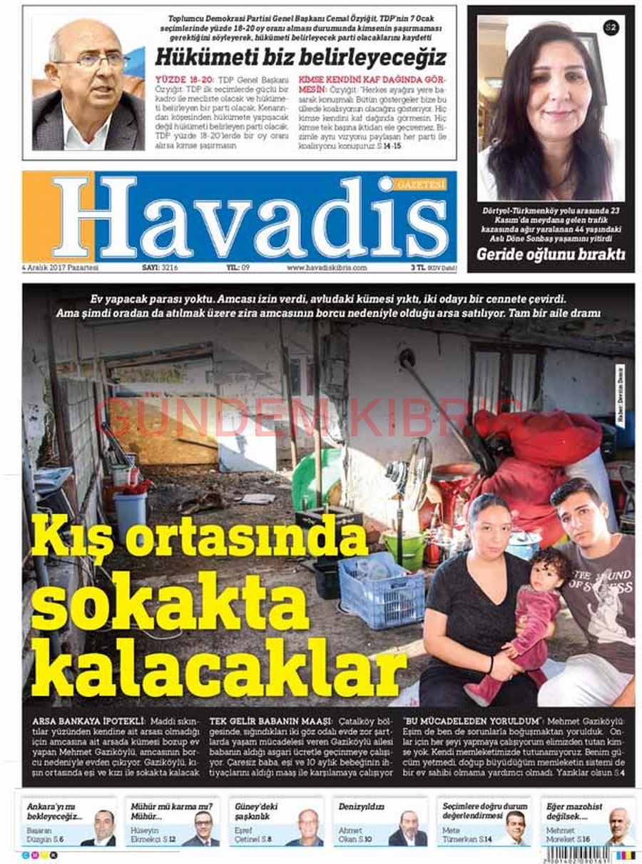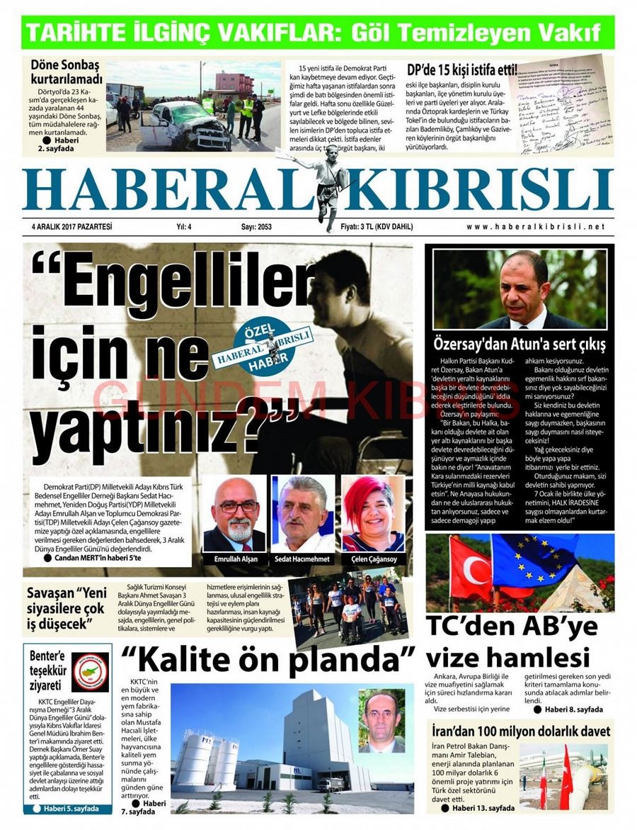 KKTC Gazete Manşetleri 4 Aralık 2017