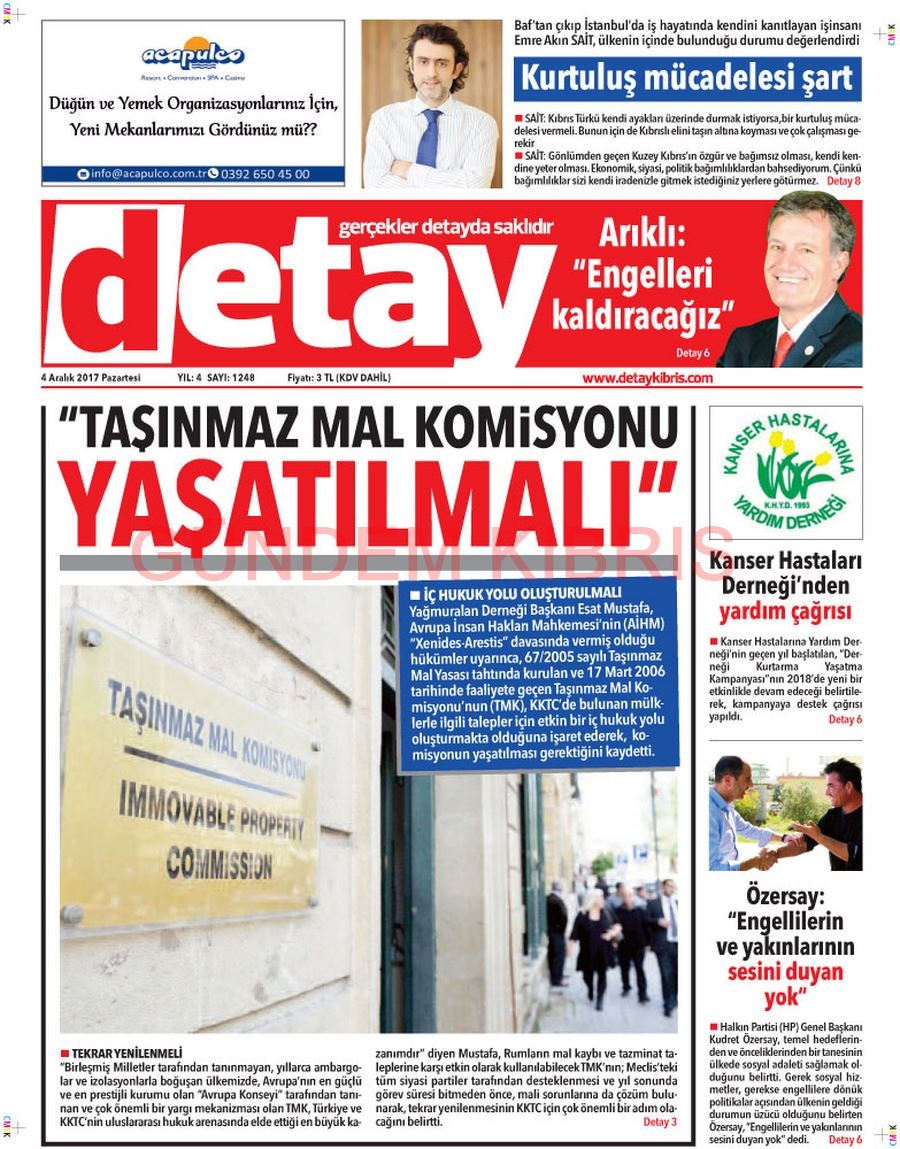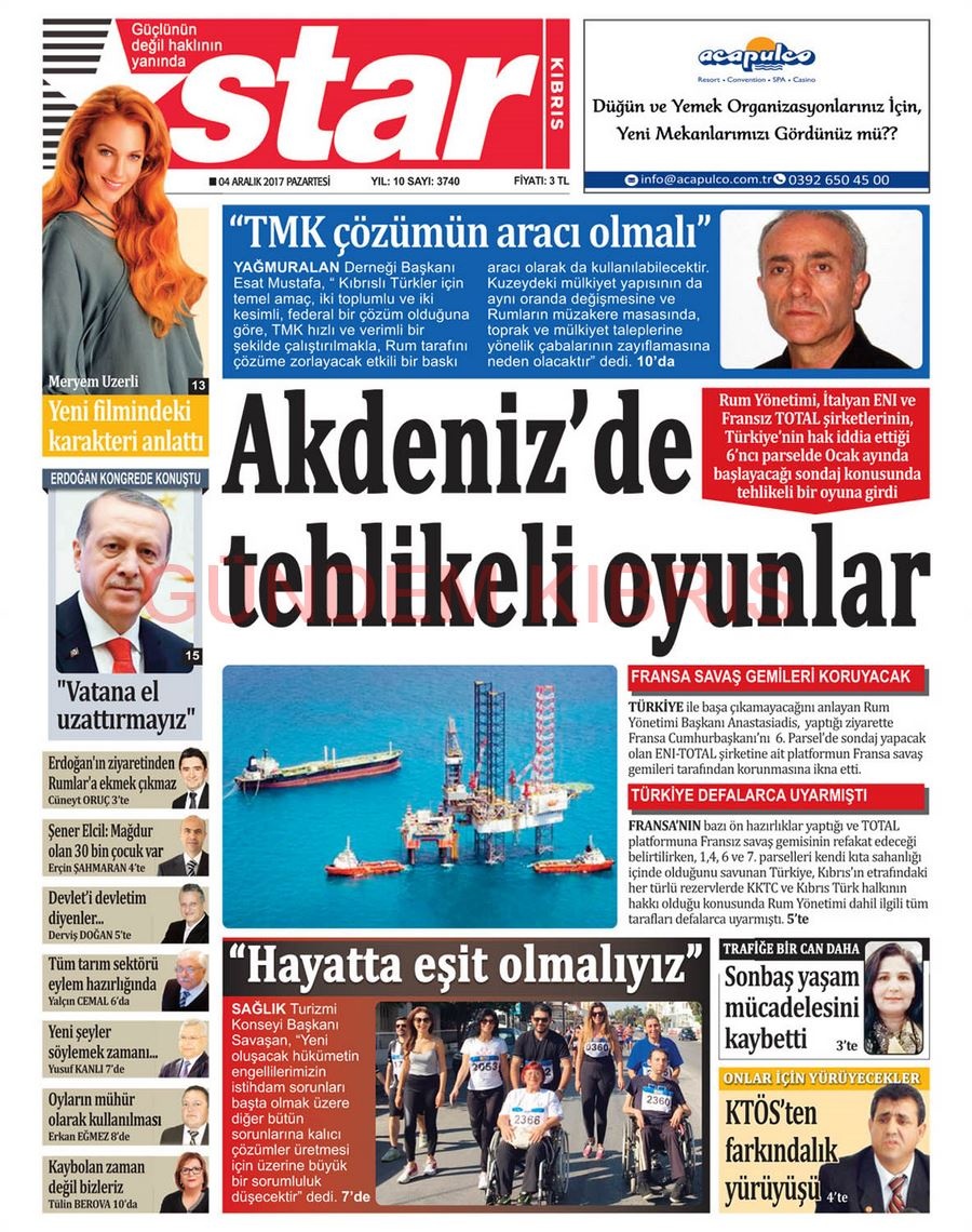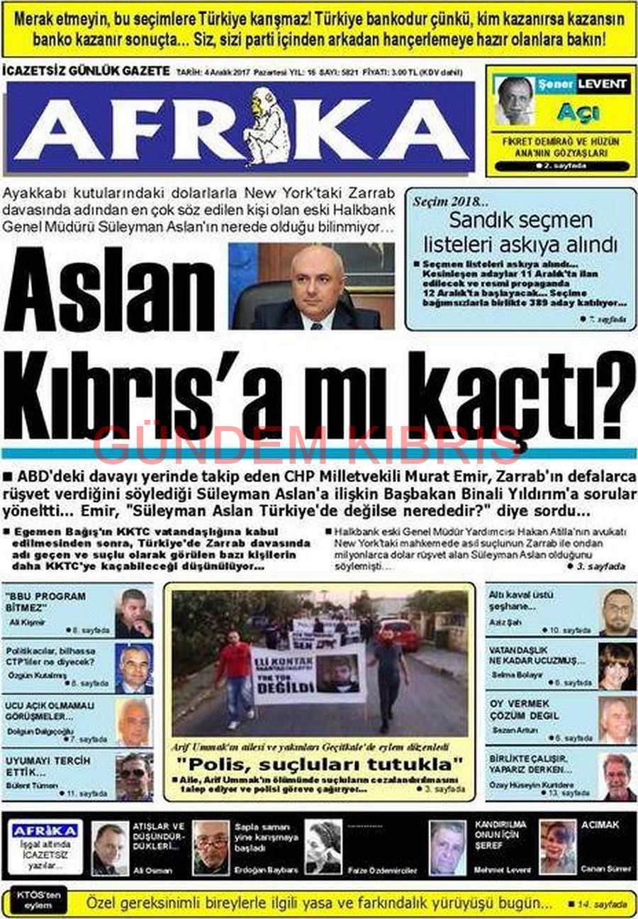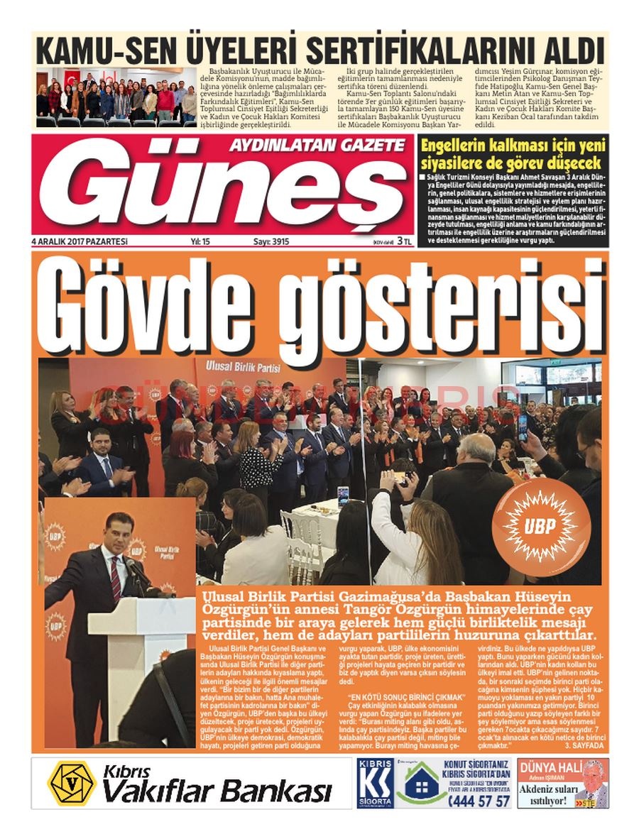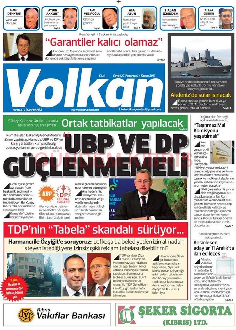 KKTC Gazete Manşetleri 4 Aralık 2017